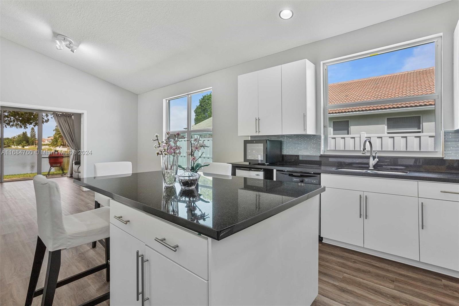 Beautiful single-story lakefront home in the quiet gated community of Monaco Cove in Sunset Lakes! This 4-bedroom, 3-bath home features a family room and has undergone extensive renovations, both inside and out, including upgraded flooring, master bathroom, impact windows, new painting, efficient AC / water heaters, and more. It features high-end finishes, stainless steel appliances, and spacious 13-foot ceilings. The fenced backyard offers stunning lake views and breathtaking sunsets, with ample space for a pool. Make this bright and spacious retreat your new home.