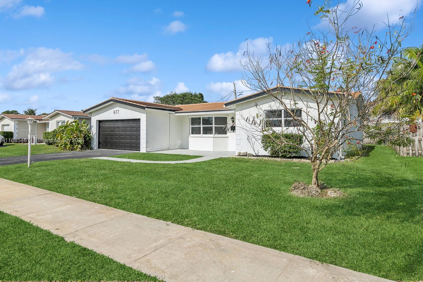 MAJOR PRICE IMPROVEMENT! Welcome to Paradise! This fully remodeled Hollywood Hills home offers prime luxury living. Highlights include recessed lighting, a stunning pool deck with European sculpted flooring, and a low-maintenance saltwater pool. Inside, enjoy new Australian piano-finish AC4 flooring, a 40-year tile roof, and impact windows and doors for security and efficiency. The open-concept kitchen features Calacatta quartz countertops, a 130" waterfall peninsula, and new stainless steel GE appliances. The updated two-car garage includes recessed lighting. The primary suite boasts an en suite bath and pool deck access. Bathrooms feature mood mirror lighting, a Jacuzzi tub, and Calacatta quartz vanities. Newer HVAC adds comfort. Your Hollywood Hills dream home awaits!