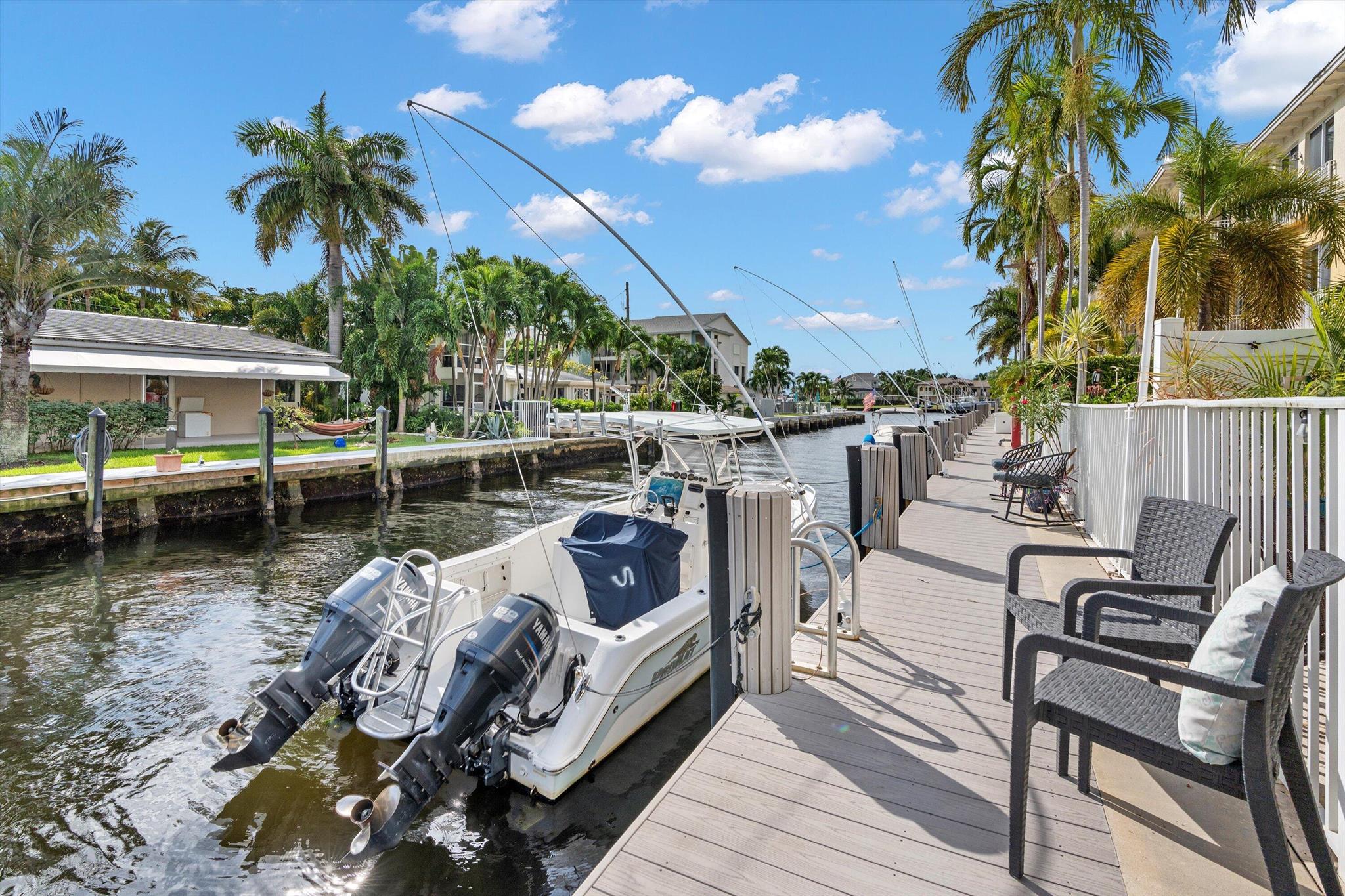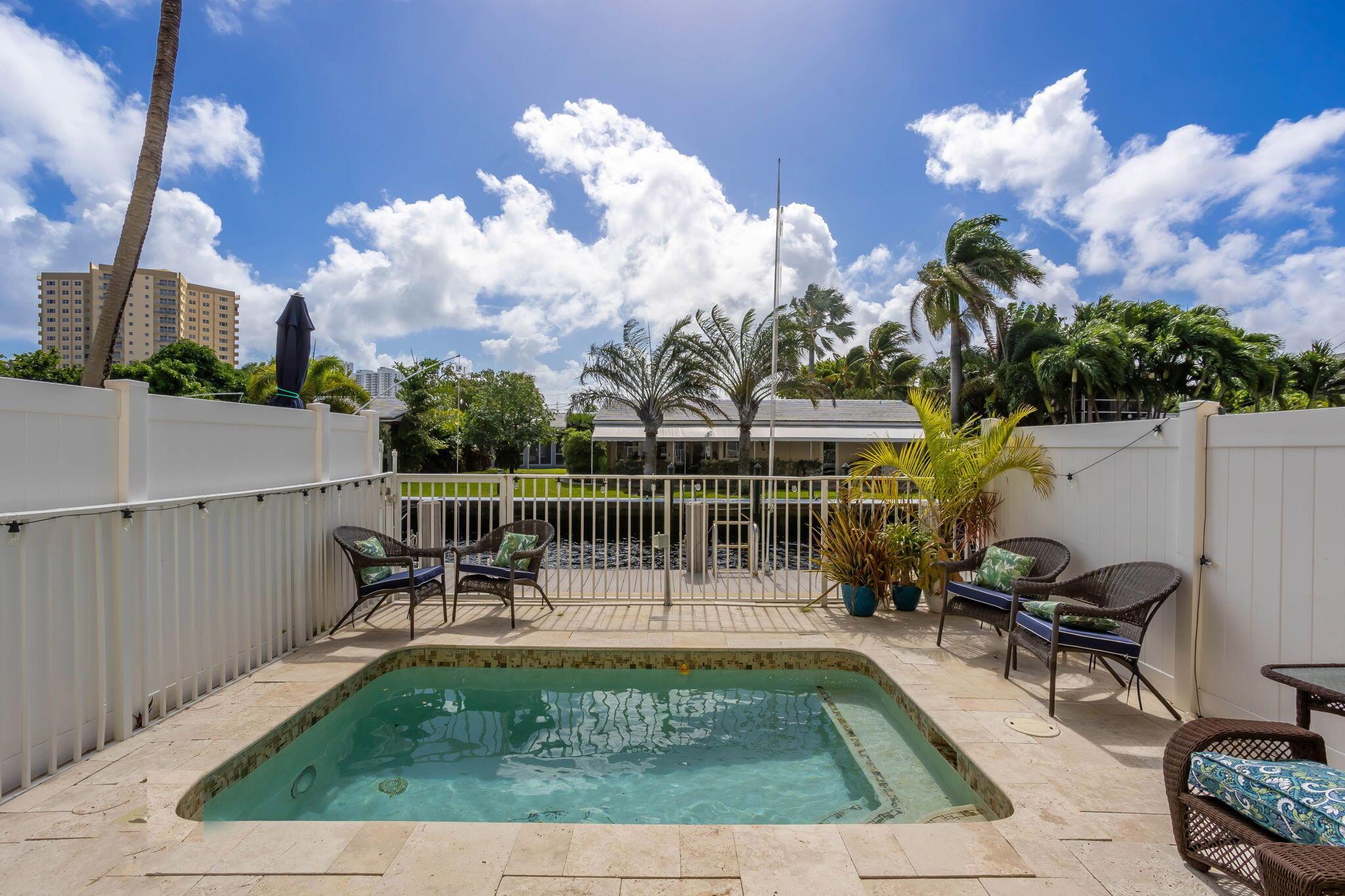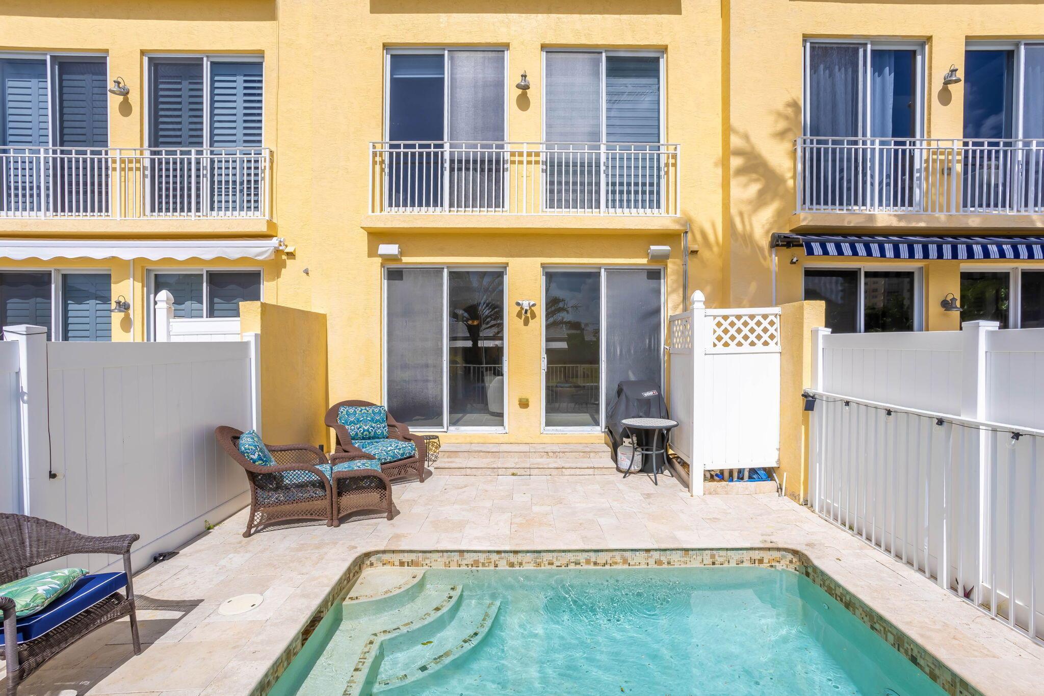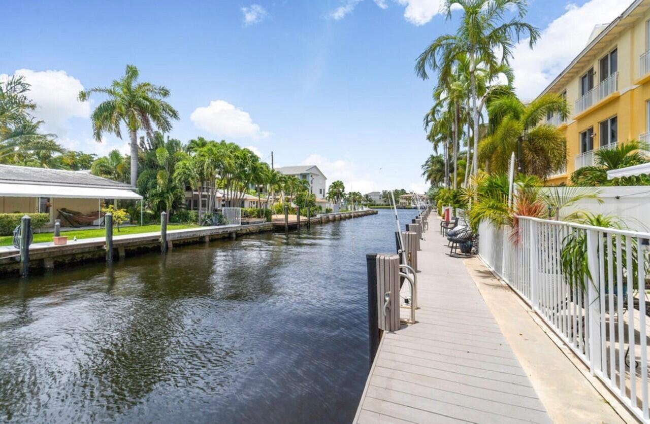 Welcome home to this beautiful deep water canal townhome, minutes from the beach. Rarely available 3 bedroom + den / 4 bath / private pool Waterfront Townhome, blocks from the ocean with a 39' deeded dock. This tri-level townhome, features an elevator, bright light southern exposure & Intracoastal views. Ground level, family entertainment, private pool, & 39' dock right out your back door. Rich features: chisel-edged marble flooring on two floors, upgrades throughout great master with shower and tub, Central Vac. Upgraded kitchen, stainless steal appliances & quality cabinetry. Hurricane impact doors & windows, concrete block construction between residences for additional security & privacy. This is a Boater's dream, No fixed bridges, quick ocean access. One car garage and guest parking.
