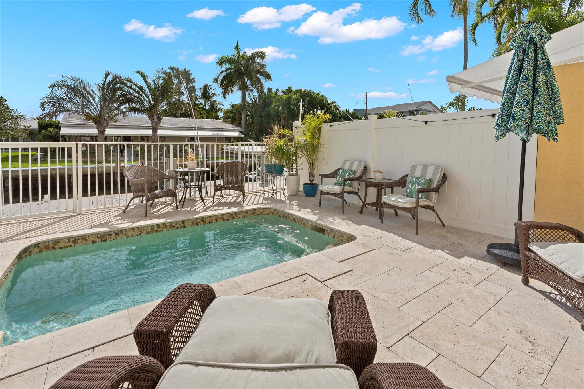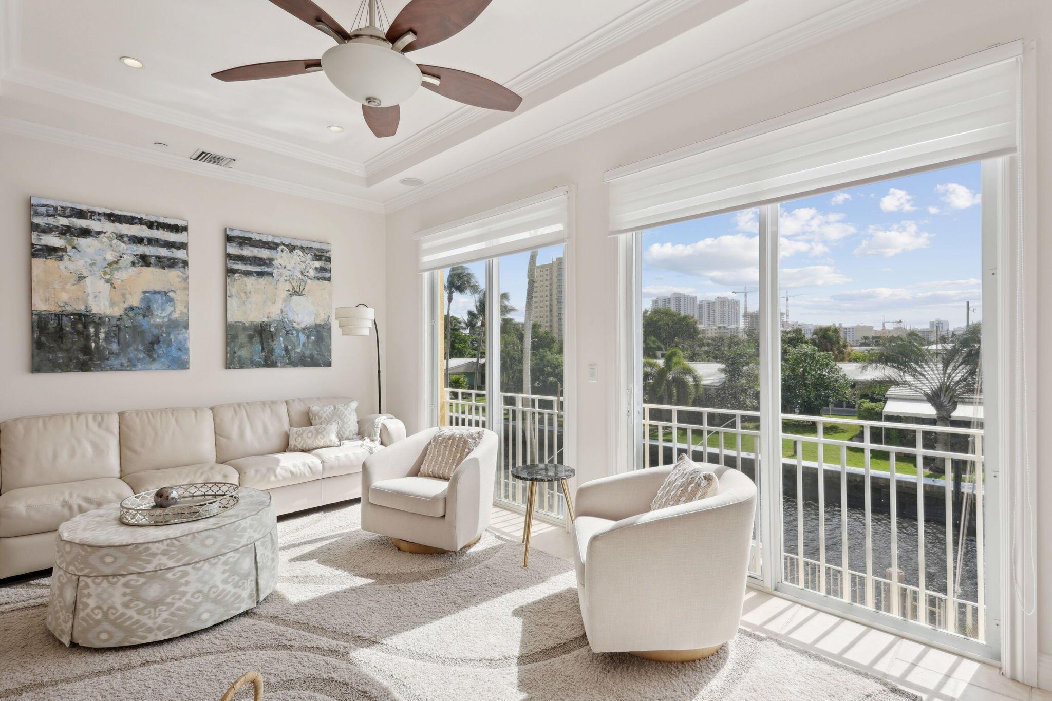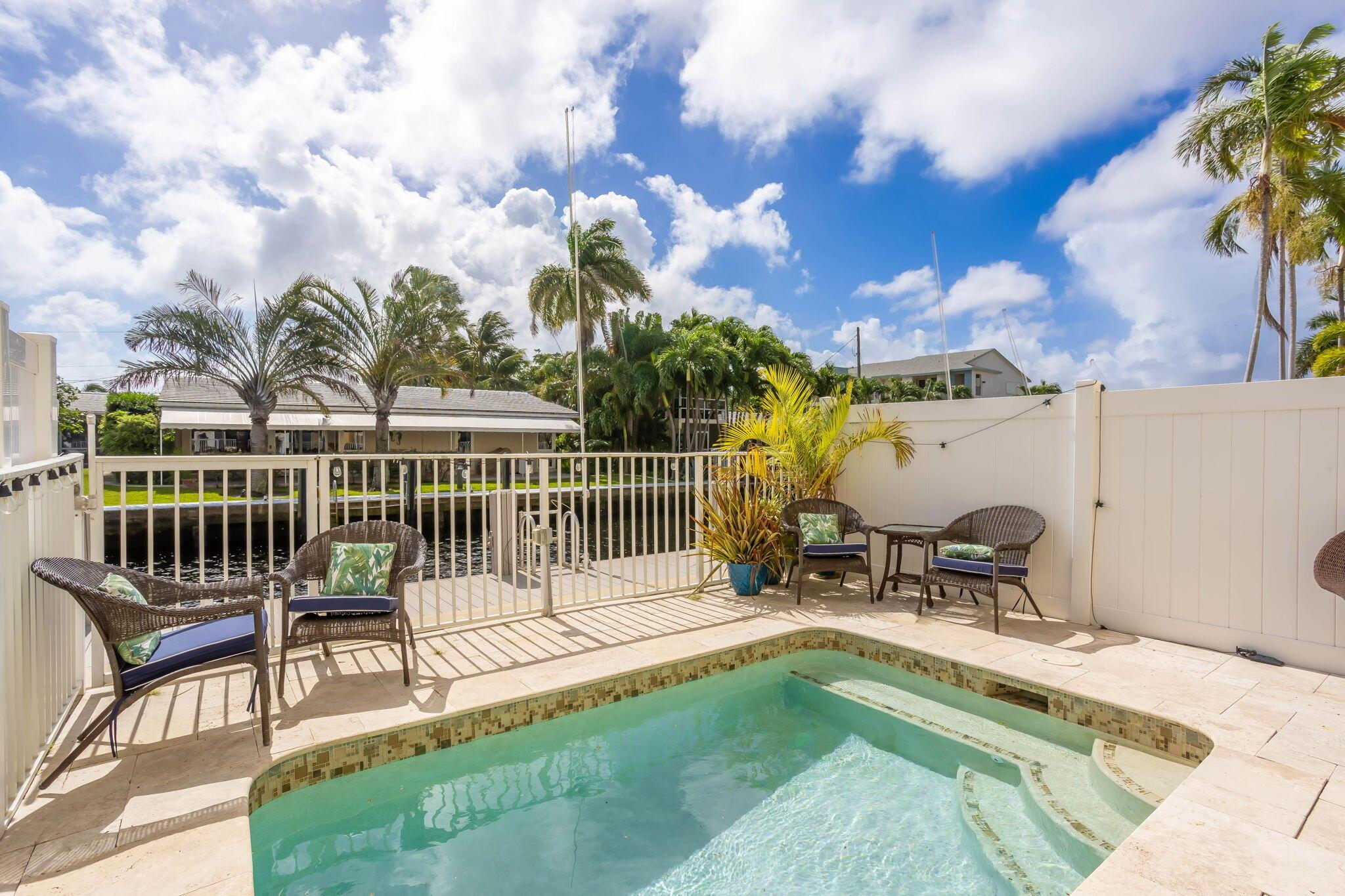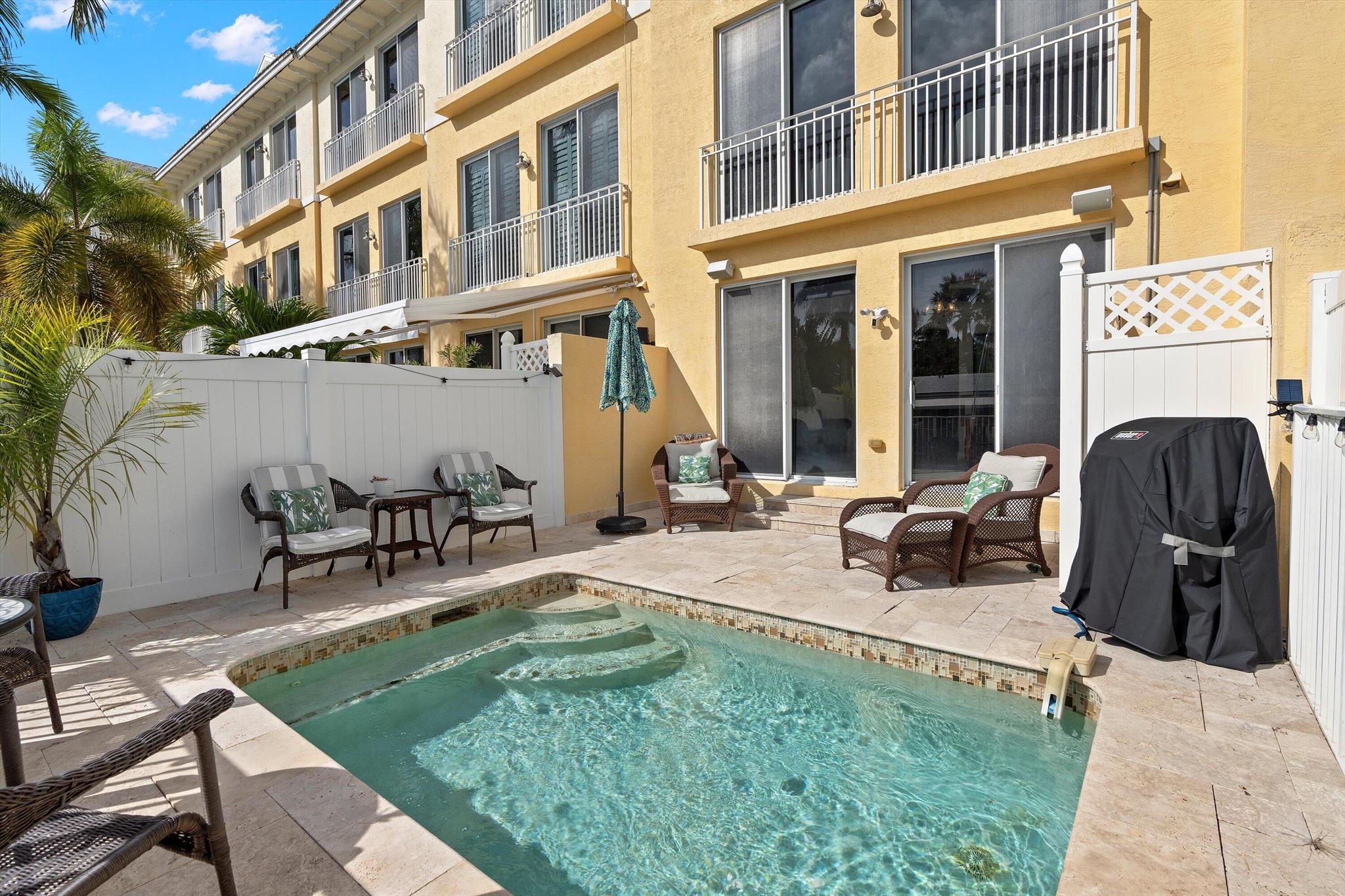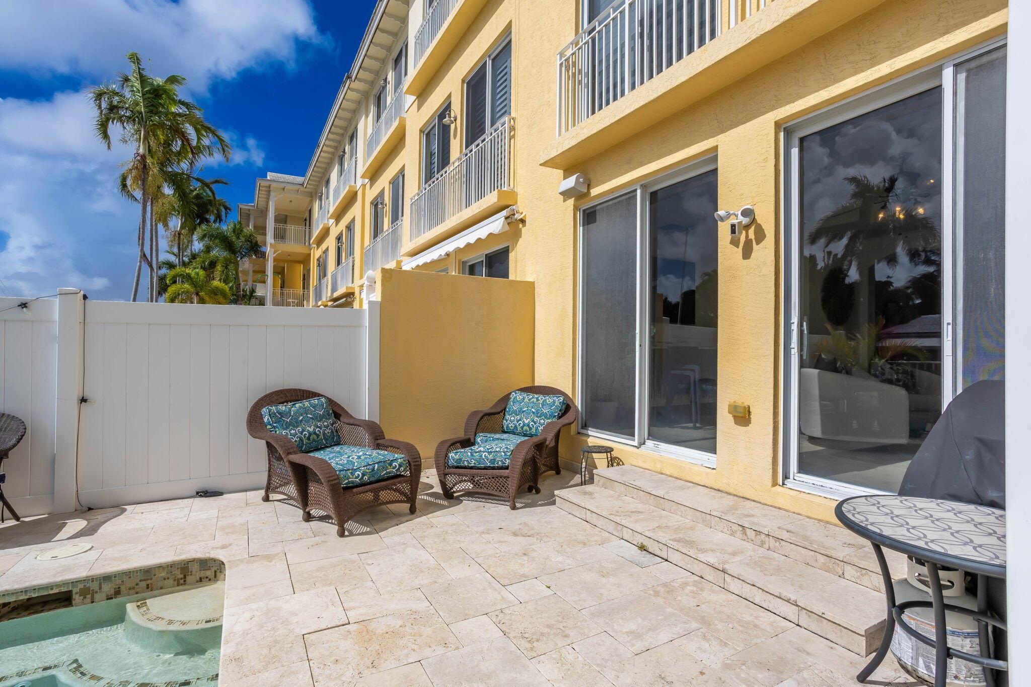 Welcome home to this beautiful deep water canal townhome, minutes from the beach. Rarely available 3 bedroom + den / 4 bath / private pool Waterfront Townhome, blocks from the ocean with a 39' deeded dock. This tri-level townhome, features an elevator, bright light southern exposure & Intracoastal views. Ground level, family entertainment, private pool, & 39' dock right out your back door. Rich features: chisel-edged marble flooring on two floors, upgrades throughout great master with shower and tub, Central Vac. Upgraded kitchen, stainless steal appliances & quality cabinetry. Hurricane impact doors & windows, concrete block construction between residences for additional security & privacy. This is a Boater's dream, No fixed bridges, quick ocean access. One car garage and guest parking.