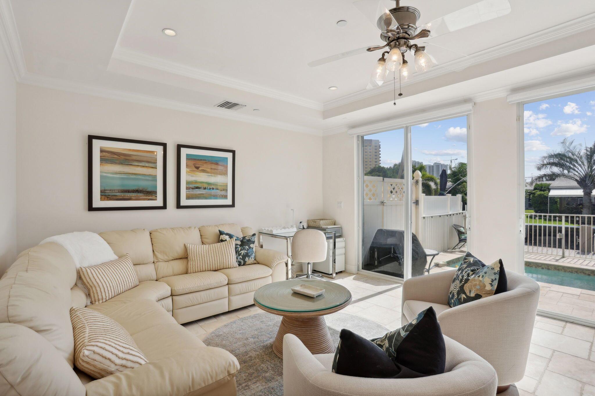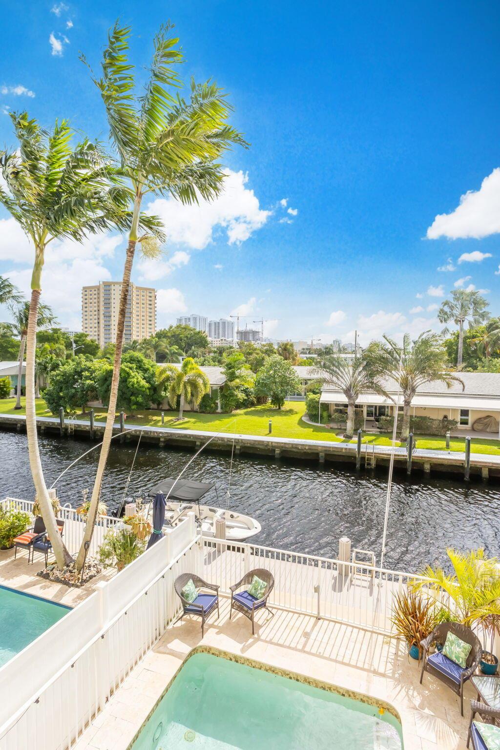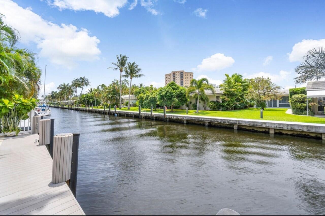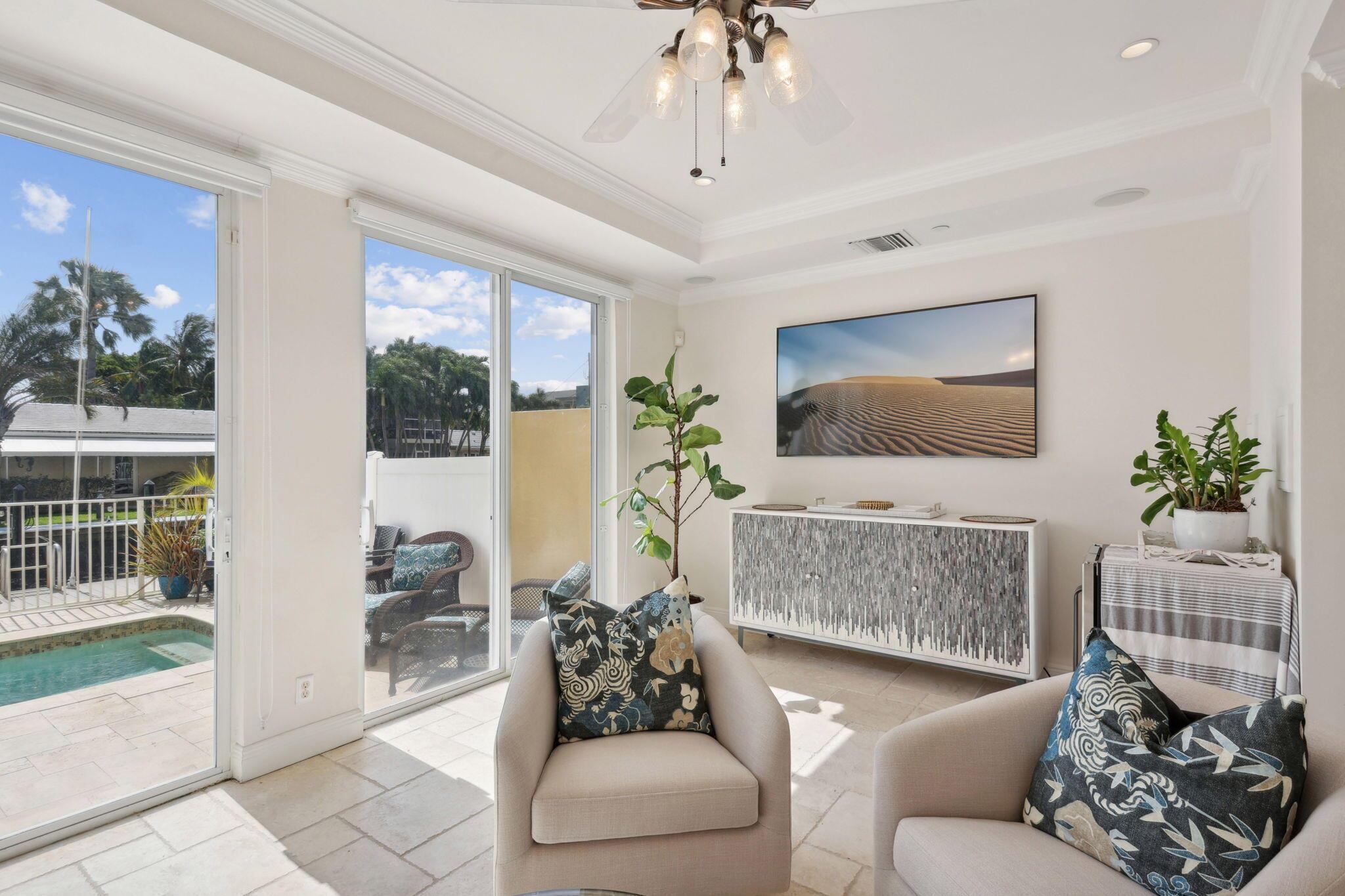 Welcome home to this beautiful deep water canal townhome, minutes from the beach. Rarely available 3 bedroom + den / 4 bath / private pool Waterfront Townhome, blocks from the ocean with a 39' deeded dock. This tri-level townhome, features an elevator, bright light southern exposure & Intracoastal views. Ground level, family entertainment, private pool, & 39' dock right out your back door. Rich features: chisel-edged marble flooring on two floors, upgrades throughout great master with shower and tub, Central Vac. Upgraded kitchen, stainless steal appliances & quality cabinetry. Hurricane impact doors & windows, concrete block construction between residences for additional security & privacy. This is a Boater's dream, No fixed bridges, quick ocean access. One car garage and guest parking.