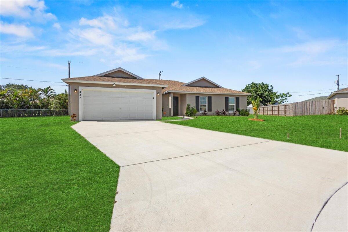 Mother-In-Law Suite!! Feast your eyes on this nearly brand new, customized Synergy Homes Verona model Exterior Elevation A , 4/2/2 CBS 1,915 square foot home, complete with a mother-in-law suite, built in 2023 and barely lived in. This home is incredible, but lot is unbeatable! This pristine home is situated on a .28 acre pie-shaped lot at the end of a cul-de-sac in the deepest interior portion of a quiet neighborhood in the coveted 34953 zip code in Southwest Port St Lucie. This is the best valued home on the market at this time with unbeatable location, incredibly spacious floor plan complete with a Northward facing covered patio and a huge, private backyard due to the pie-shaped lot on the cul-de-sac, and it's nearly brand new.