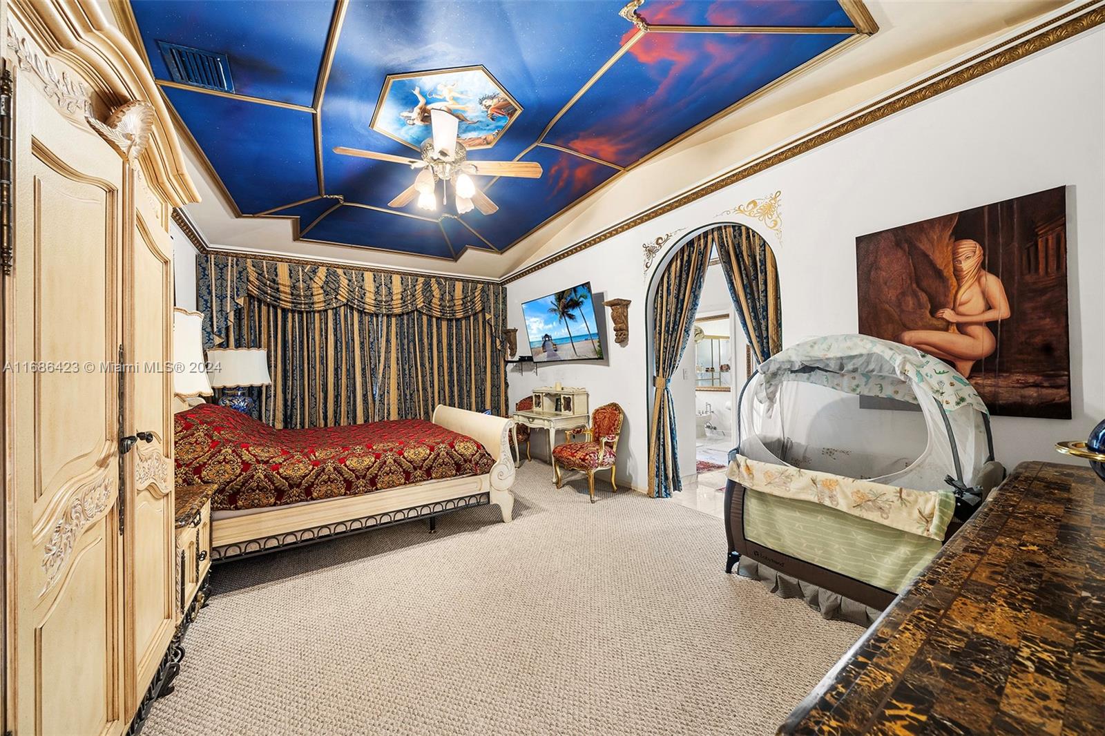 Welcome to Golden Beach, an exclusive, police-guarded community offering residents a private beach, parks, and tennis courts. This 11,250 sq ft estate is perfectly positioned across from a serene private park and charming palm tree-lined sidewalks. Inside, the home greets you with a grand foyer, impressive ceiling heights, and spacious rooms designed with an ideal family-friendly floor plan. The stunning backyard boasts a massive private pool, perfect for relaxation and entertaining. Experience the best of luxury living in prime Golden Beach.