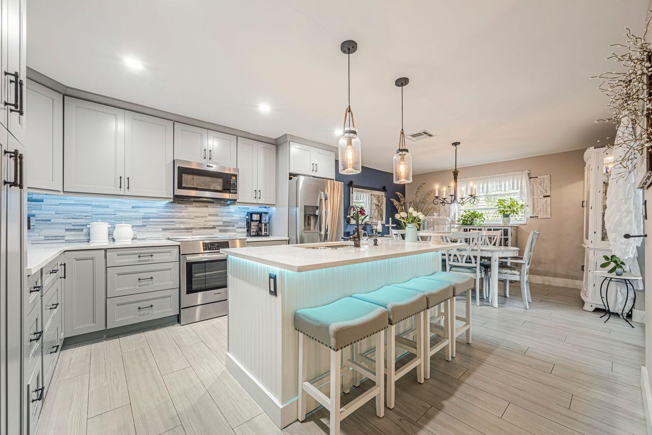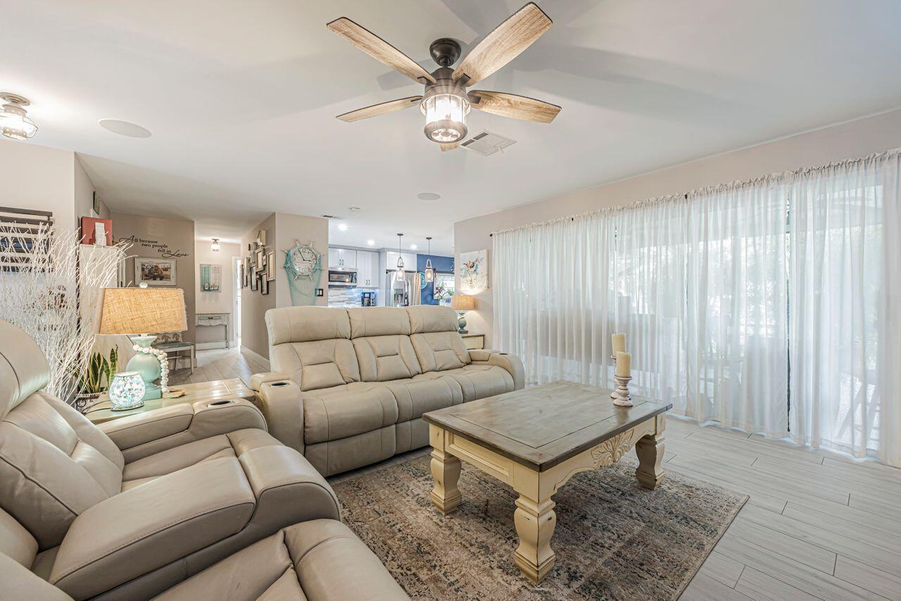 Welcome to your dream home in sunny Florida! This beautifully renovated 3-bedroom, 2-bathroom residence boasts stunning gardens that create a tranquil oasis. Step inside to discover an open-concept kitchen, featuring modern appliances and sleek finishes, perfect for entertaining or family gatherings. The updated bathrooms and wood-look tile floors add warmth and style throughout. Enjoy the expansive oversized patio, ideal for outdoor living and entertaining, all in a serene setting. House has built in exterior led color changing option lights. The fence includes a double gate, perfect for boat parking. Experience the freedom of living in a beautiful community with no Homeowners' Association. Don't miss your chance to own this slice of paradise! Schedule your showing today!