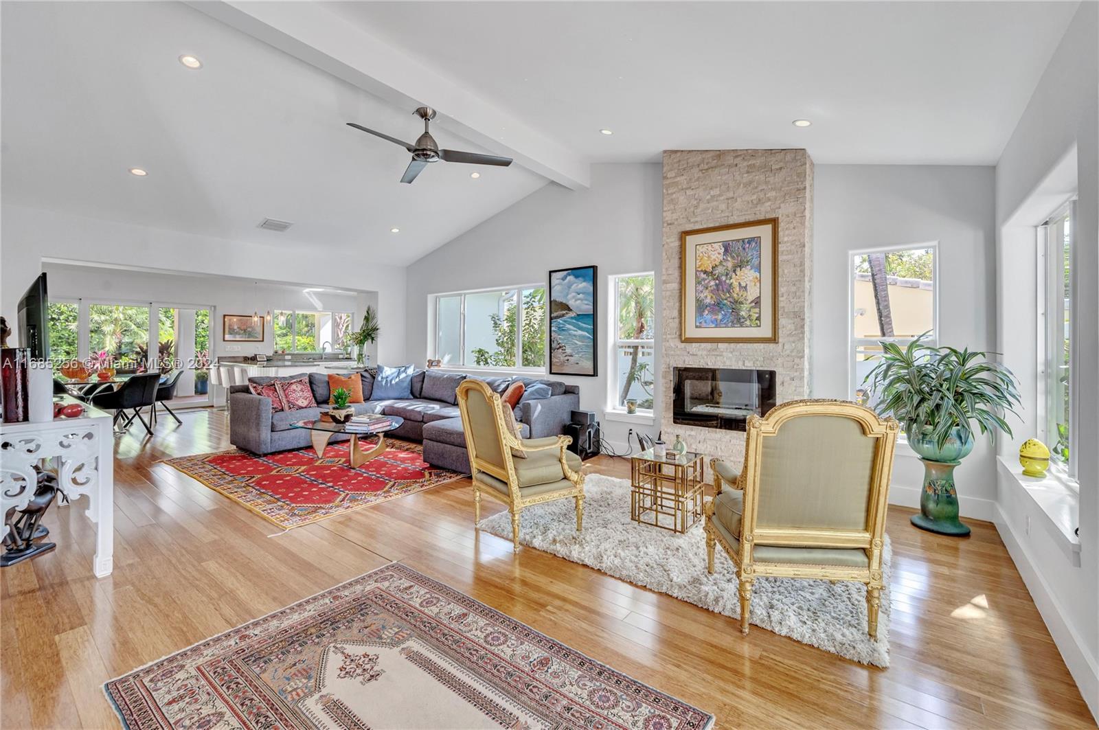 Mid century fully updated modern gem in prestigious Victoria Park. This immaculate home offers an open floor plan with vaulted ceilings, lots of natural light, fireplace and real Bamboo wood floors throughout, giving you a true home feeling. Kitchen includes stainless steel appliances, gas stove/oven, exhaust and granite countertop. You will enjoy a natural flow between the indoors and the outdoors with a large courtyard and a private backyard with a pool, spa and covered deck surrounded by tropical landscaping, (A tropical oasis). Impact windows and doors, metal roof and a generator for the whole house provides extra protection. Connected to city gas (Stove/oven, generator, water heater, fireplace) Minutes from Downtown Ft. Lauderdale, Las Olas, Holiday Park and Beaches.