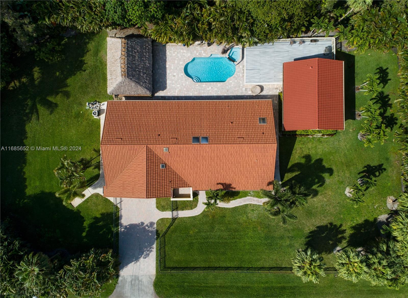 Open concept entertainers dream sitting on over a builder’s acres in fabulous Plantation Acres. Just under 3,000 sqf of living space in the main house featuring open modern kitchen w/exquisite quartz countertops, wood cabinets, gas stove, huge center island, & coffee bar overlooking the expansive family room. Oversized primary suite w/custom walk-in closet, & bathroom. Gorgeous porcelain tile flooring in all main living areas & kitchen. Big secondary bedrooms. Guest house is perfect for an in-law suite w/2 bedrooms & 1 bath. Backyard features heated Salt Water pool & spa, with 35 person Tiki hut that comes w/electricity for those who like to party. Metal roofs & impact windows & door throughout both homes. NO HOA & steps to American Heritage.