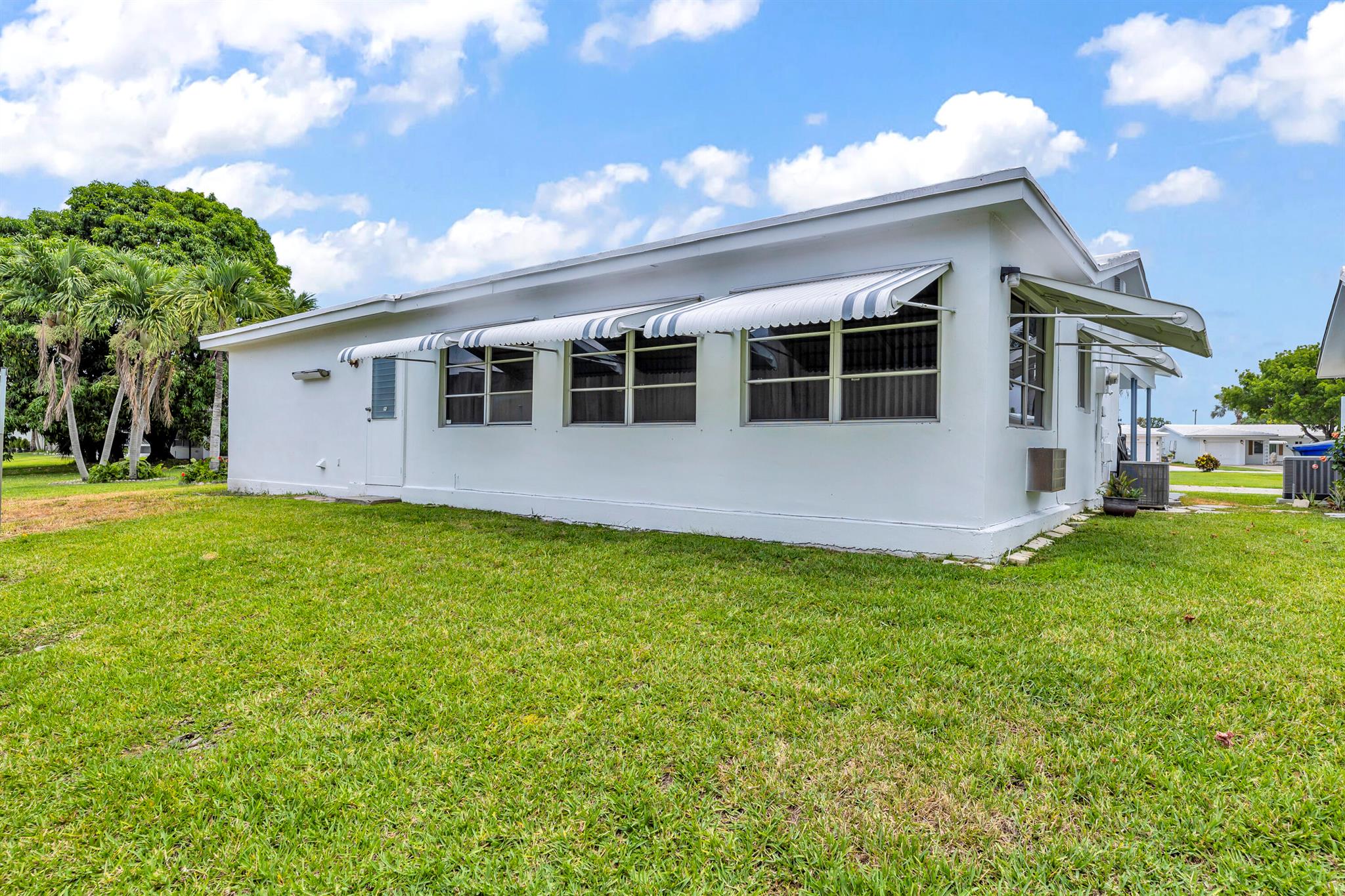 Pompano Beach Private Golf Community. 2 BR/BA with carport. Association fee includes water, 2 pools, 2 clubhouses, FREE resident golf, scheduled shuttle bus, scheduled roof and house painting. East of I-95, close to beaches, restaurants, casino and horse racing. Two pets welcome! NO LAND LEASE! Must own the property one year before renting. Freshly Painted inside. PERMITTED EXTRA LARGE ROOM OFF LARGE FL RM AND IS CURRENTLY USED AS TOOL ROOM WITH WATER AND EXTERIOR DOOR / possible OFFICE/ 2ND BR ENLARGED TO BE MASTER BR SUITE/ OR 3RD BR. PRIVATE BACK YARD SETTING. LOTS OF POSSIBILITIES WITH THIS LARGE PERMITTED 3RD ROOM.
