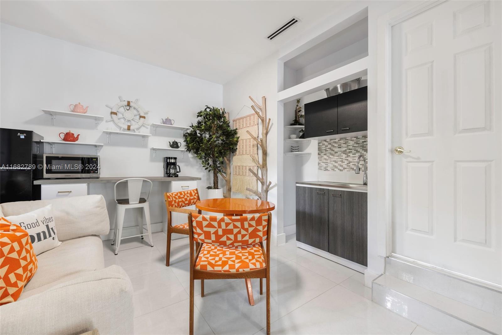 Lovely home secluded behind a tall privacy hedge in prestigious South Coconut Grove. Light-filled living spaces w/ vaulted, wood-beamed ceilings & floor-to-ceiling windows overlooking the lush, tropical garden. Updates include new roof & solar panels, impact windows/doors & renovated baths. Stunning new kitchen has quartz countertops, stainless appliances, cooking island & separate breakfast area. Expansive back yard is a lush oasis w/brick terrace, gazebo, captivating koi pond & ample space to add a pool. Close to shopping, dining & bayfront parks in the historic Grove village and just minutes to downtown, MIA & the Beaches.