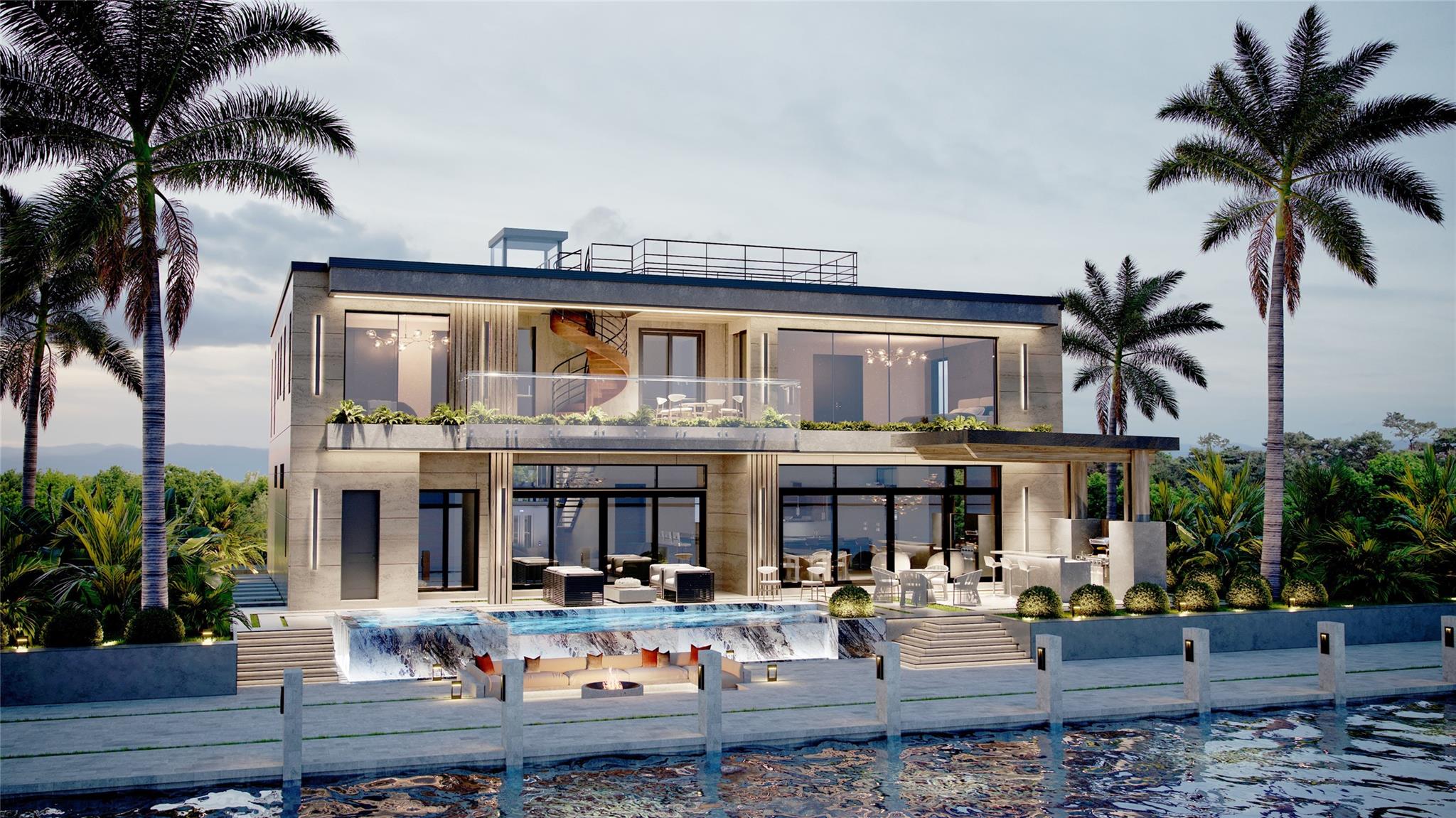 This newly constructed waterfront modern home by Soverns Developers combines luxury with a prime location and a newly constructed 80' seawall. Designed by the award-winning Barretta and Associates, the residence boasts architectural excellence with 5 bedrooms, 5 full bathrooms, and 2 half bathrooms. The main suite offers a private balcony, while the VIP suite ensures ultimate comfort. A tastefully appointed home office and a chef-inspired kitchen with Wolf and Viking appliances elevate the interior. A 3-stop custom glass elevator connects each floor, leading to a rooftop terrace with breathtaking views. Outside, enjoy a custom pool, spa, and a covered terrace with a built-in BBQ, ideal for outdoor entertaining. A 3-car garage adds convenience to this home of pure elegance.