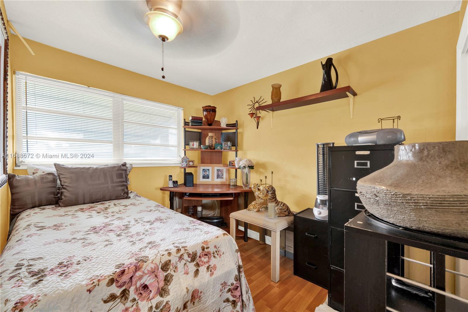 This lovely single-family home in Hialeah features 4 bedrooms and 3 bathrooms on an oversized, fenced lot. It includes a formal living and dining room, a Florida room, and a breakfast nook. The home has tiled flooring throughout, with laminate wood flooring in two bedrooms. The spacious master bedroom has a recently renovated bathroom. This home features a secondary master bedroom with its own bathroom. The roof was completely replaced in 2018. The rear yard includes fruit trees, a large shed with lighting, and grassy areas perfect for entertaining. The front circular driveway can accommodate multiple vehicles, making this a spacious home in a desirable Hialeah location.