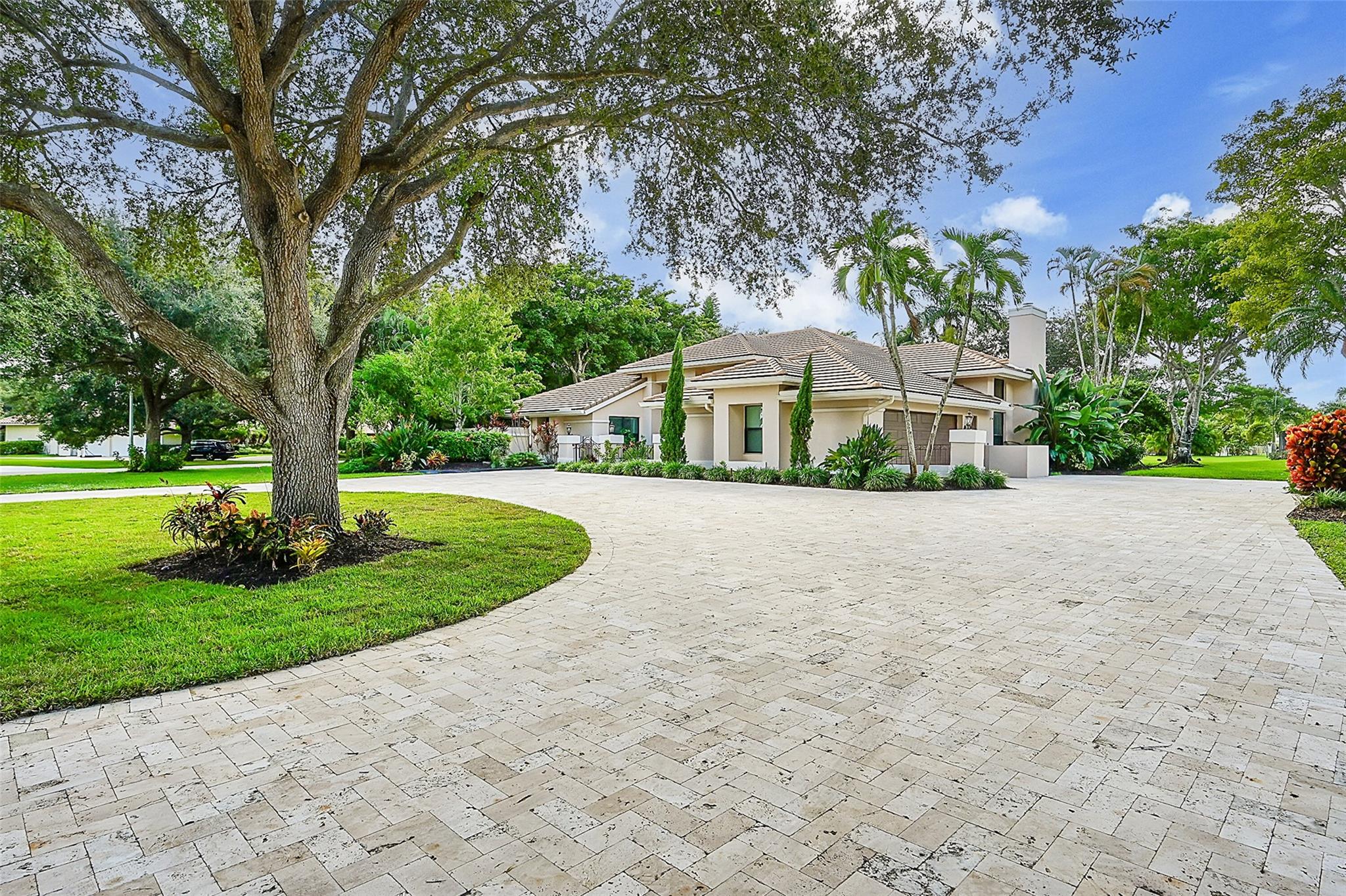 This stunning corner lot in the heart of Cypress Head offers a unique blend of elegance and functionality. Impressive travertine circular driveway. Private gated entrance with a working fountain adds a touch of luxury. Upon entering, you'll be greeted by soaring ceilings that lead your gaze straight to the beautiful oasis-style backyard. The spacious dining room & expansive family room are ideal for gatherings. The open-concept kitchen seamlessly flows into the family room. The primary suite is a luxurious retreat. An automatic screened-in lanai extends the living space outdoors; perfect setting for alfresco dining w/views of the lush, private backyard, offering an idyllic setting for outdoor entertainment or serenity. Truly one-of-a-kind, blending style, luxury, & comfort in every detail.