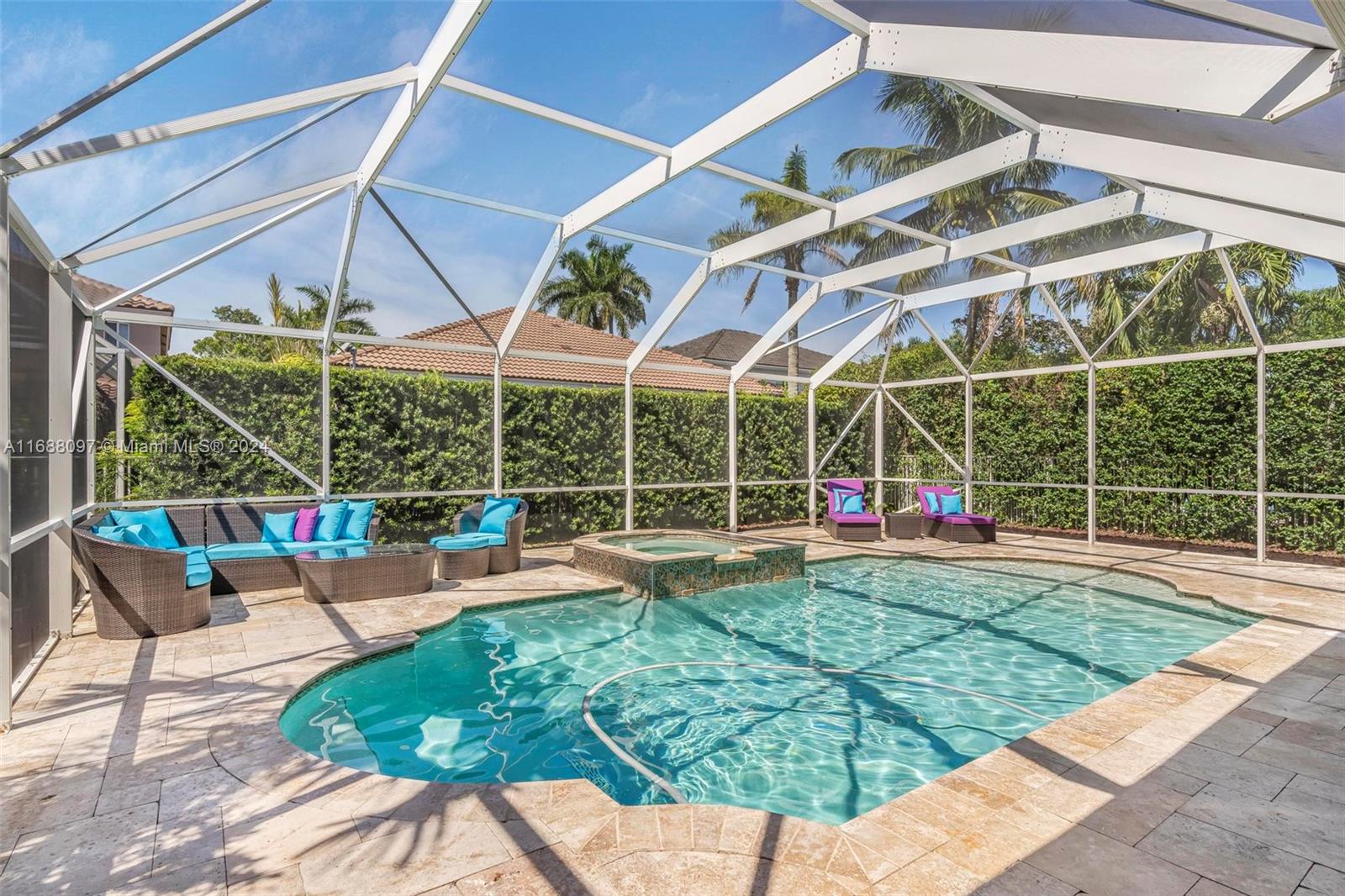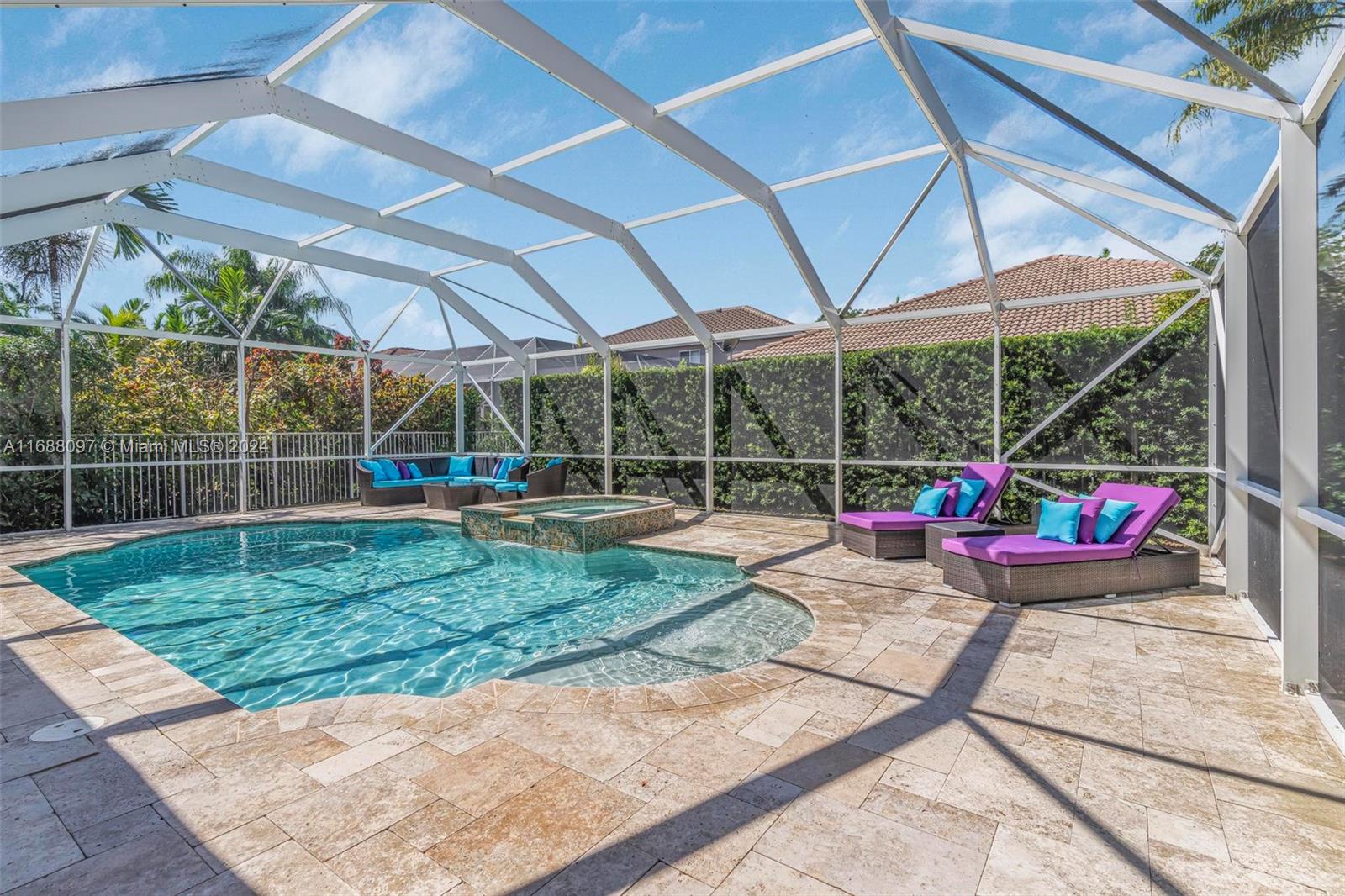 Beautiful 5/4 pool home in the A+ school district and highly sought after gated community of Savanna! This home boasts 5 spacious bedroom with one full bedroom + bathroom downstairs. Fantastic layout with the kitchen opening to a large family room which is great for families and entertaining. Dive into the heated pool & spa w/ extended travertine pool deck enclosed by a 2 story screen enclosure. New heater + pump! Perfect outdoor area to enjoy South Fl living! 2 car garage! Accordion shutters for full storm protection. The Savanna community offers resort style living + state of the art leisure & recreation! A rated schools! Within walking distance enjoy the community amenities including pool, lap pool, waterslide, children’s aquatic play area, mini golf, basketball, roller hockey rink,