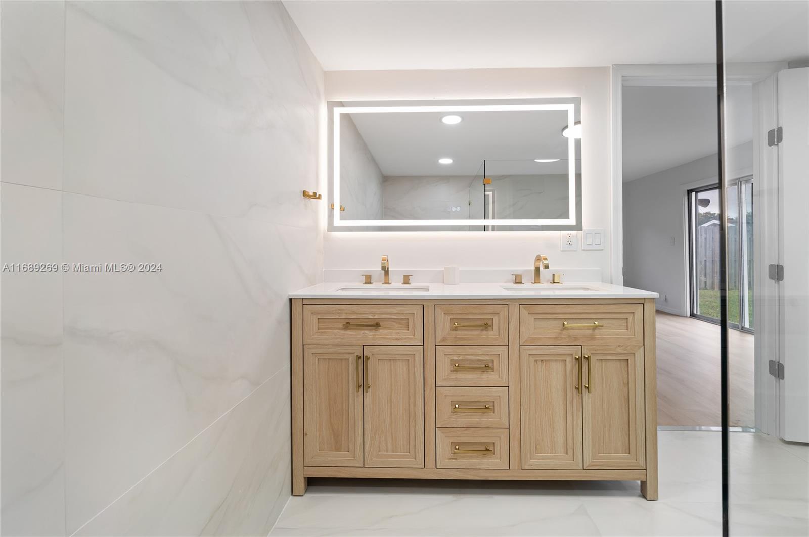 Beautiful Single-Family Home with Spectacular Master Suite, Luxury Features, Garage and New Roof! This meticulously updated dream home boasts high-end finishes and thoughtful upgrades. The oversized master bedroom suite features a large walk-in closet and spa-like bathroom complete with free-standing bathtub and rain shower. New kitchen features Innovo Italian custom cabinetry, Frigidaire and Whirlpool SS appliances, beautiful quartz countertops and spacious island. Enjoy the elegance of luxury vinyl plank flooring throughout the home, with porcelain tile in the bathrooms for a clean, modern aesthetic. Spacious backyard with plenty of room for a pool! Nestled in the desirable Palm Aire neighborhood, this home is perfect for those who appreciate quality, comfort and convenience.