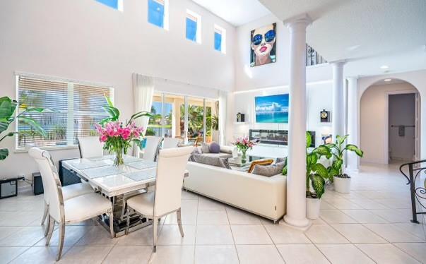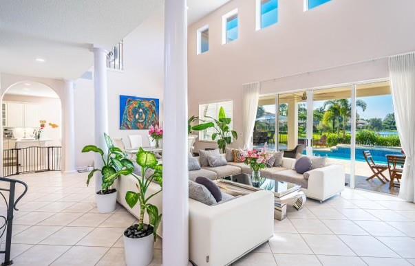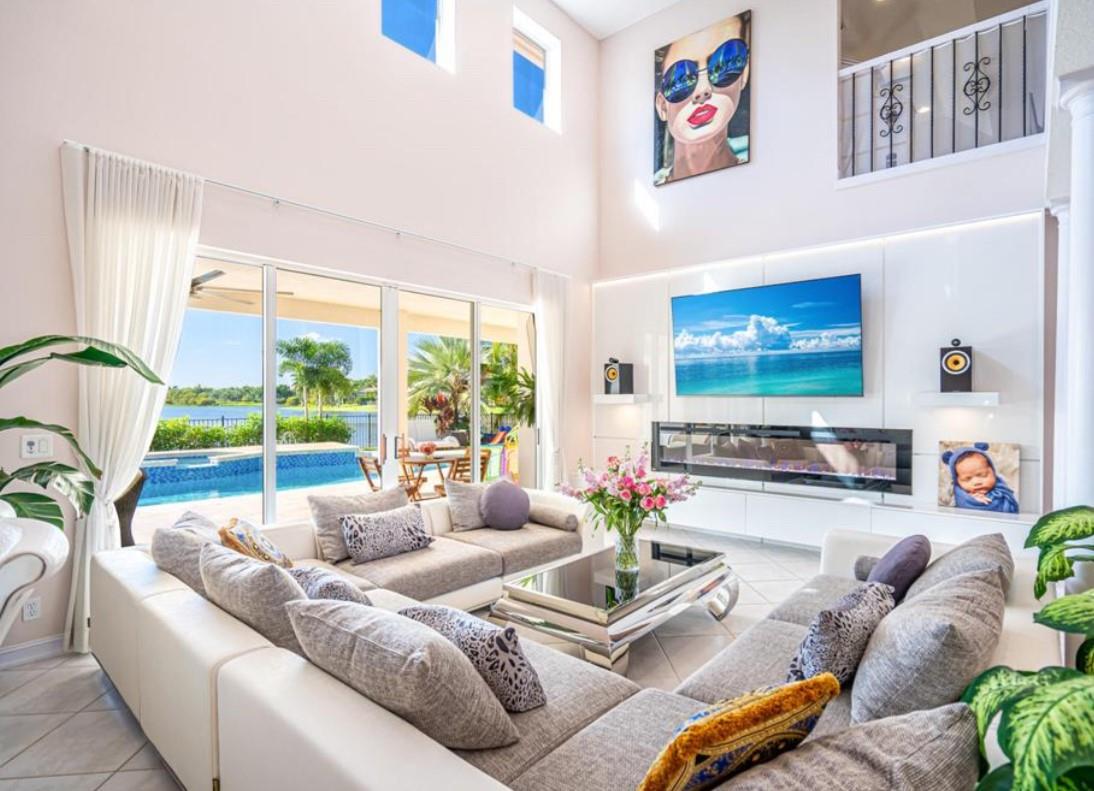 Beautiful 7 Bed 4/2 Bath located in the desirable Boca Falls community. This gorgeous home has over 5K SF of living space and sits on a beautiful waterfront lot. This property is great for entertaining with covered lanai, pool w/hot tub, and a large travertine pool deck.