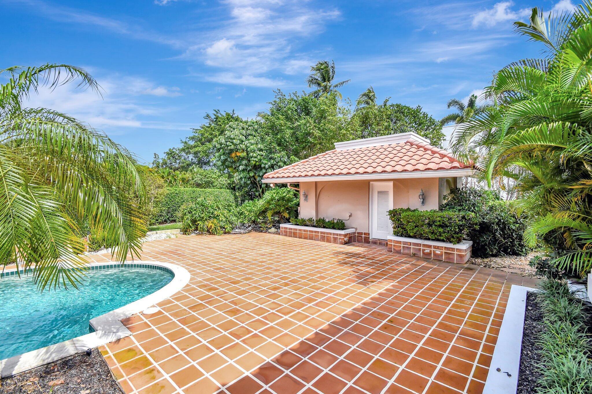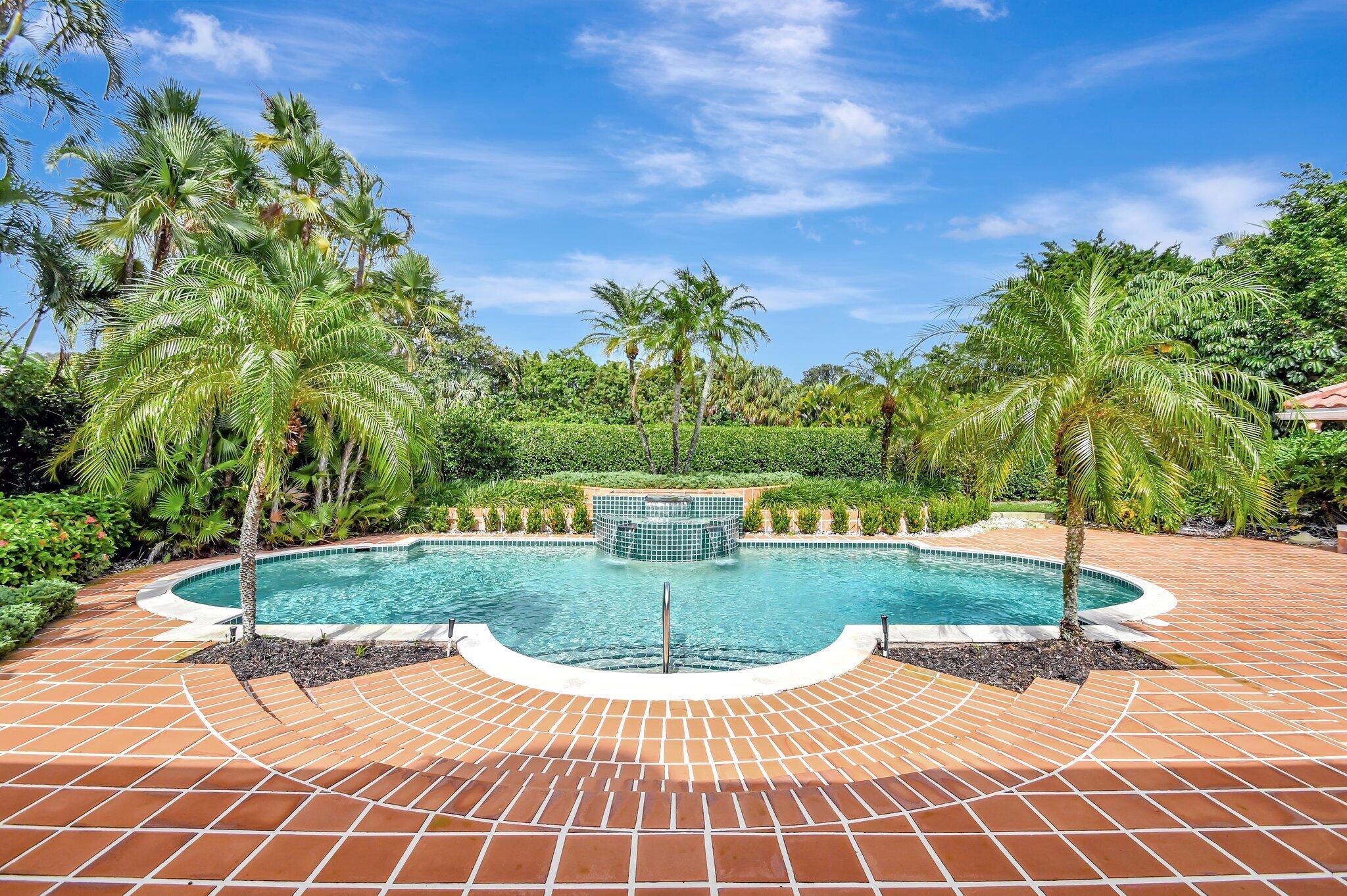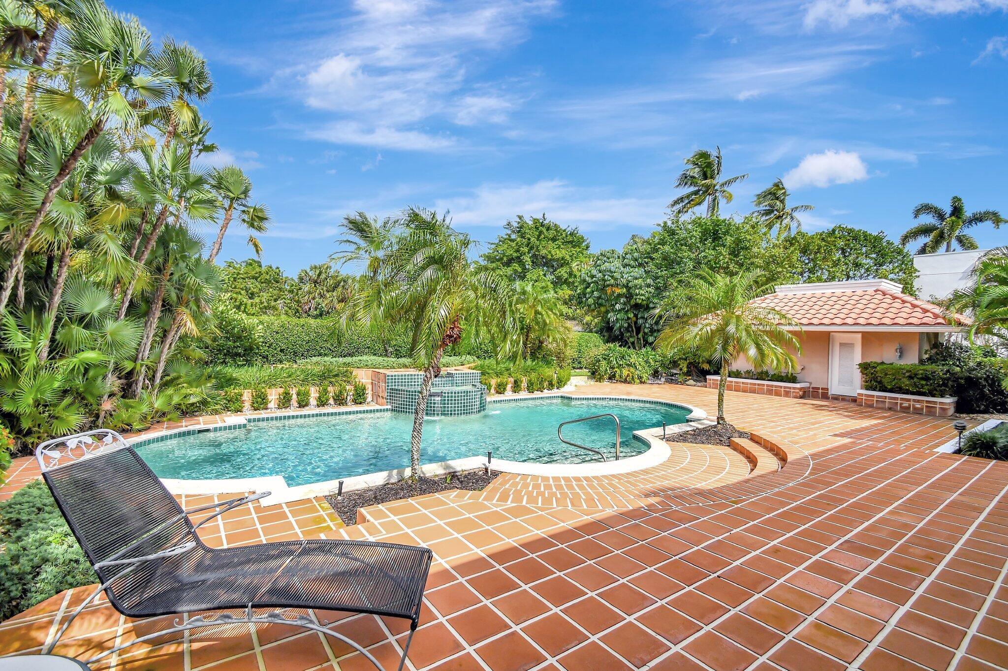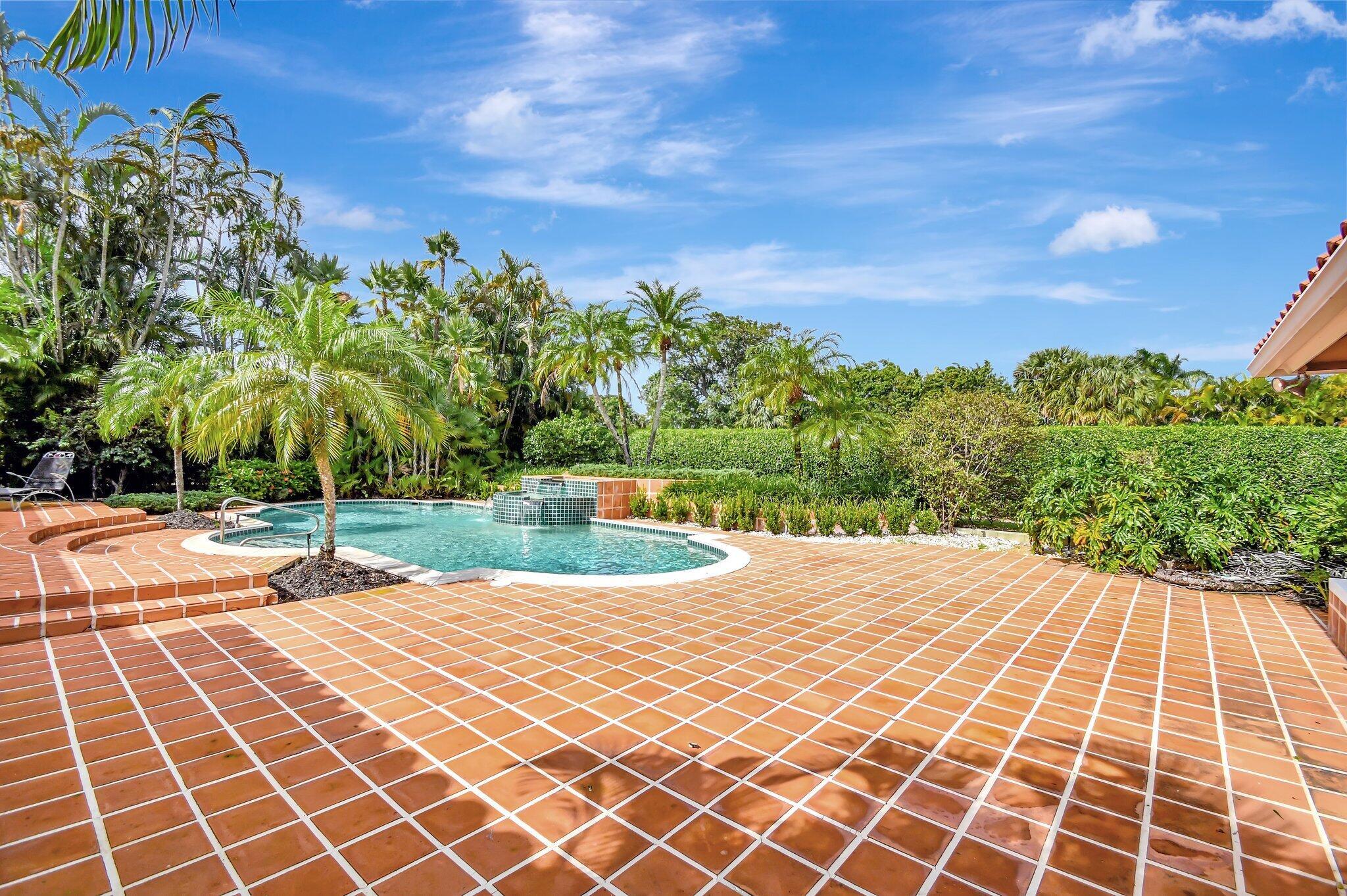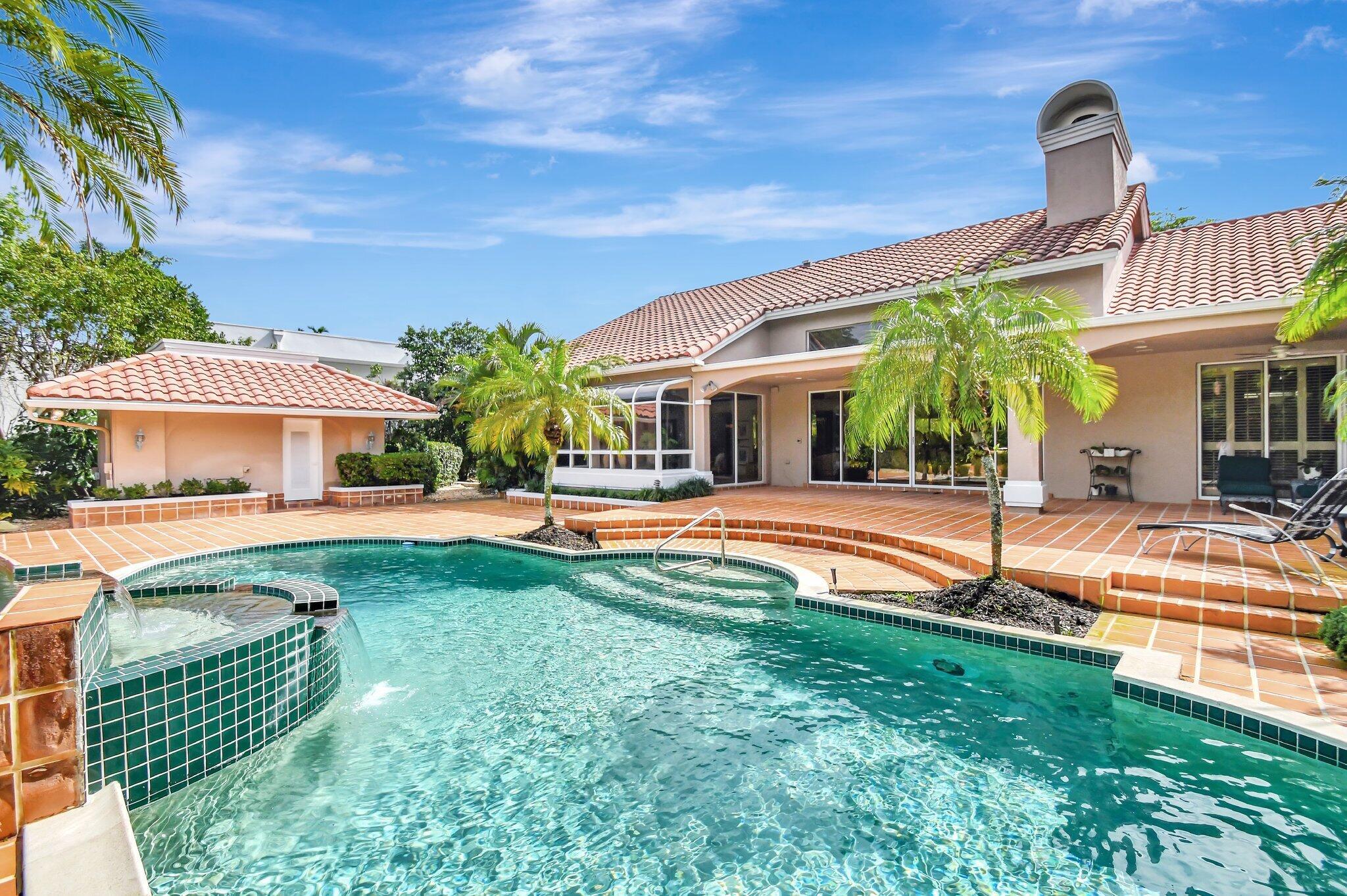 Located on over half an acre in a peaceful cul-de-sac within the exclusive, members-only Boca Grove Country Club, this elegant estate blends classic charm with contemporary design. The home features vaulted cedar ceilings, herringbone Serpengente marble floors, and a towering coral rock fireplace. A unique interior greenhouse flows seamlessly onto the Italian terra cotta patio, creating an inviting space for indoor-outdoor living. The backyard features a beautiful pool with a two-tiered waterfall, surrounded by Mediterranean-inspired details. With 3 bedrooms, 2.5 baths, and a cabana/guest house, this home offers resort-style living in one of Boca Raton's most desirable neighborhoods.