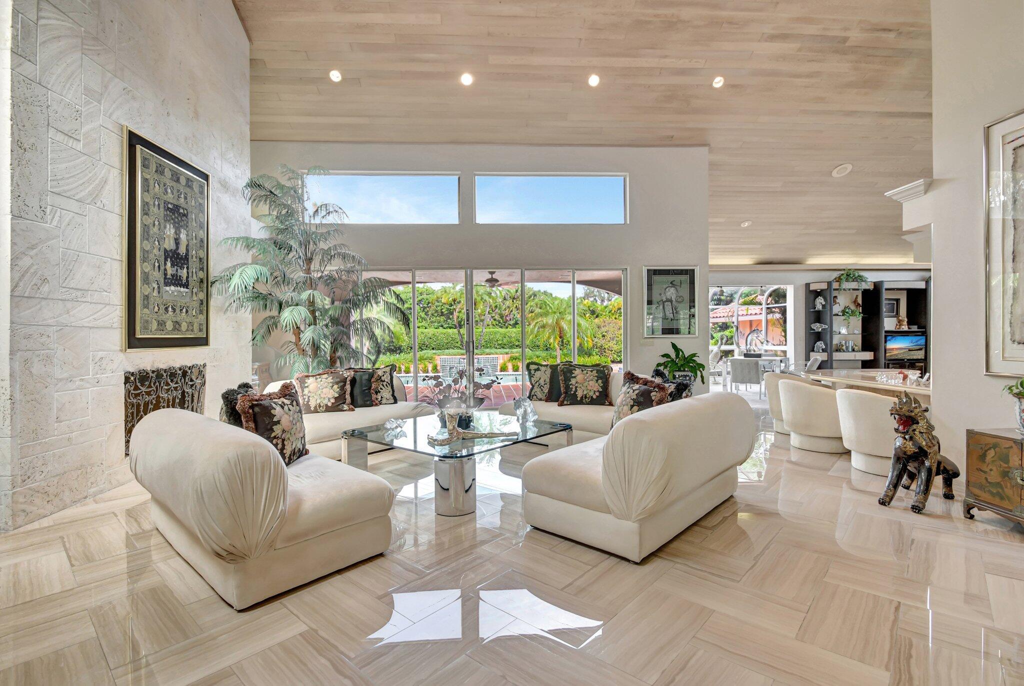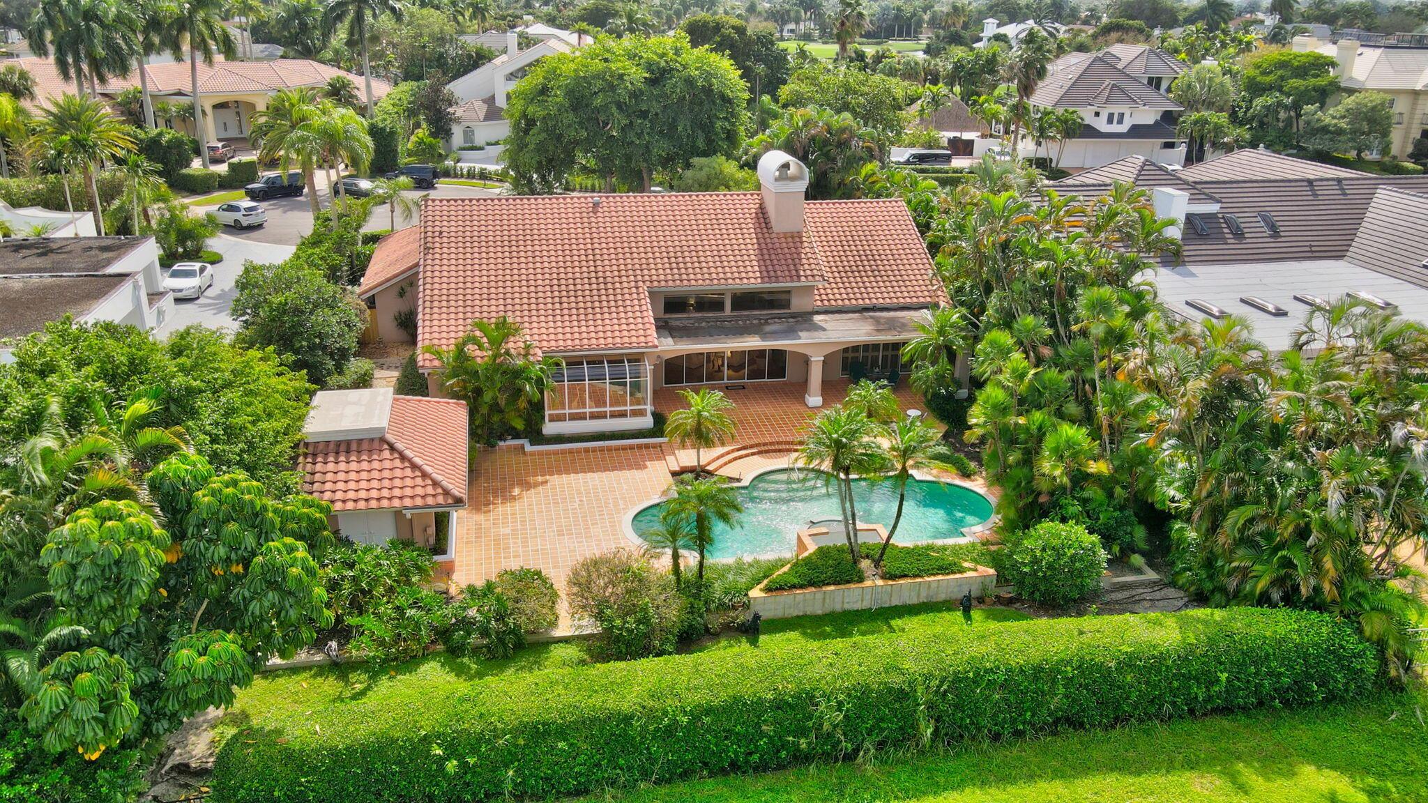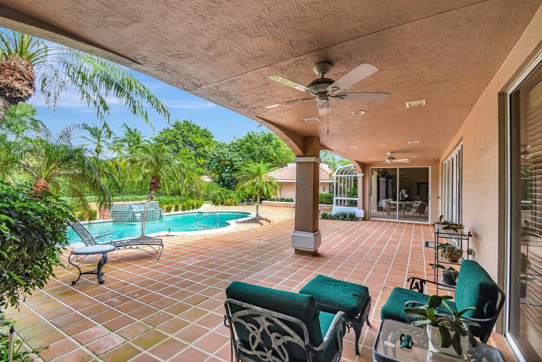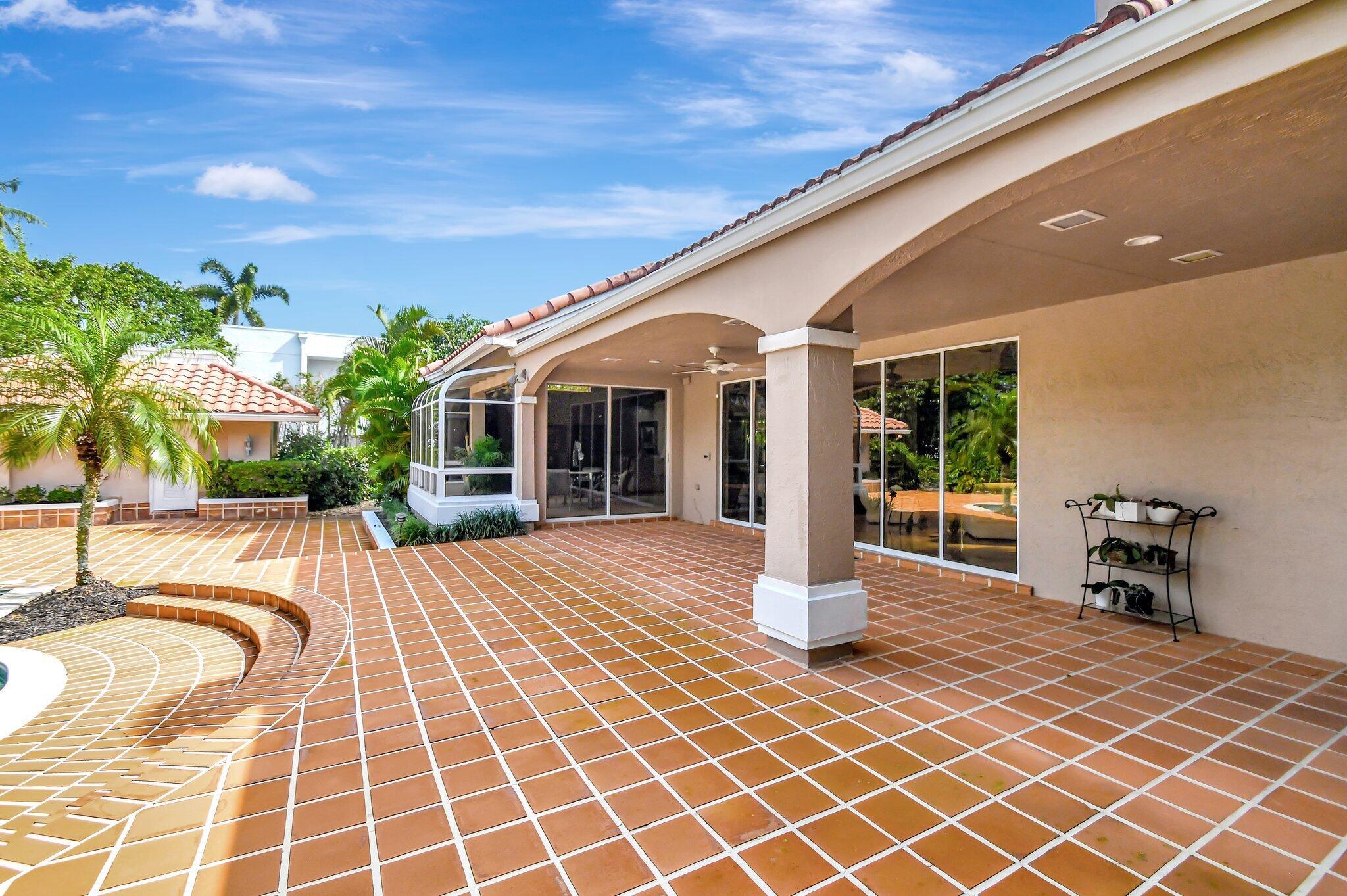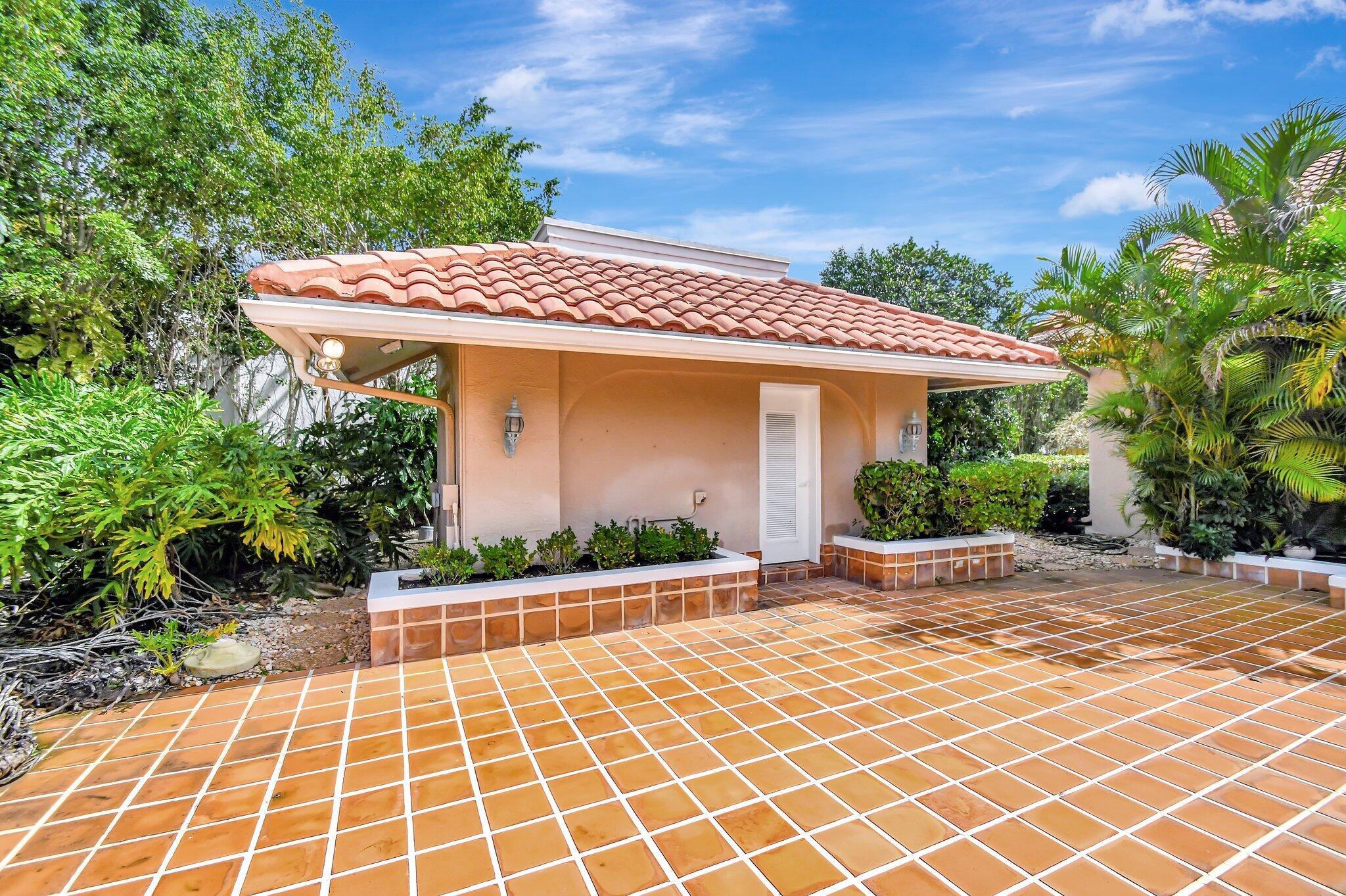 Located on over half an acre in a peaceful cul-de-sac within the exclusive, members-only Boca Grove Country Club, this elegant estate blends classic charm with contemporary design. The home features vaulted cedar ceilings, herringbone Serpengente marble floors, and a towering coral rock fireplace. A unique interior greenhouse flows seamlessly onto the Italian terra cotta patio, creating an inviting space for indoor-outdoor living. The backyard features a beautiful pool with a two-tiered waterfall, surrounded by Mediterranean-inspired details. With 3 bedrooms, 2.5 baths, and a cabana/guest house, this home offers resort-style living in one of Boca Raton's most desirable neighborhoods.
