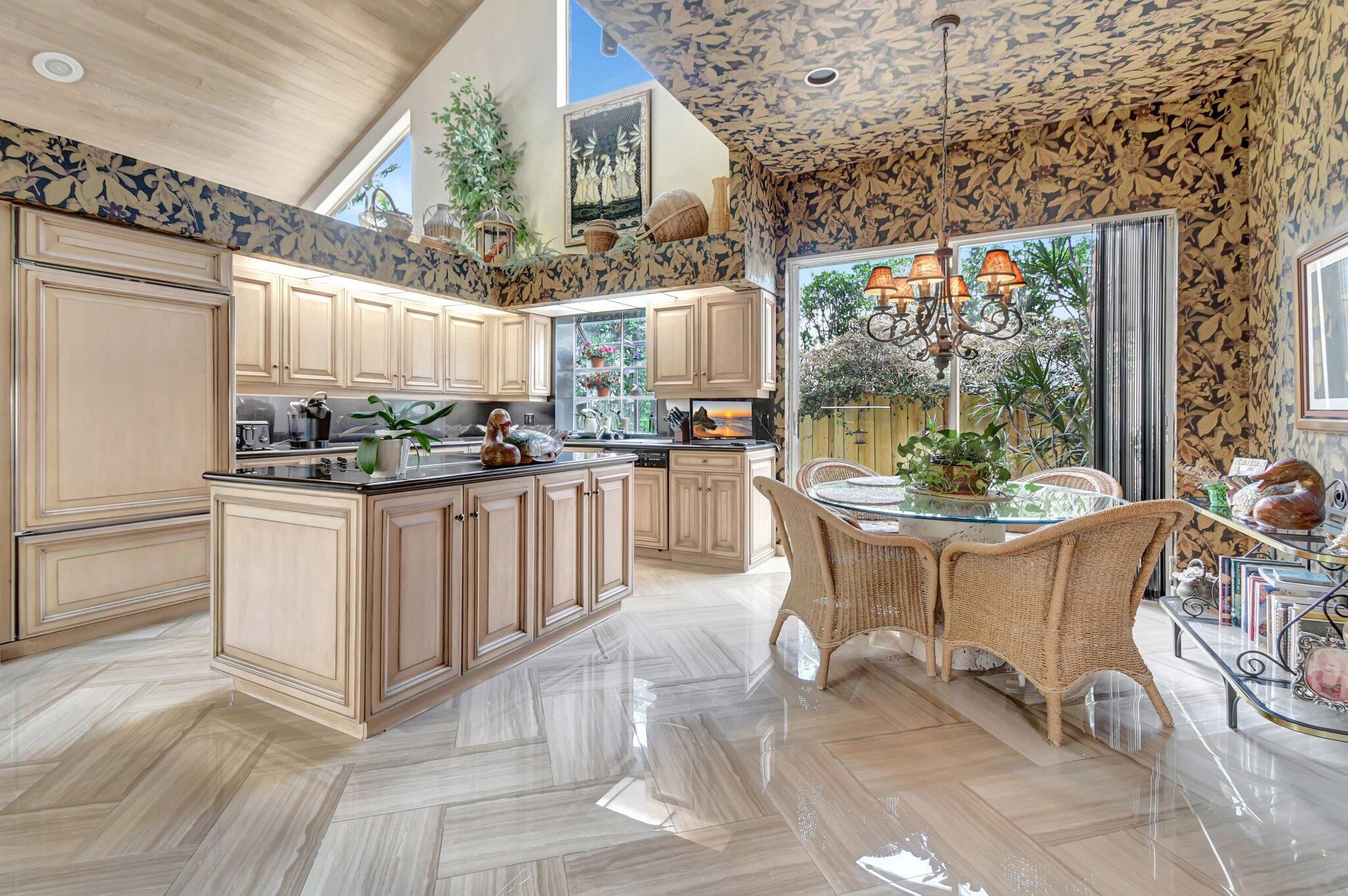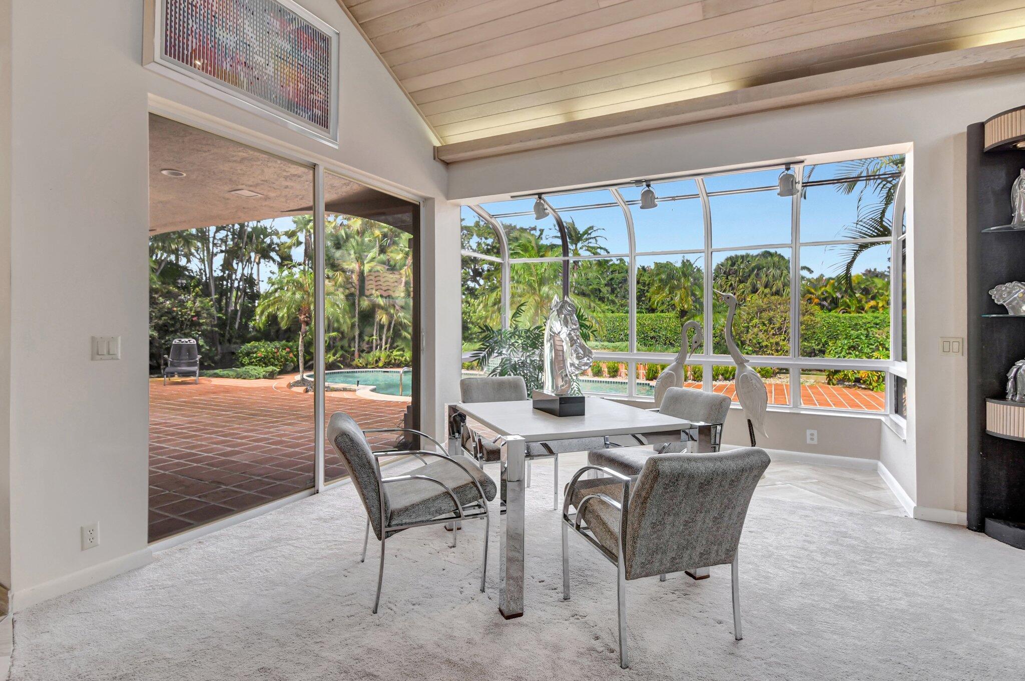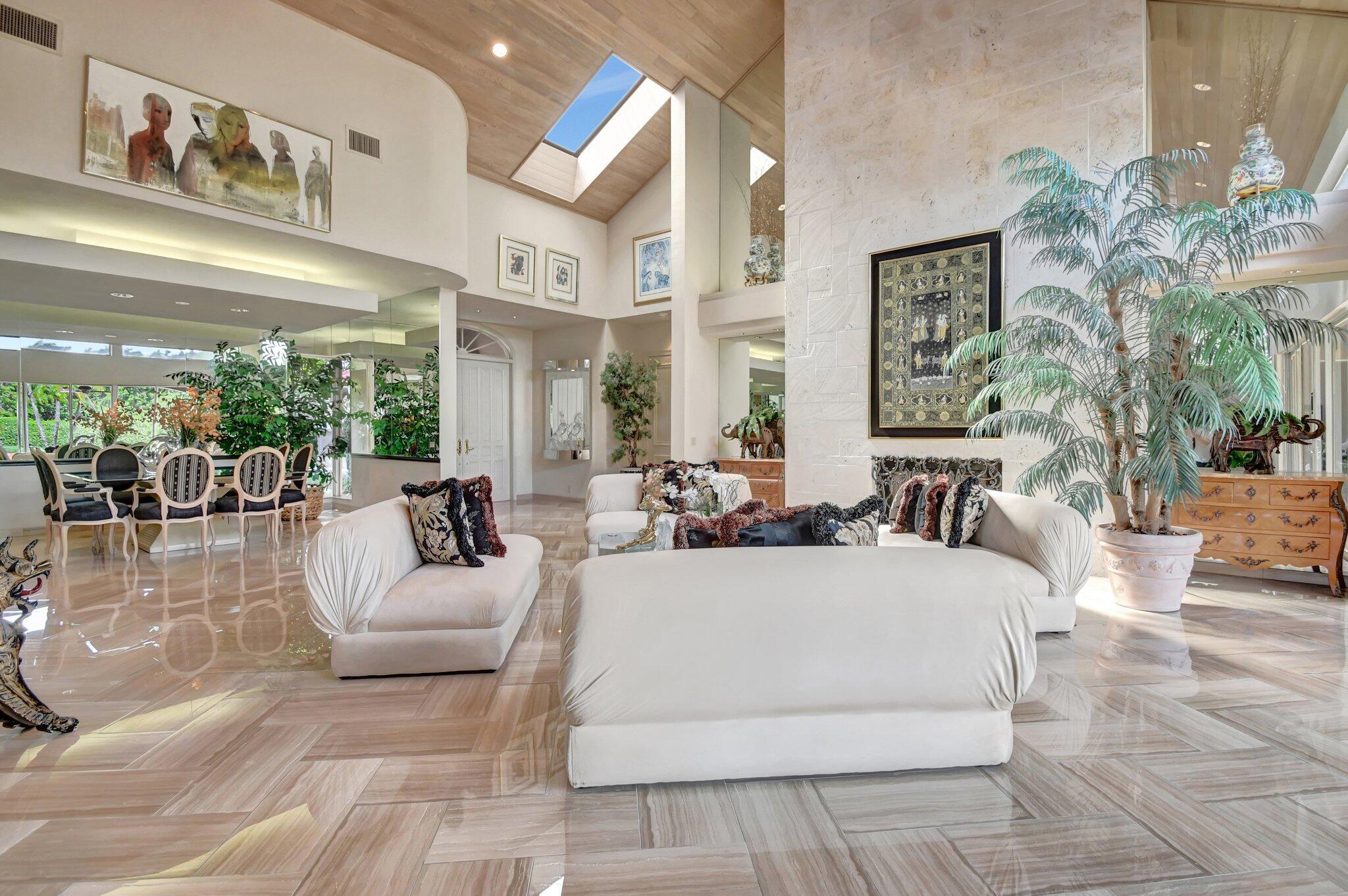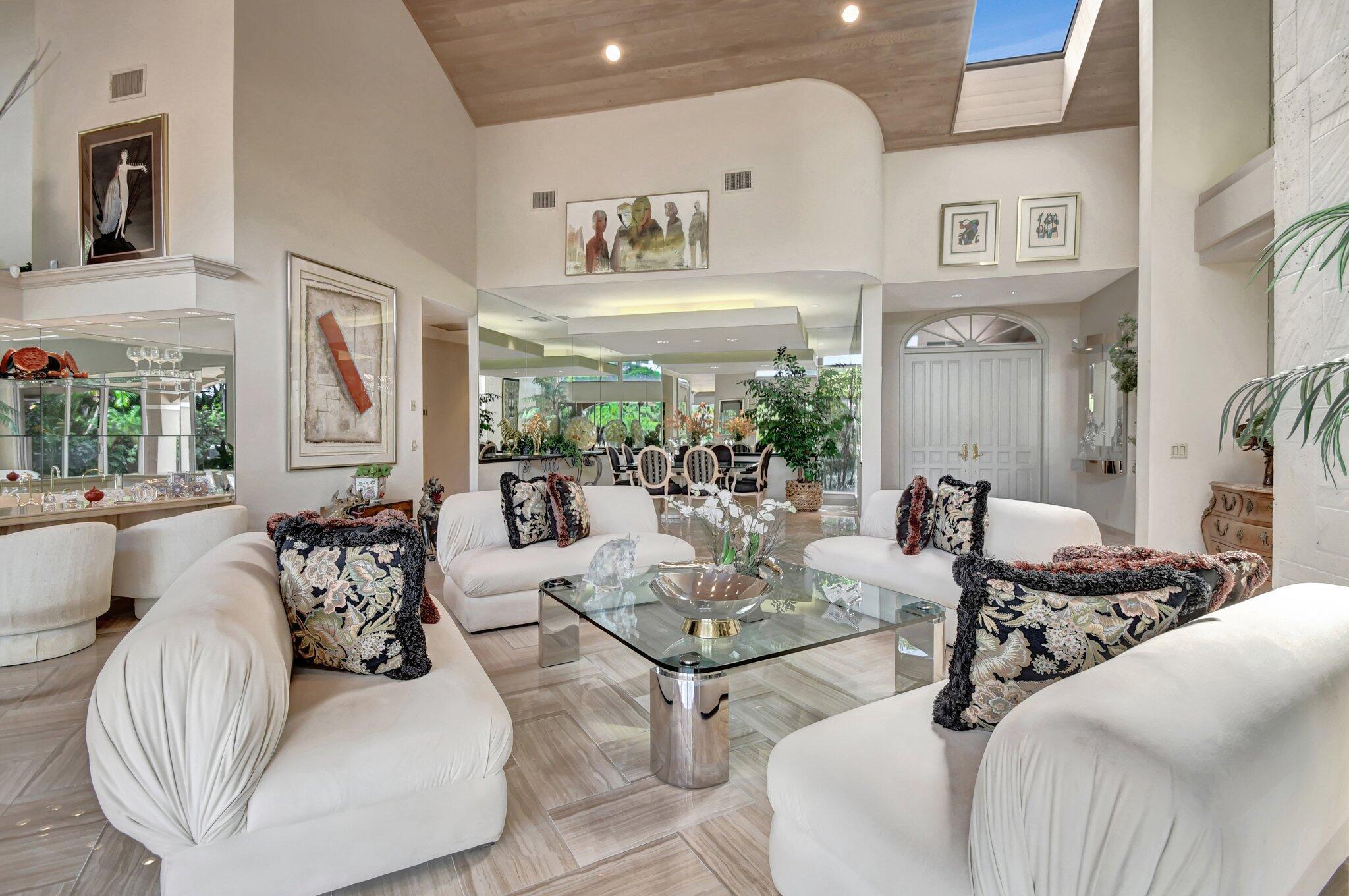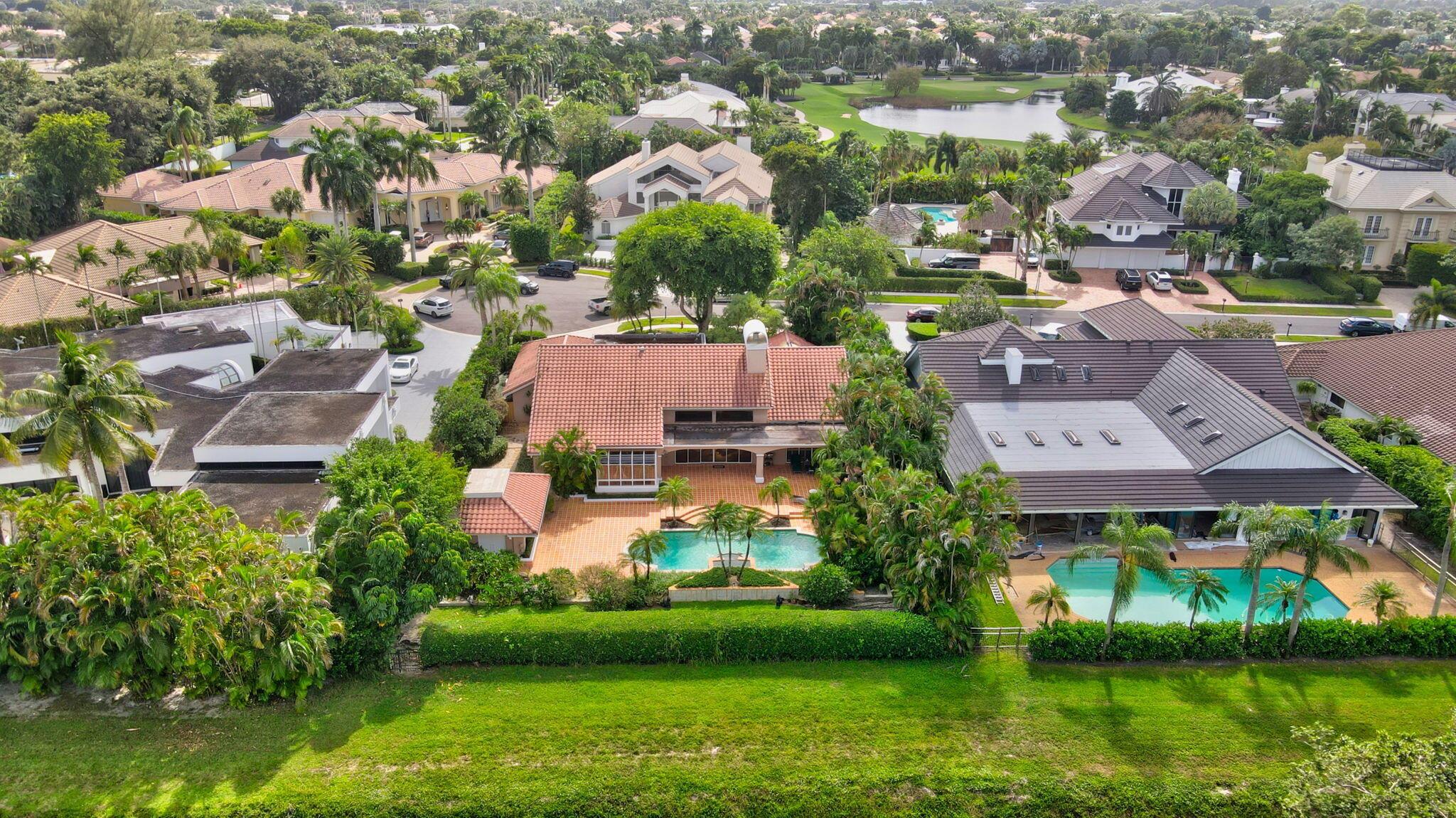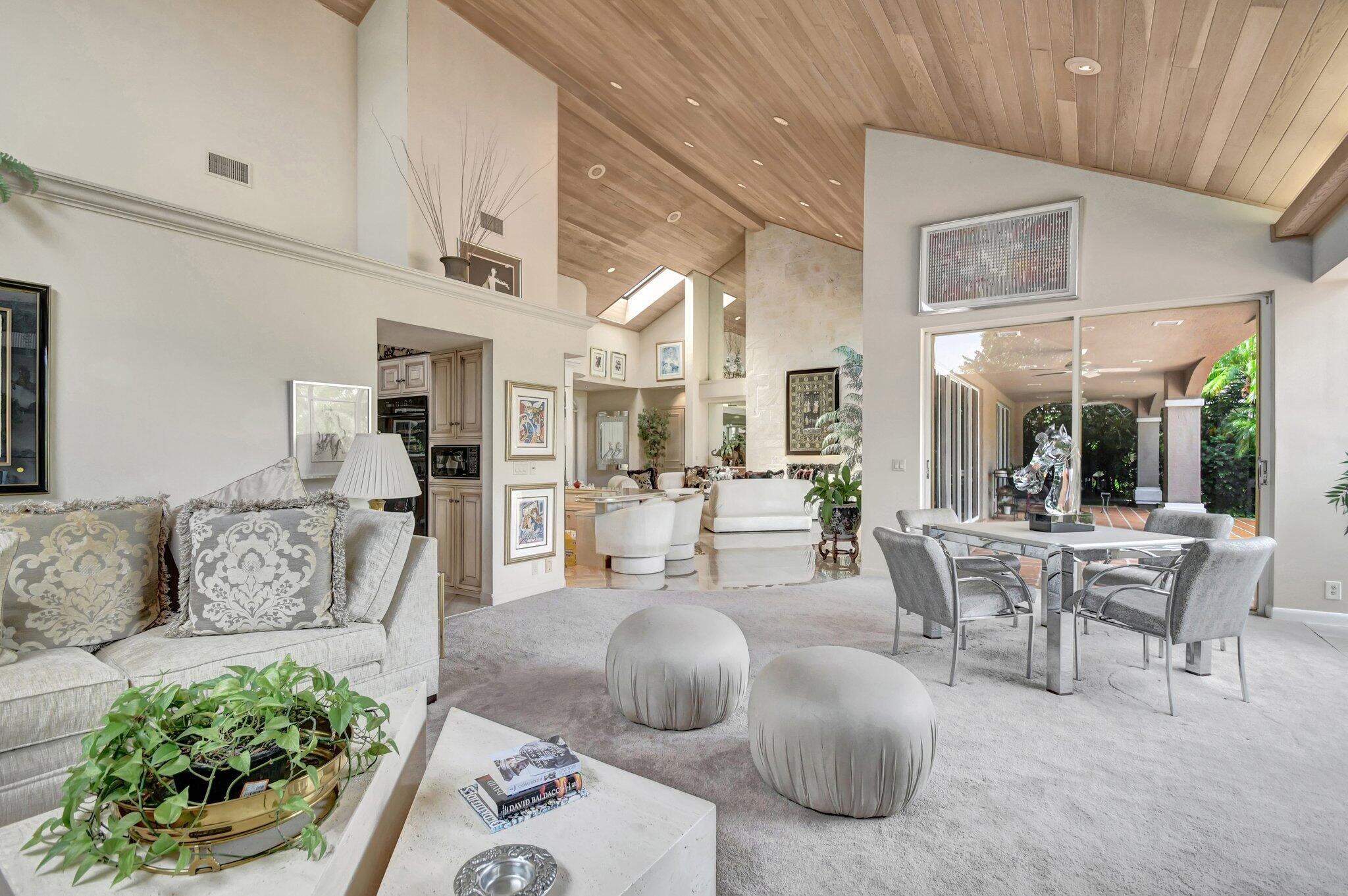 Located on over half an acre in a peaceful cul-de-sac within the exclusive, members-only Boca Grove Country Club, this elegant estate blends classic charm with contemporary design. The home features vaulted cedar ceilings, herringbone Serpengente marble floors, and a towering coral rock fireplace. A unique interior greenhouse flows seamlessly onto the Italian terra cotta patio, creating an inviting space for indoor-outdoor living. The backyard features a beautiful pool with a two-tiered waterfall, surrounded by Mediterranean-inspired details. With 3 bedrooms, 2.5 baths, and a cabana/guest house, this home offers resort-style living in one of Boca Raton's most desirable neighborhoods.