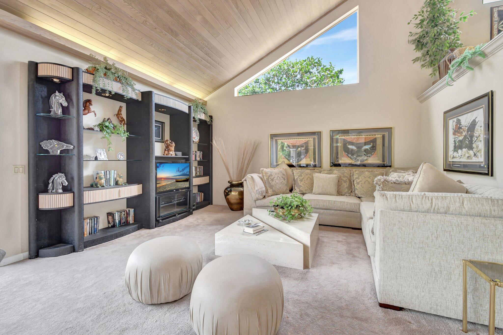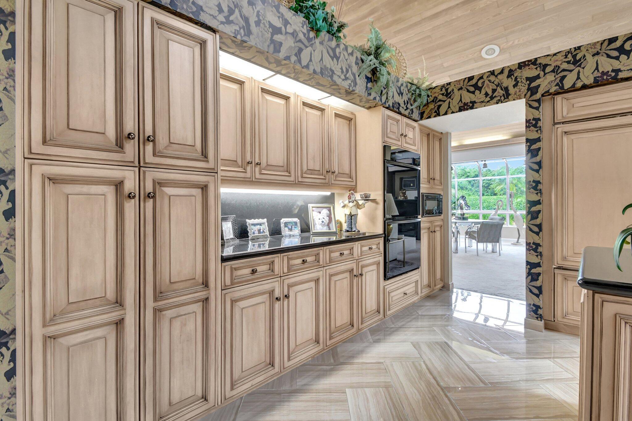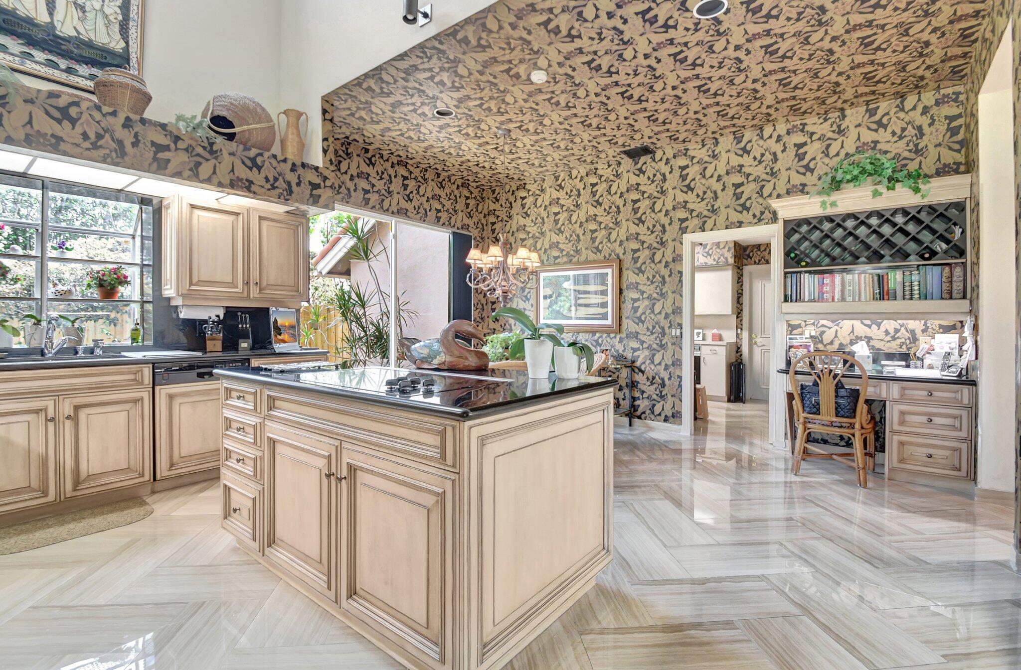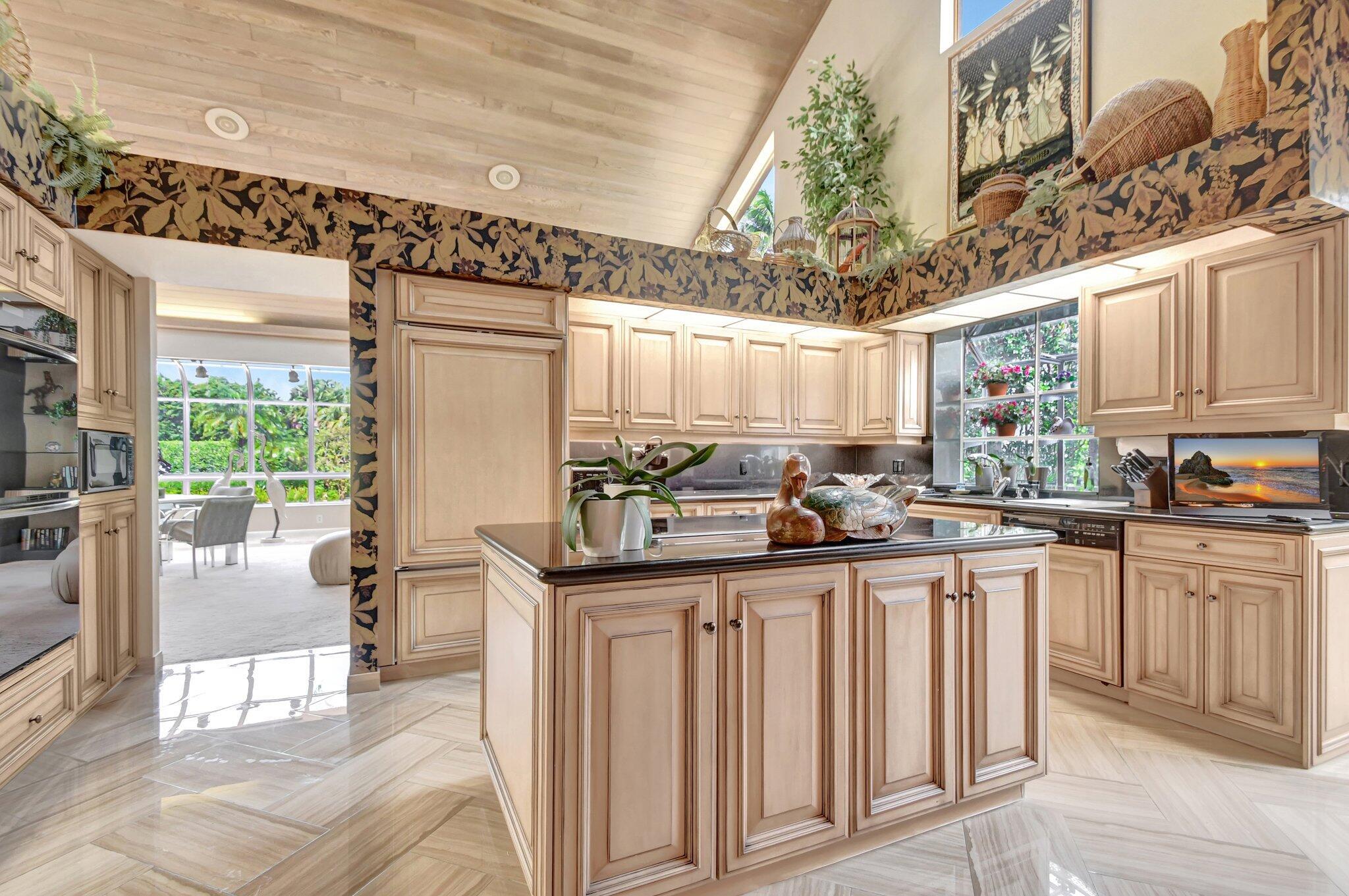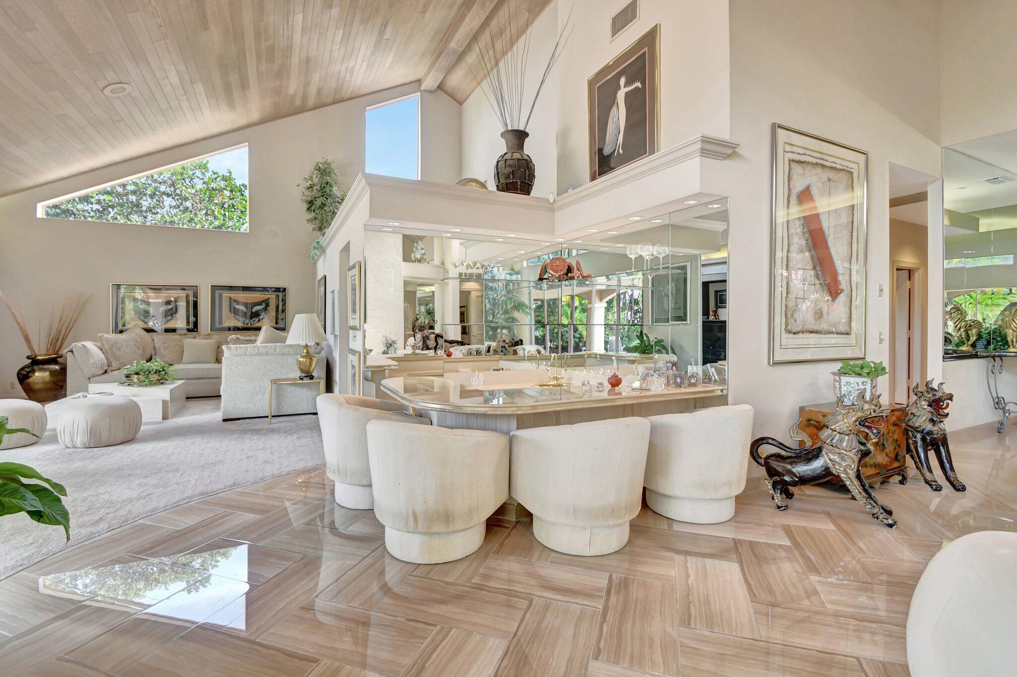 Located on over half an acre in a peaceful cul-de-sac within the exclusive, members-only Boca Grove Country Club, this elegant estate blends classic charm with contemporary design. The home features vaulted cedar ceilings, herringbone Serpengente marble floors, and a towering coral rock fireplace. A unique interior greenhouse flows seamlessly onto the Italian terra cotta patio, creating an inviting space for indoor-outdoor living. The backyard features a beautiful pool with a two-tiered waterfall, surrounded by Mediterranean-inspired details. With 3 bedrooms, 2.5 baths, and a cabana/guest house, this home offers resort-style living in one of Boca Raton's most desirable neighborhoods.