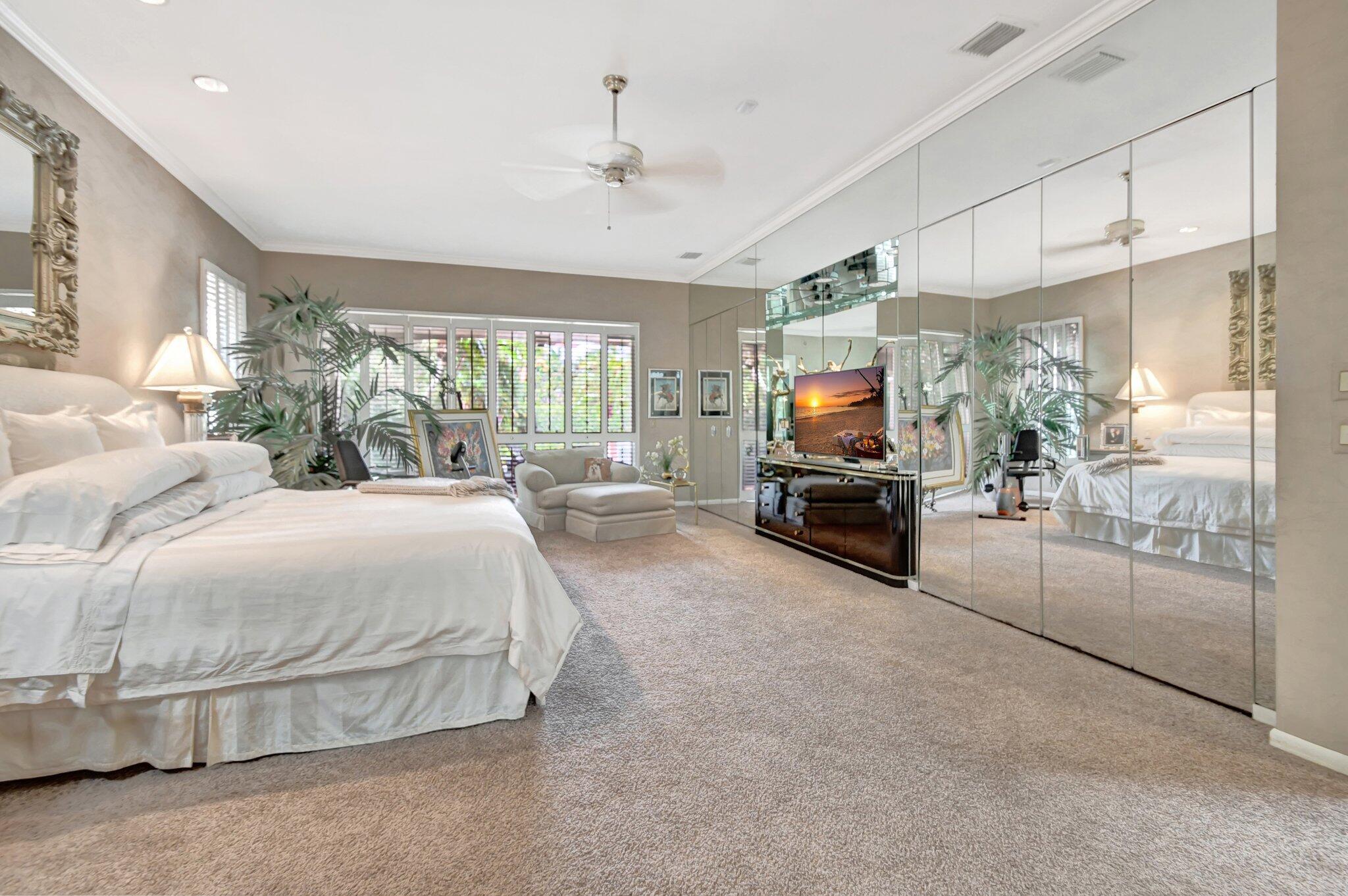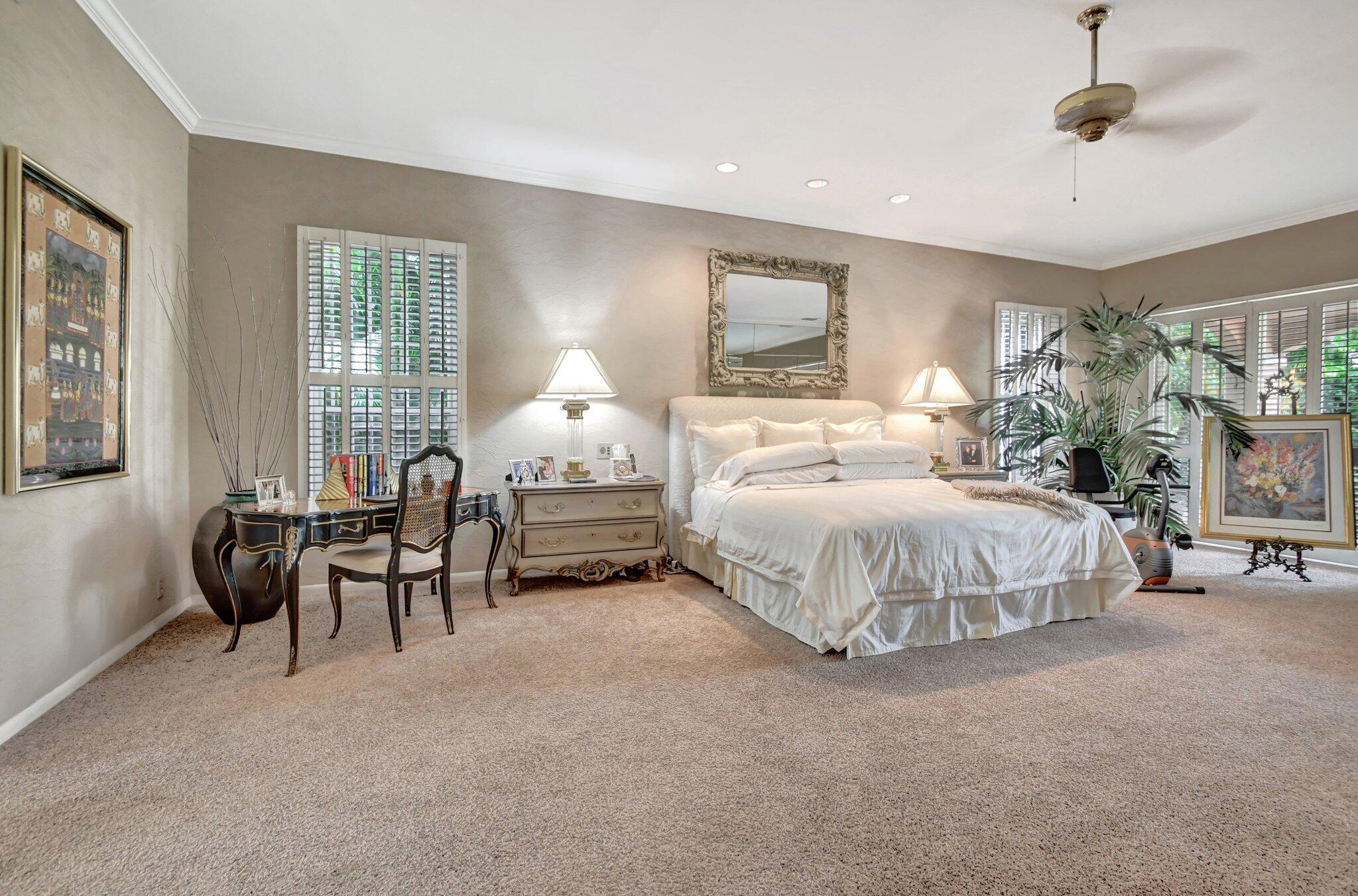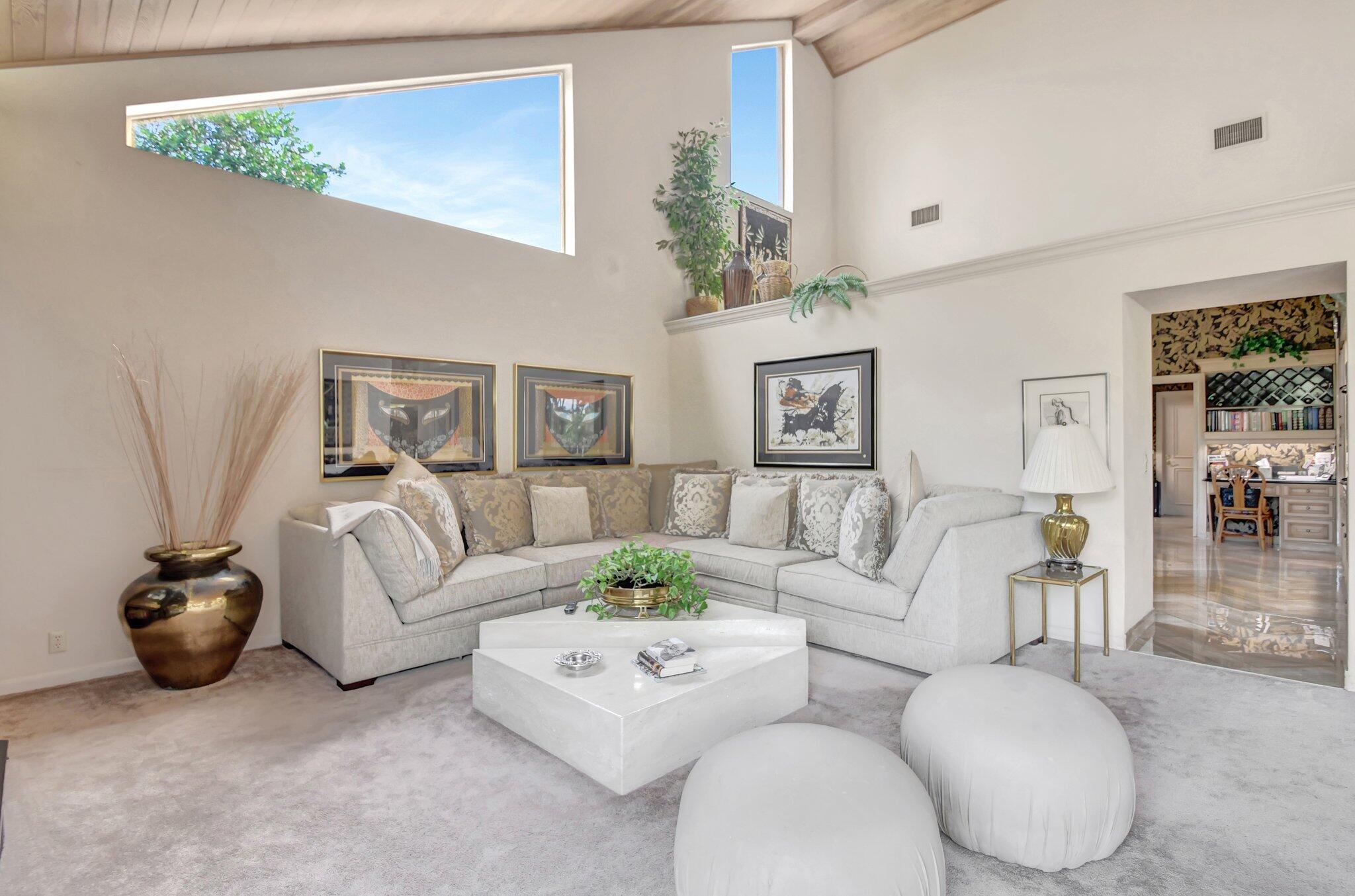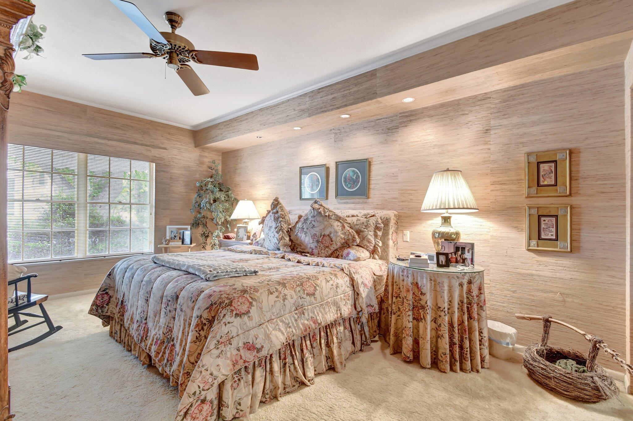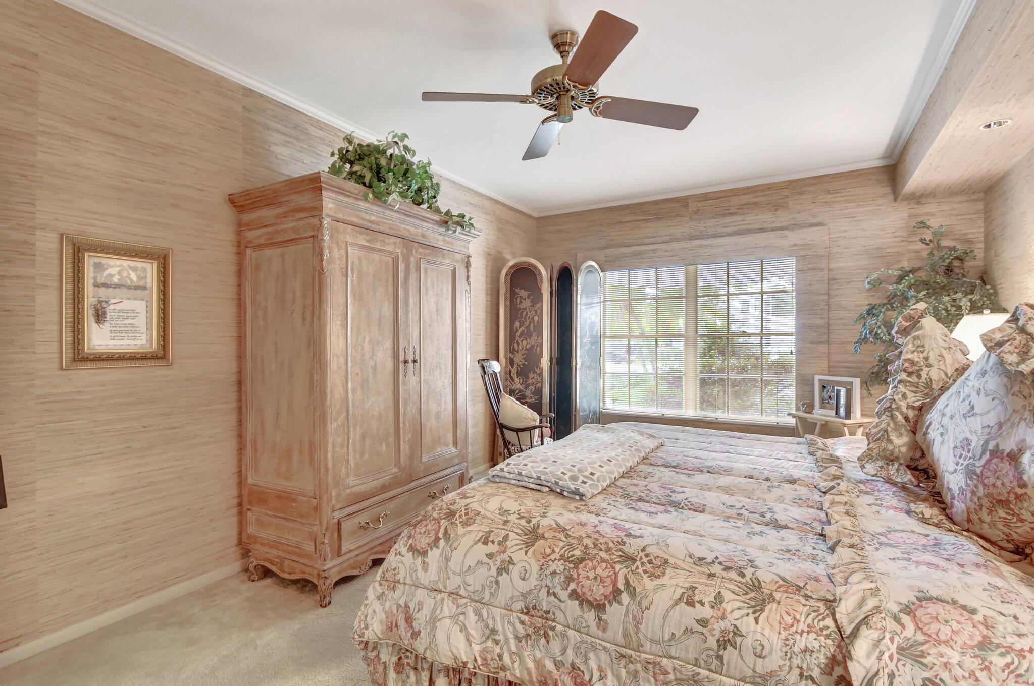 Located on over half an acre in a peaceful cul-de-sac within the exclusive, members-only Boca Grove Country Club, this elegant estate blends classic charm with contemporary design. The home features vaulted cedar ceilings, herringbone Serpengente marble floors, and a towering coral rock fireplace. A unique interior greenhouse flows seamlessly onto the Italian terra cotta patio, creating an inviting space for indoor-outdoor living. The backyard features a beautiful pool with a two-tiered waterfall, surrounded by Mediterranean-inspired details. With 3 bedrooms, 2.5 baths, and a cabana/guest house, this home offers resort-style living in one of Boca Raton's most desirable neighborhoods.