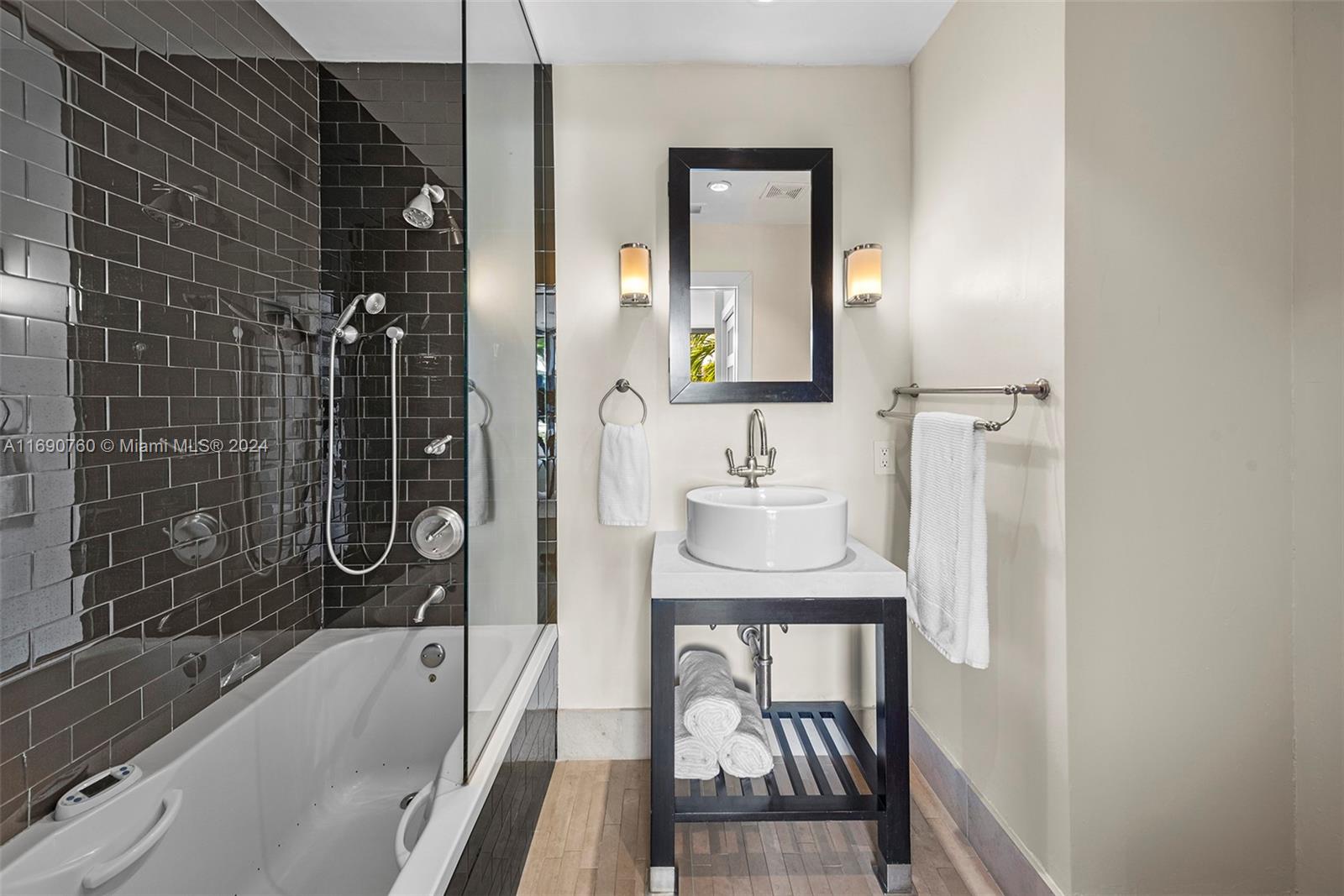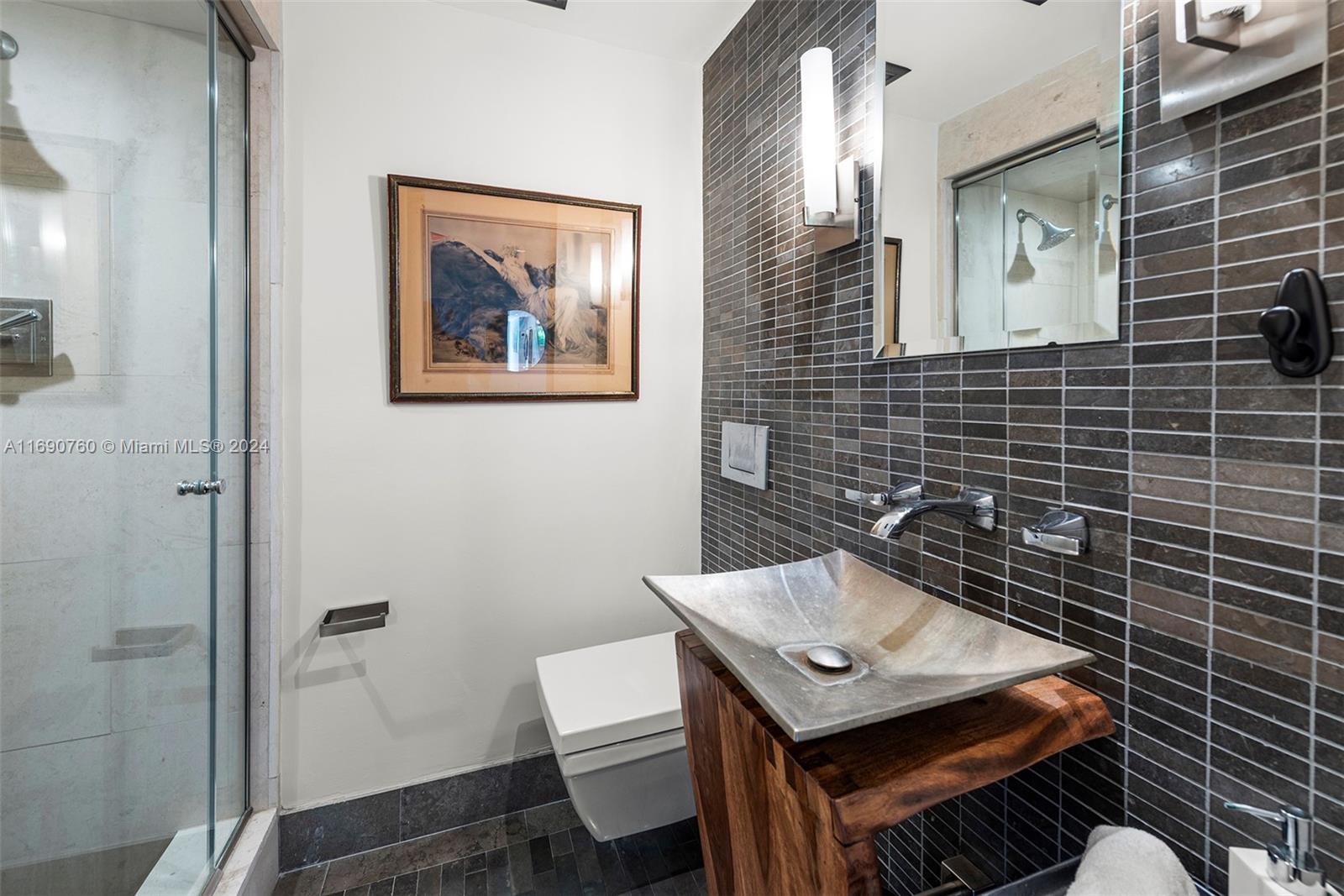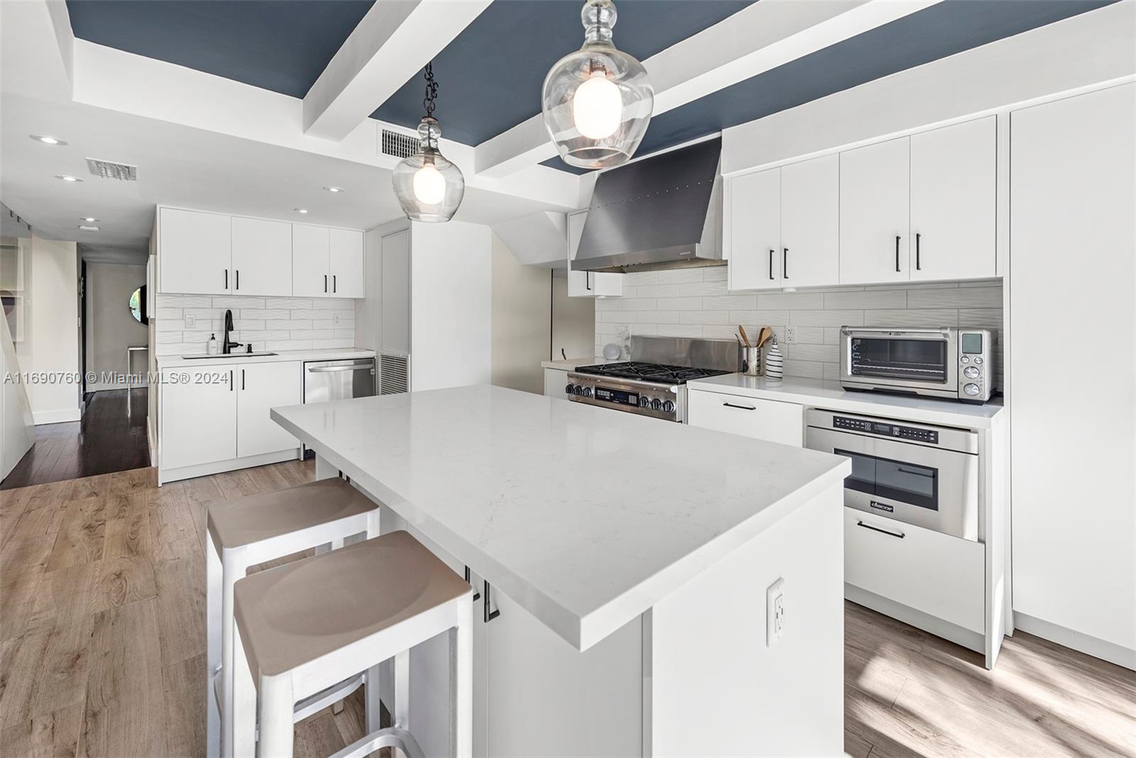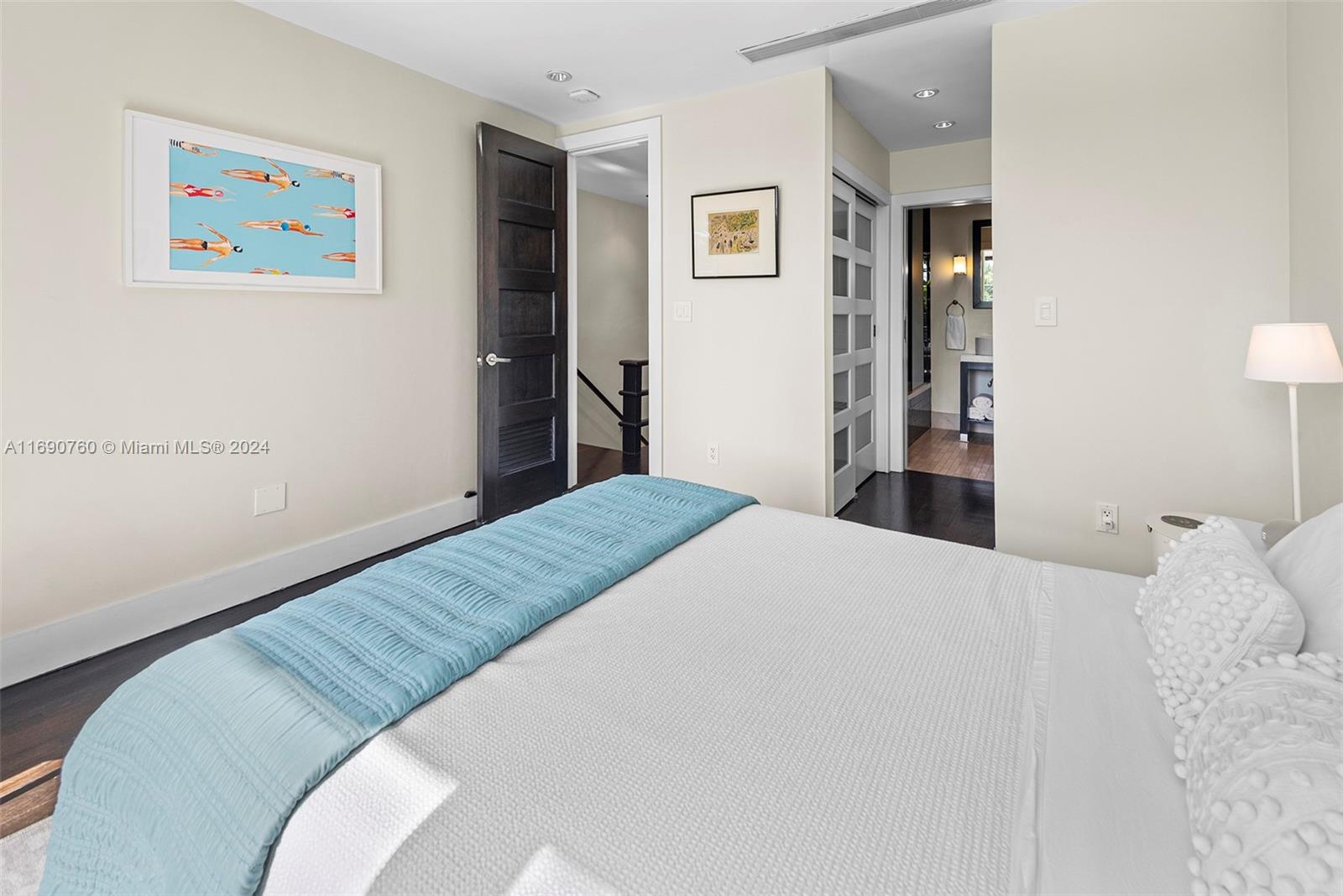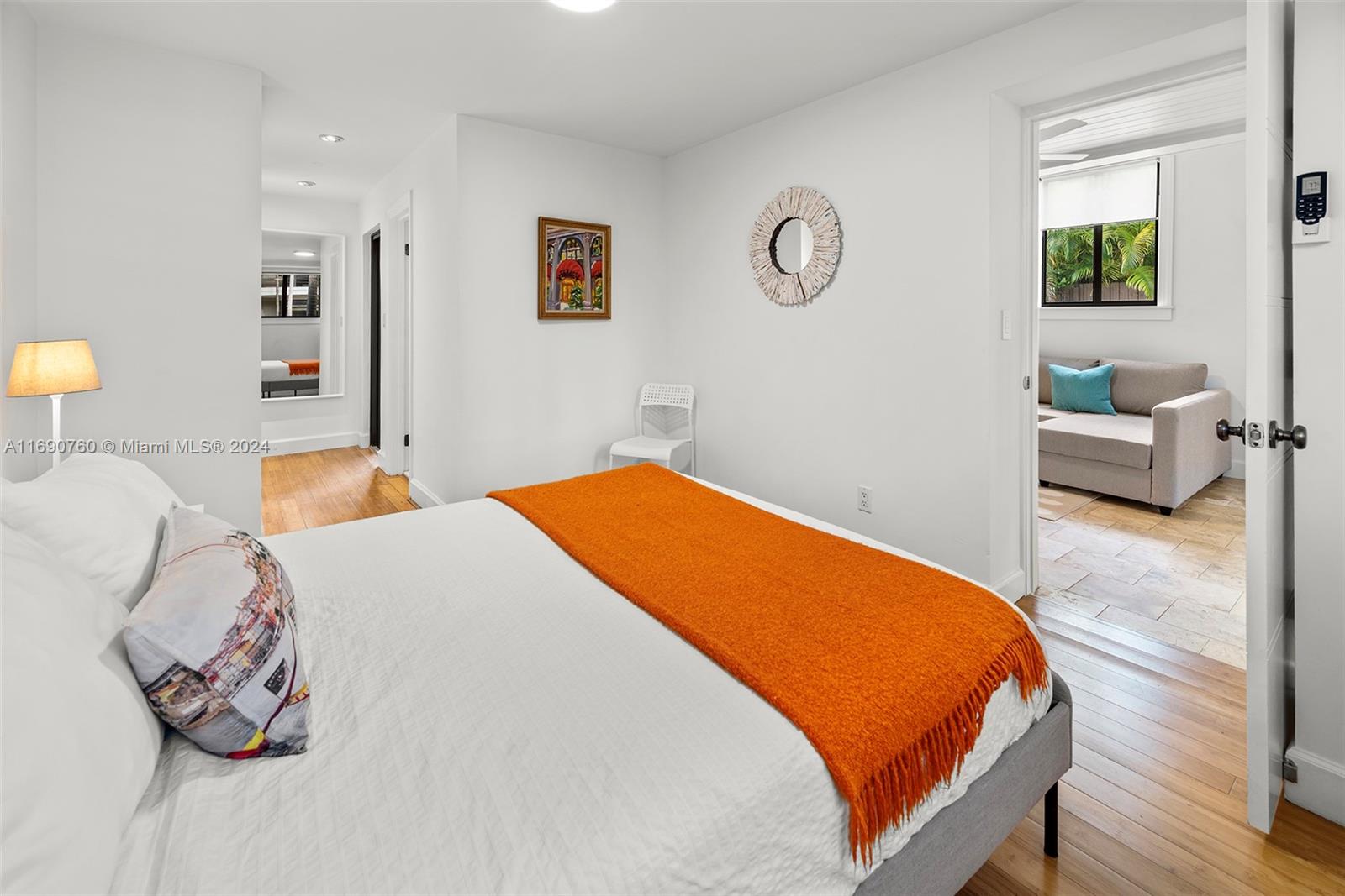 Impeccably crafted, zen-chic home built by a Frank Lloyd Wright protégé and upgraded by Nuhouse Design to amplify the quintessential Miami Beach lifestyle. An expansive entry and open staircase set the stage for the sophisticated interior. Spanning over 2,400 SF of refined living space, the main house encompasses a gourmet kitchen, a modern wood-paneled living room, 3 designer-quality baths and 3 generous bedrooms -including a decadent, spa-like primary ensuite with a spacious walk-in closet. The detached guest house (1 bed/1 bath) adds an additional 600 SF of privacy for guests, nanny or even an income producing tenant. Low-maintenance, landscaped grounds include a large, gated carpark for multiple cars, a sun-drenched pool+spa, and a tropical palm-shaded courtyard for alfresco dining.