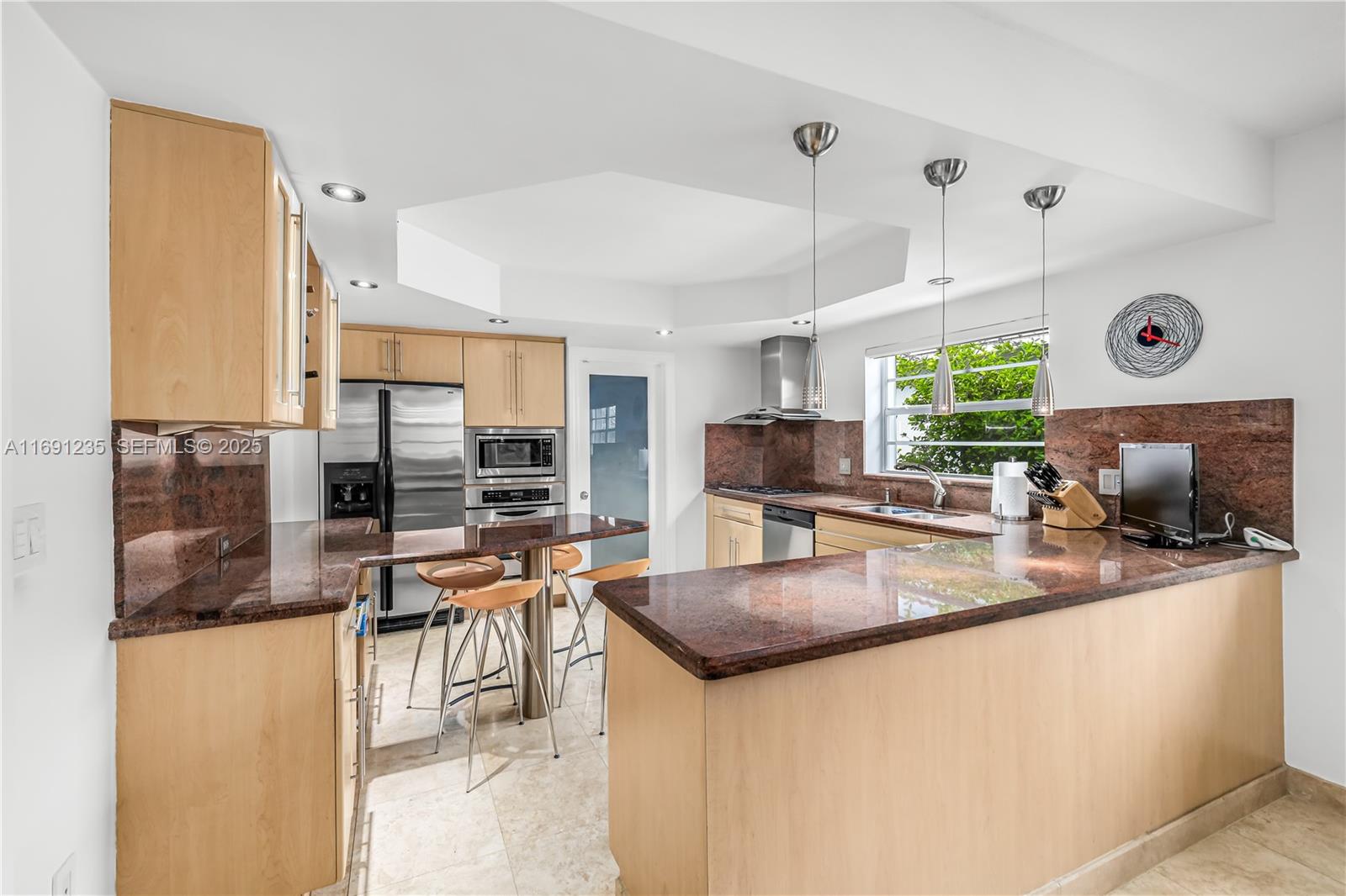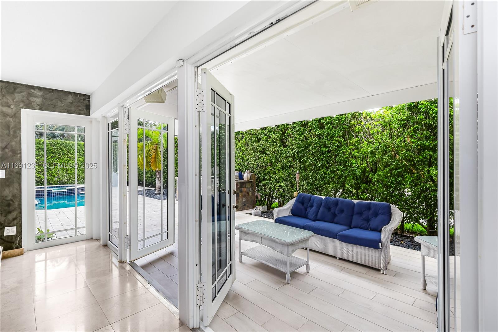 Exceptional corner home in Surfside, located just in front of multi-million-dollar waterfront estates and within walking distance to the beach. Set on a desirable oversized corner lot, this residence offers more space and privacy than typical neighborhood homes. The beautifully maintained and partially remodeled 3/2 features a bright Florida Room filled with natural light, plus a fully equipped kitchen with an open pass-through to the dining area. A thoughtful layout places all bedrooms and bathrooms in a private, separate wing for added tranquility. The spacious garage provides rare potential, with plumbing for a bathroom and laundry room and a separate side entry—ideal for converting into an office, guest suite, or extra bedroom. Outdoors, enjoy a sparkling pool, soothing Jacuzzi, summer kitchen, and a large covered terrace perfect for relaxing or entertaining. With a 2019 roof and quality upgrades throughout, this home combines comfort, style, and prime location. Strong appreciation, high rental demand, and limited inventory also make it an excellent investment with solid long-term ROI potential.