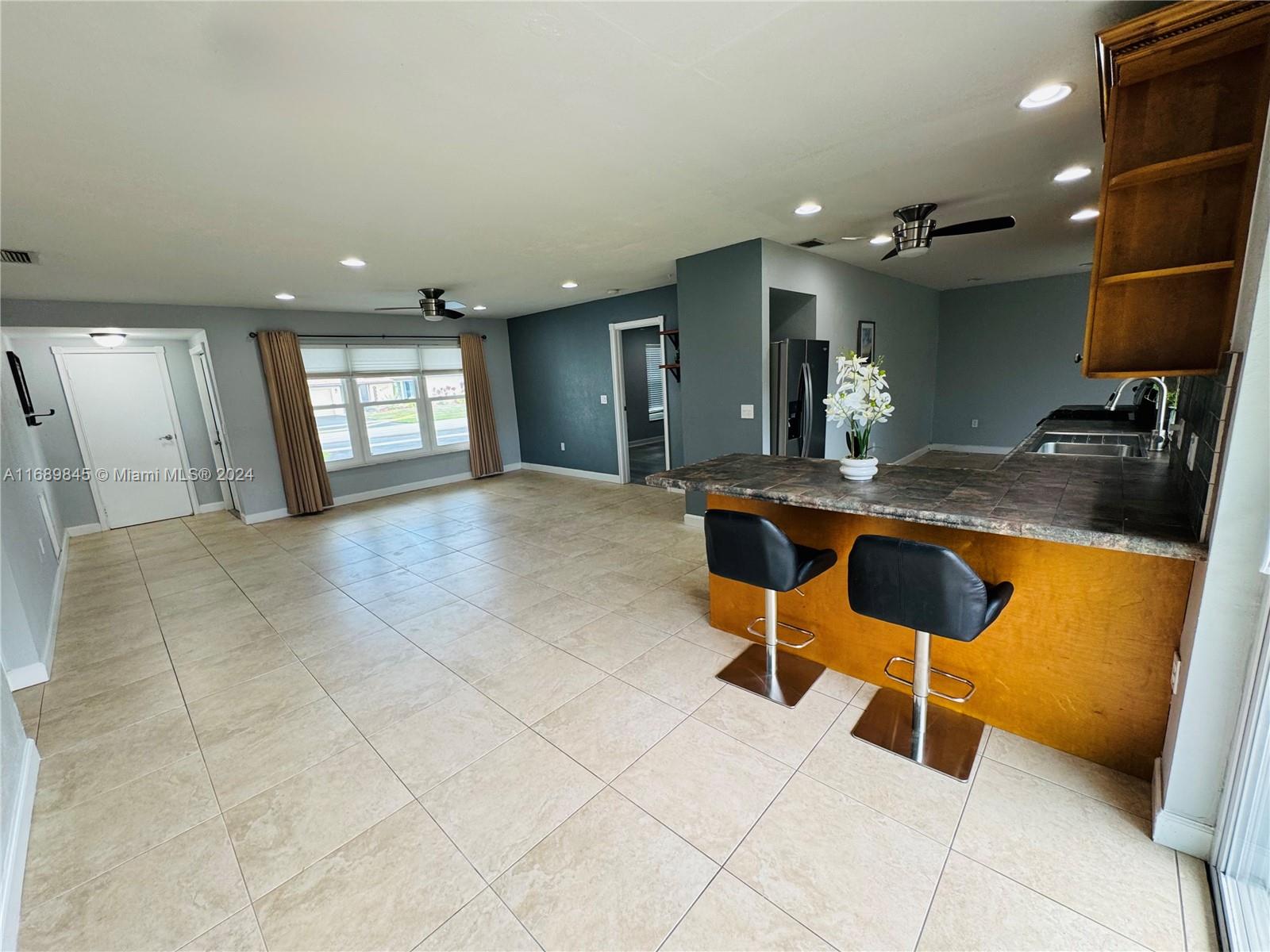 Discover this perfect and affordable home in Sunrise with no HOA! Situated on a quiet street, this home offers easy access to major highways, shopping, schools and dining.With a meticulously maintained backyard with plenty of room for a pool. Covered fully lit wooden deck (deck redone 2024) perfect for entertaining. Recent upgrades include, new laminate flooring in the bedrooms, complete impact windows and doors(2023), brand new roof(November 2024), new water heater ventilation system, new gutters (November 2024), 2015 A/C w/HVAC system replaced(2018),recessed lighting, SS kitchen appliances including new(2022) washer and dryer in the garage along with tons of storage. New(2023) automatic rain-sensing sprinkler system, newer blown attic insulation (2022),wired security camera system.
