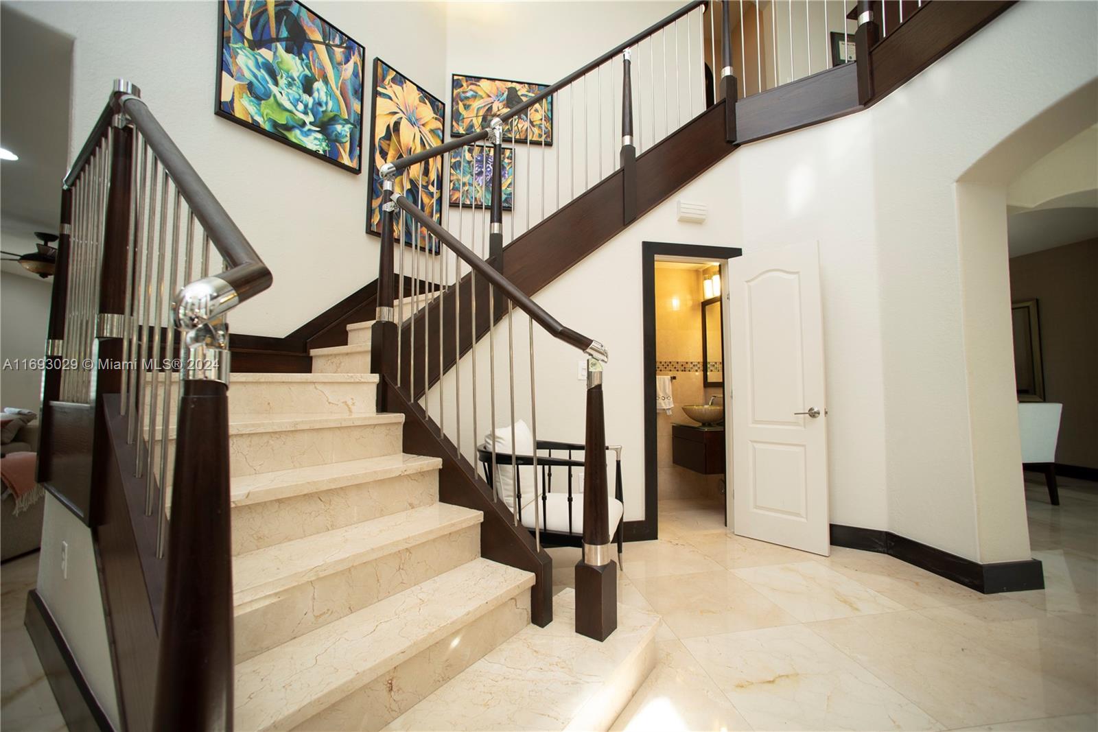 Discover Your Dream Home! Welcome to this stunning residence that exceeds every expectation for the discerning buyer. Nestled on a serene corner lot just behind Legacy Park, this home offers both tranquility and luxury, 5 spacious bedrooms and 4.5 luxurious bathrooms, Outdoor with a modern heated pool 14x8 x4.5. A stylish pergola, elegant granite countertops with a central island. The chef’s kitchen boasts high-end Thermador appliances, wine cooler, and custom finishes throughout. Beautifully renovated bathrooms with marble vanities. New roof with an energy-efficient solar system, impact-resistant sliding doors, windows are non-impact. AC upstairs was installed in 2021. Downstairs AC unit is original 2007. This home is not just a place to live it’s a lifestyle waiting to be embraced.
