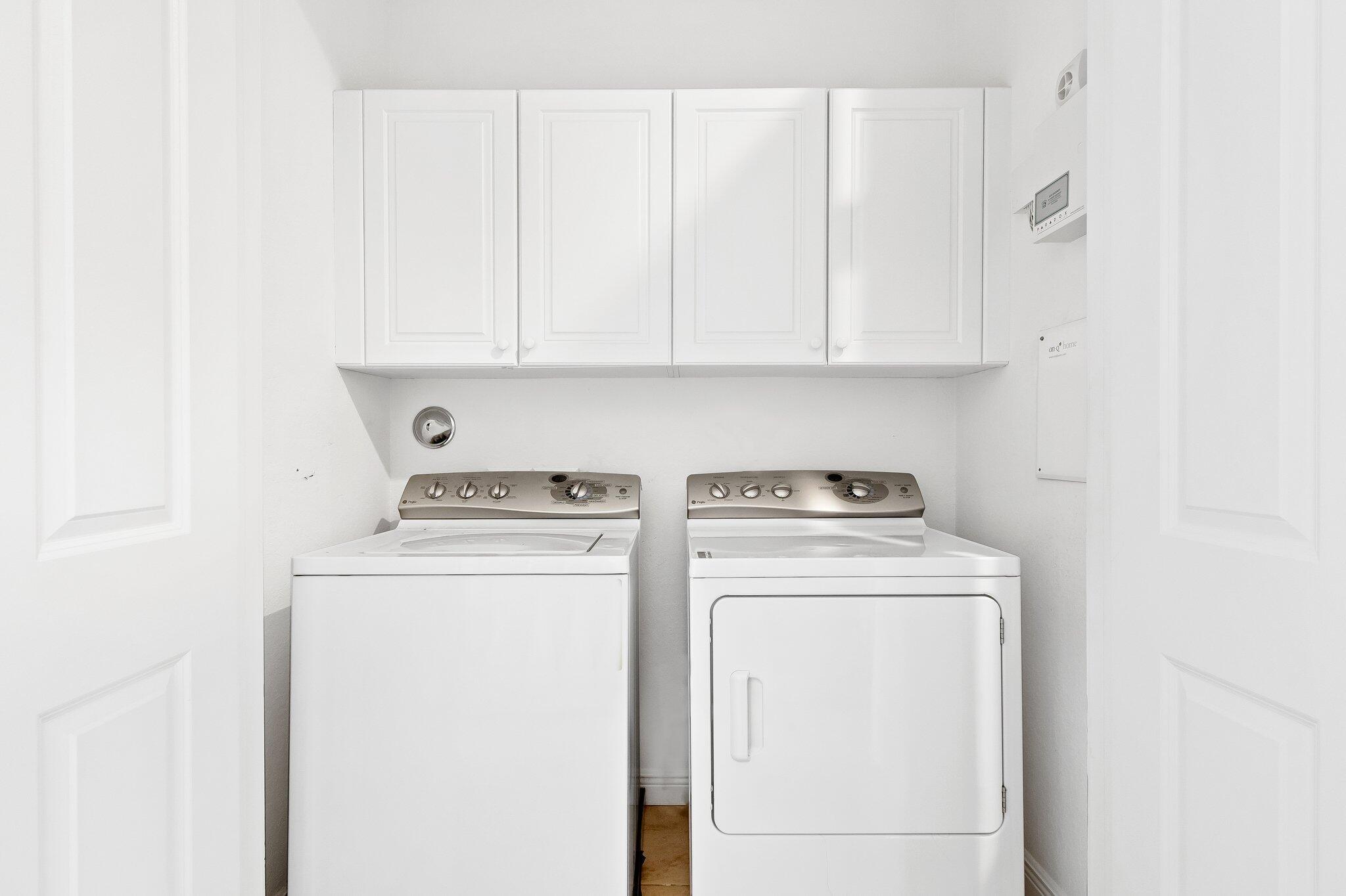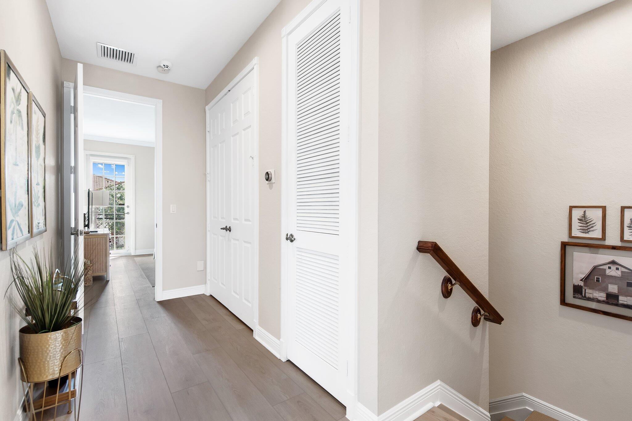 Don't miss this immaculate 2-bedroom, 2.5-bath townhouse with a 2-car garage in the desirable Central Park community. This popular floor plan features a large great room downstairs that flows into the dining room and kitchen, opening to an outdoor courtyard perfect for grilling. Upstairs, you'll find two bedrooms and two full bathrooms, including a master suite with an en-suite bathroom, a balcony for morning coffee, and an upstairs laundry. The home has new carpeting on the stairs and luxury vinyl floors upstairs, with neutral colors throughout, creating a serene atmosphere.The home also boasts newer appliances and fixtures, including a microwave, range, hot water heater, garage opener, and window treatments. The 2-car garage offers ample storage with extra overhead shelving.
