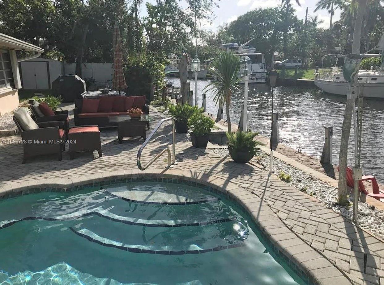 Home is modestly renovated to prepare it for lease, however, with a small investment, the home has huge potential. BIG home 3/2 w/ vaulted ceilings, lots of space, upgraded kitchen, gas stove + water heater, marble + wood floors. Master bedroom with walk-in closet, jetted tub. Plenty of space on back yard with saltwater pool and side yard, hurricane shutters. Over 85 ft of boat dock (no fixed bridges) for large boat, 2 houses away from New River. All freshly painted, new laminate in entire house, house is clean and ready for a new owner. Ideally located in quiet neighborhood, but close to downtown, Las Olas and the beach. A MUST SEE