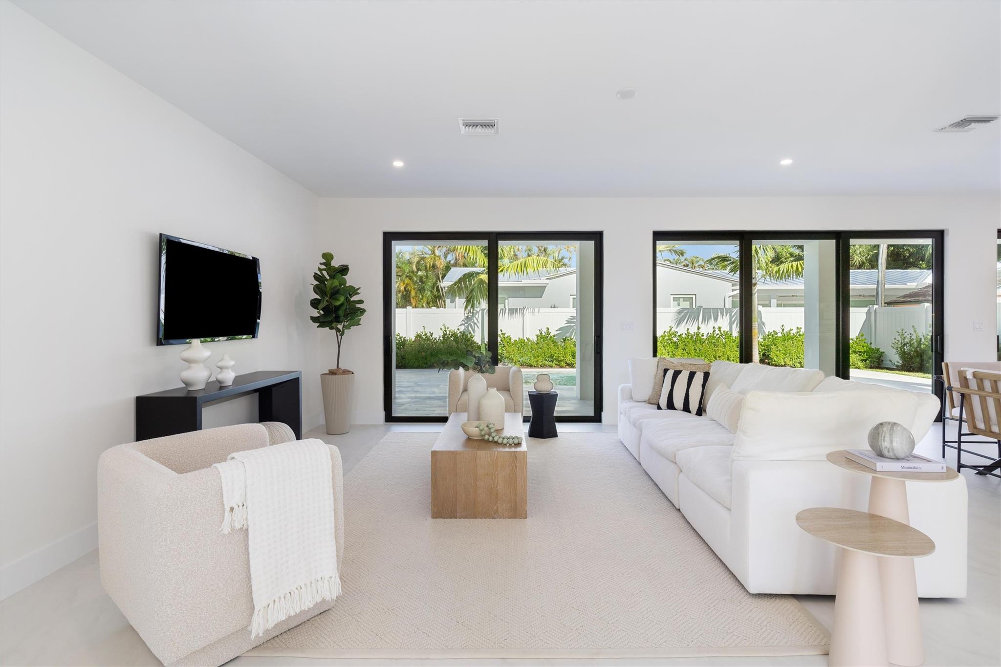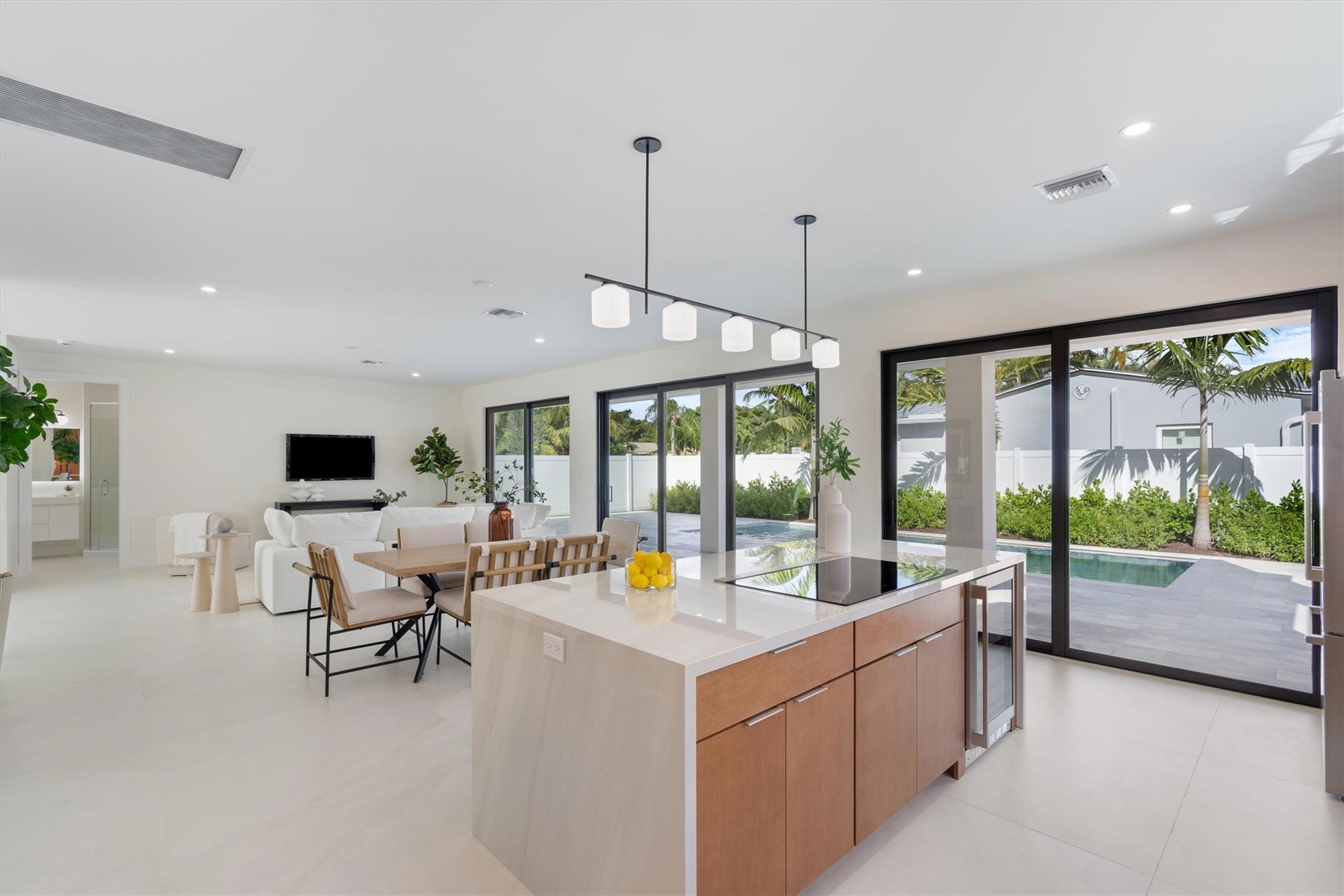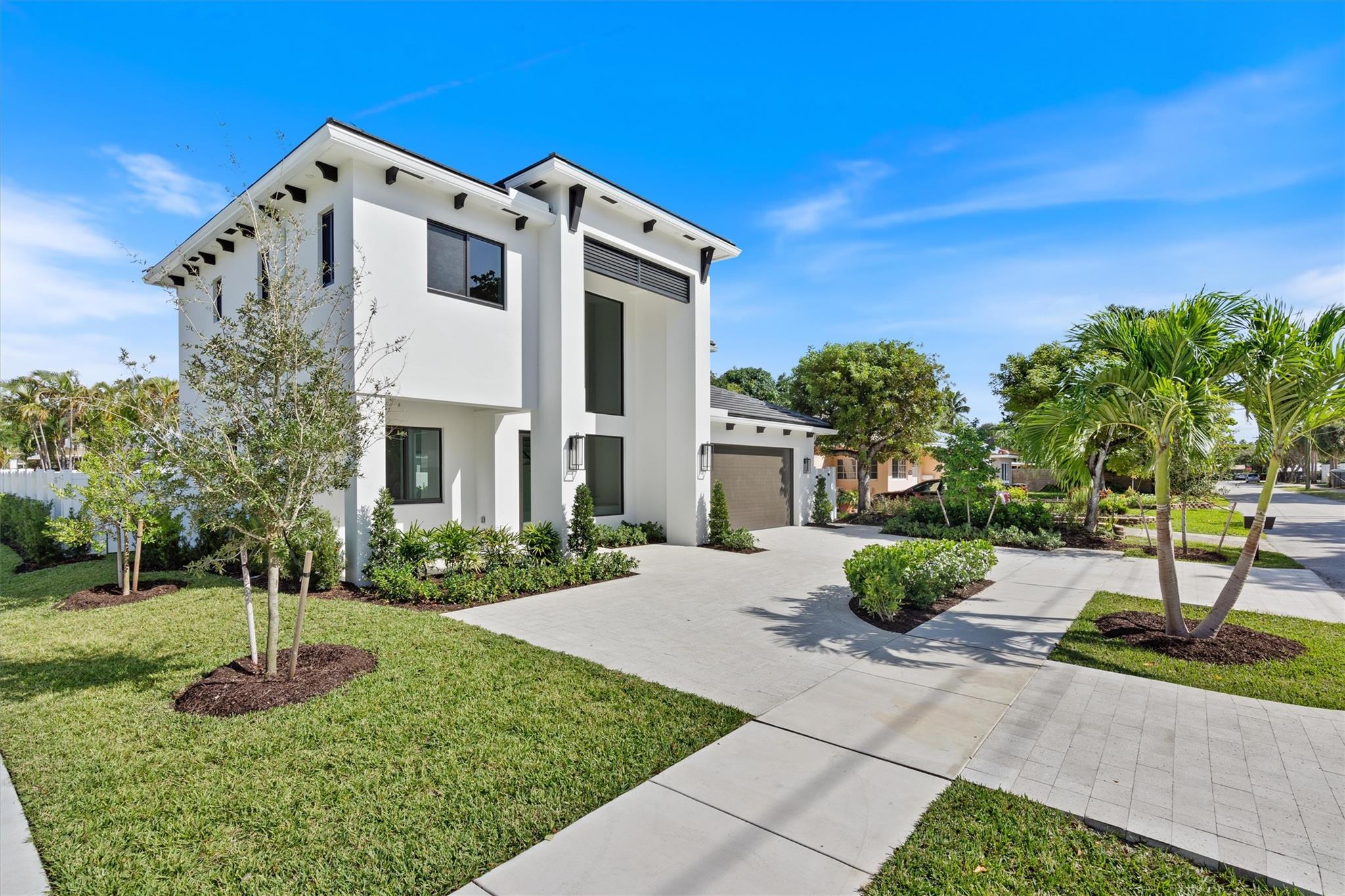NEW CONSTRUCTION 2-story masterpiece in E. Ft. Lauderdale! The grand foyer welcomes you with voluminous windows and 20-ft ceiling, filling the home with natural light. Open-concept floor plan designed for effortless entertaining. Gourmet kitchen featuring a large center island and premium appliances. Walls of sliding doors seamlessly connect the main floor to the expansive covered patio and pool area - perfect for indoor-outdoor living. The upstairs primary suite offers a large balcony, luxurious bathroom, and generous walk-in wardrobe. Two additional ensuite bedrooms and a laundry room complete the upper level—a versatile 4th bedroom on main floor is ideal for a home office or guest bedroom. 2-car garage pre-wired for EV charging. Minutes away from beaches, markets, shopping and dining