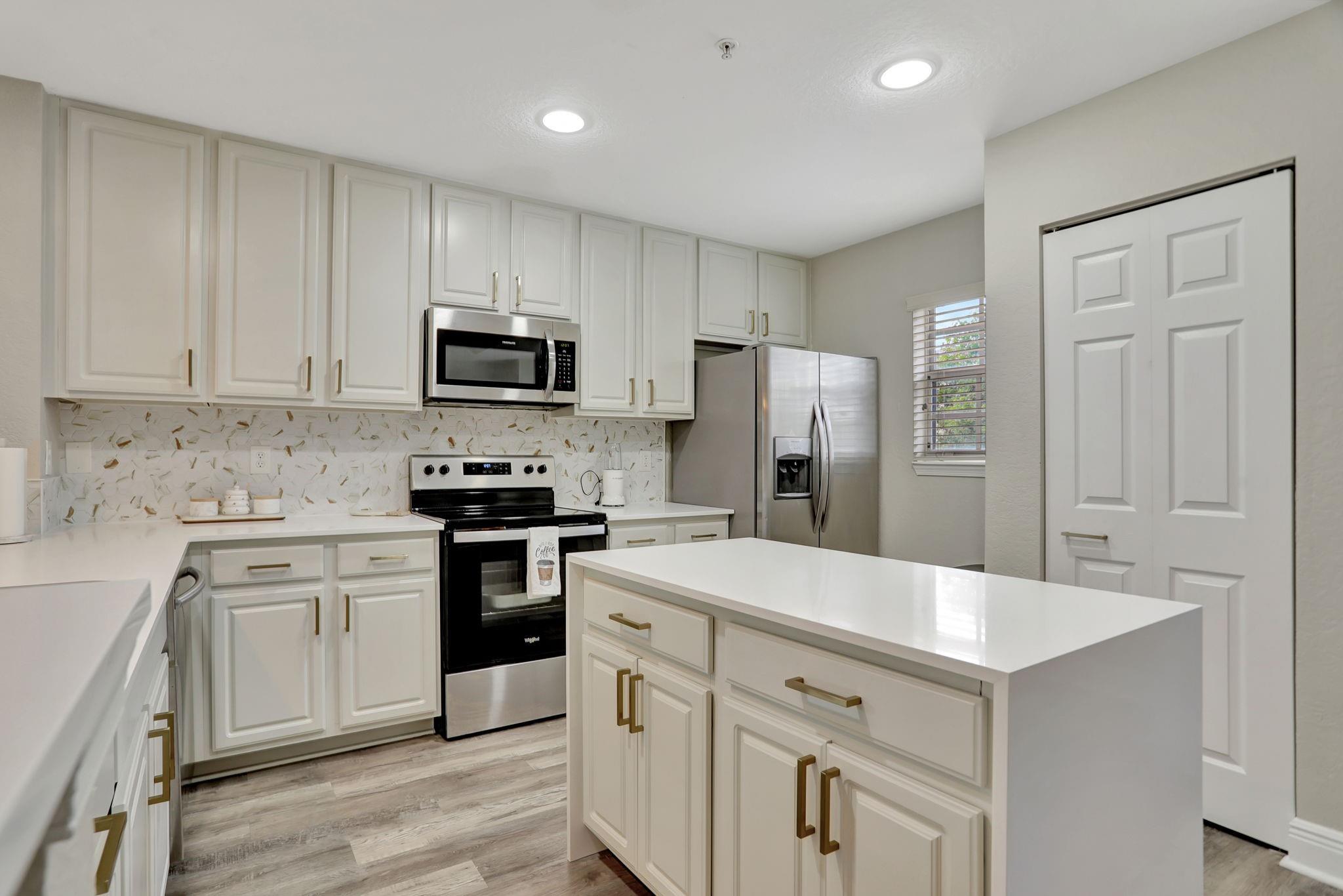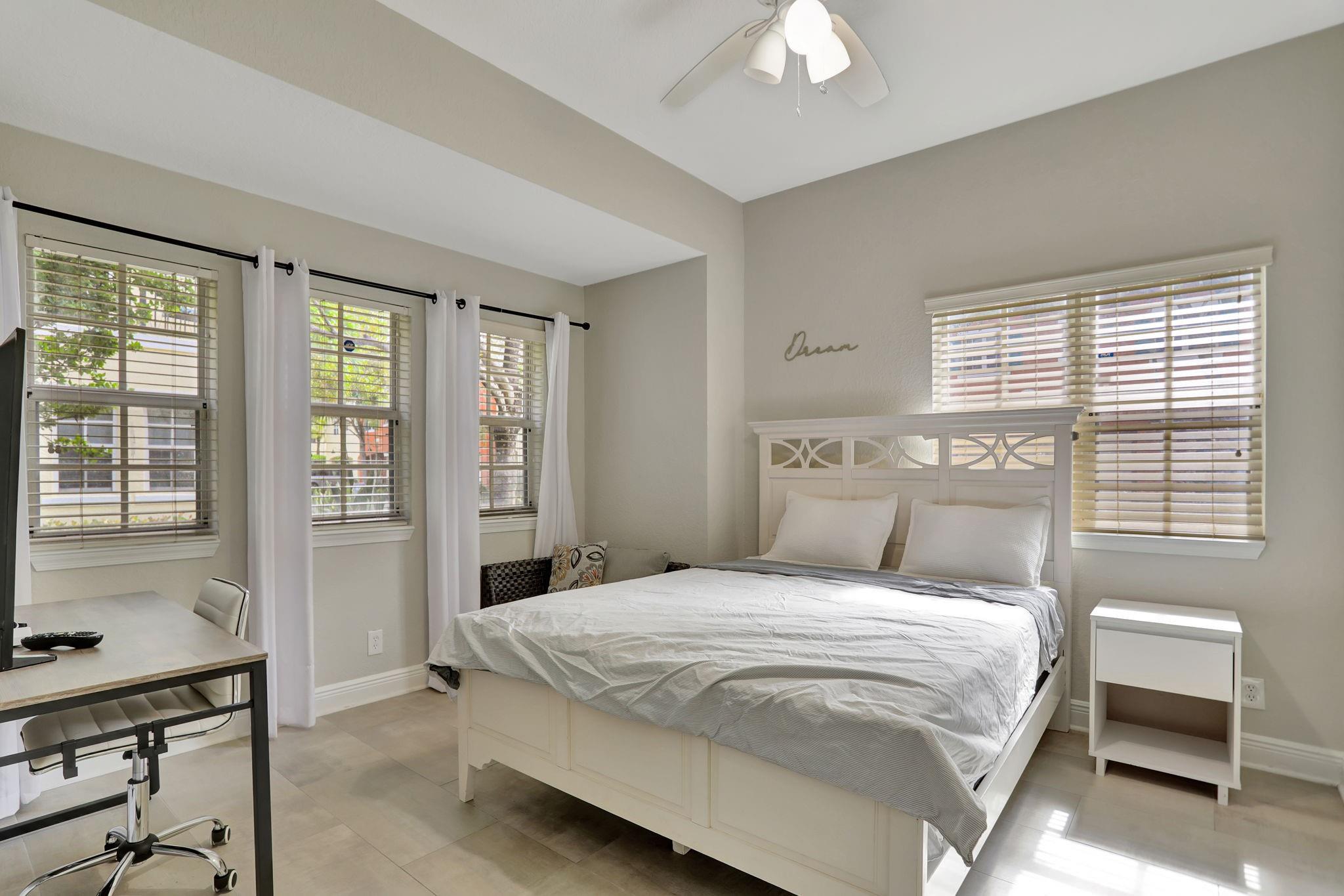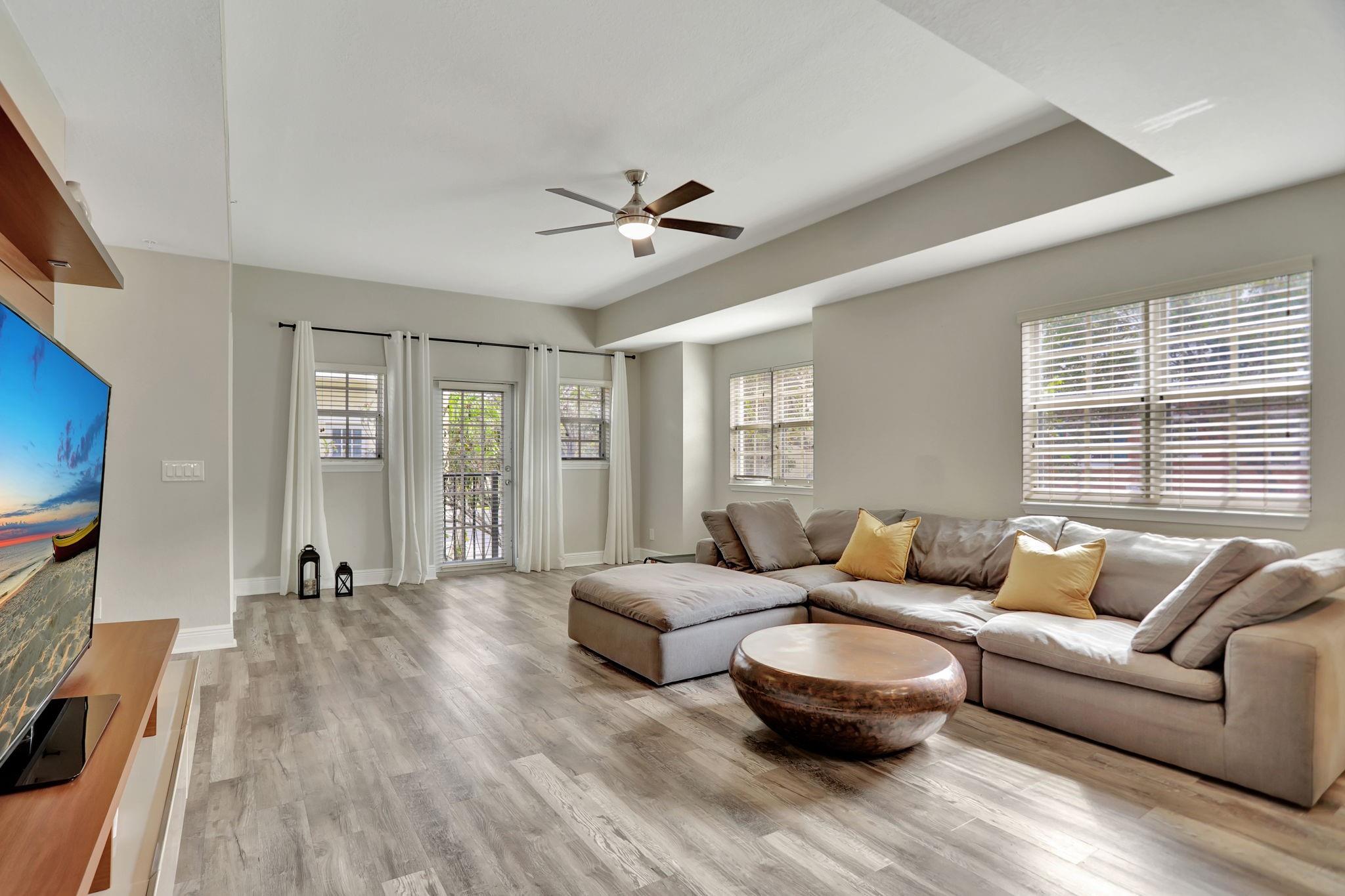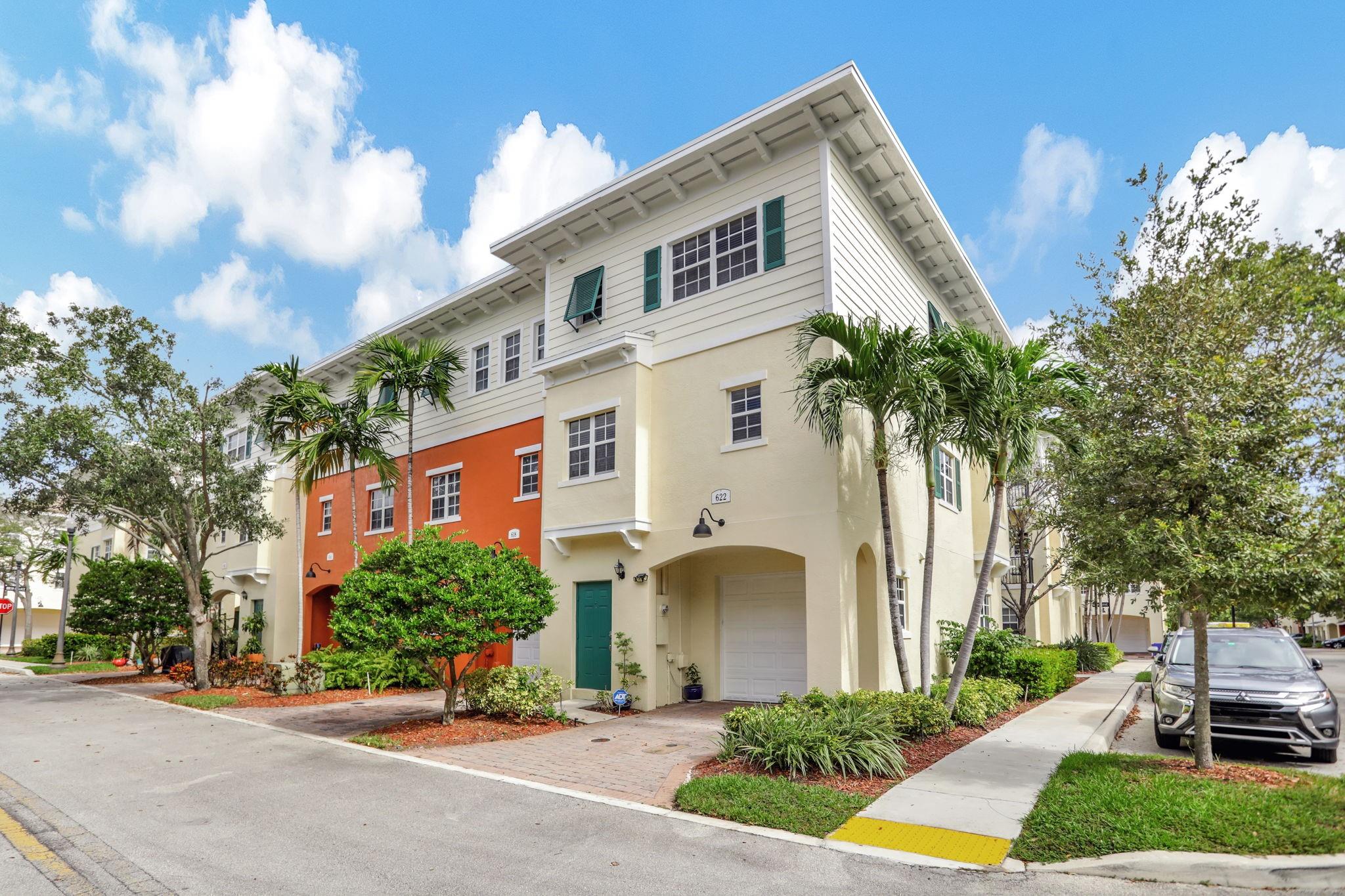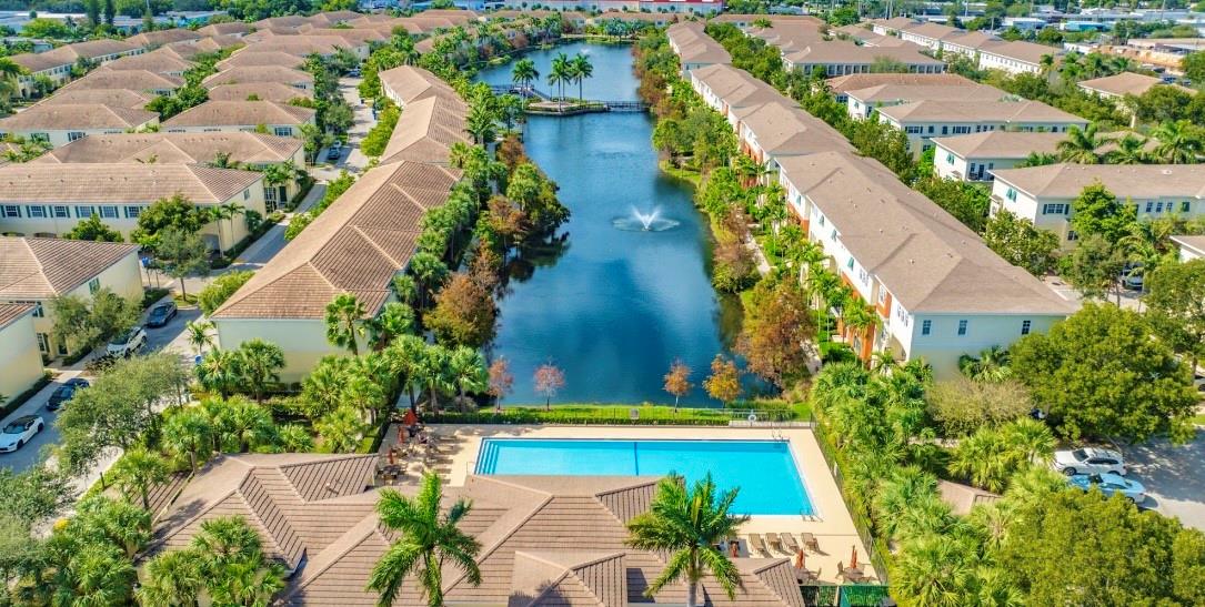 Move in ready 3 story CORNER townhouse. No assessments, HOA has great reserves! Home boasts an elegant kitchen with quartz counters, spacious rooms with ample closets, tile/LVP floors, high ceilings and lots of windows allowing natural light. Garage with added storage. Home equipped with sprinkler/alarm systems. Low HOA fee includes cable, fiber internet, landscaping, use of clubhouse, oversized pool overlooking stunning lake, fitness center. Pet friendly/Investor friendly. Owner can live upstairs rent downstairs. Community sits across a park with tennis courts and soon to be pickleball courts, a yoga studio, a preschool and lots of restaurants and Publix a short walk away. Short drive to beach. Your dream home awaits!