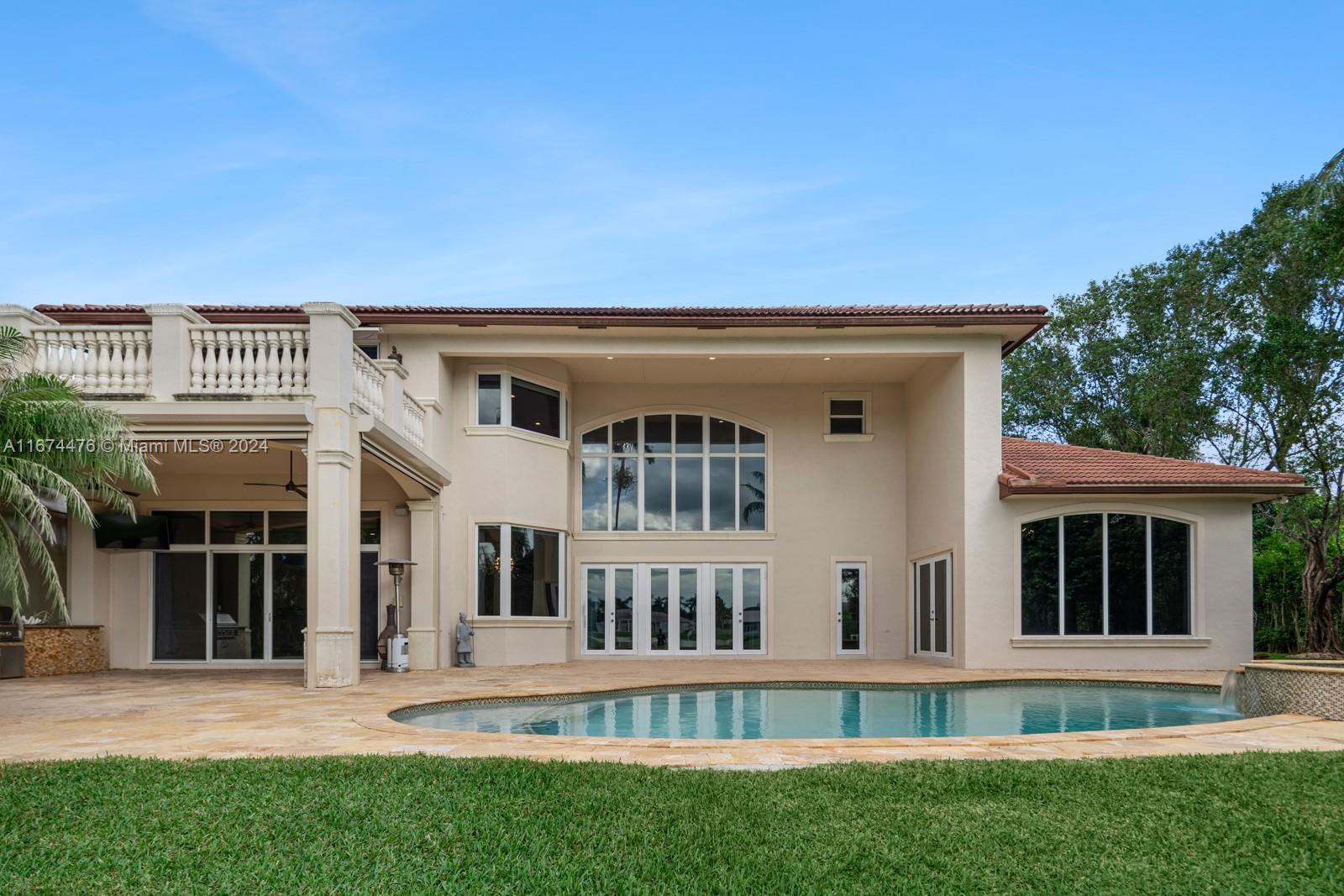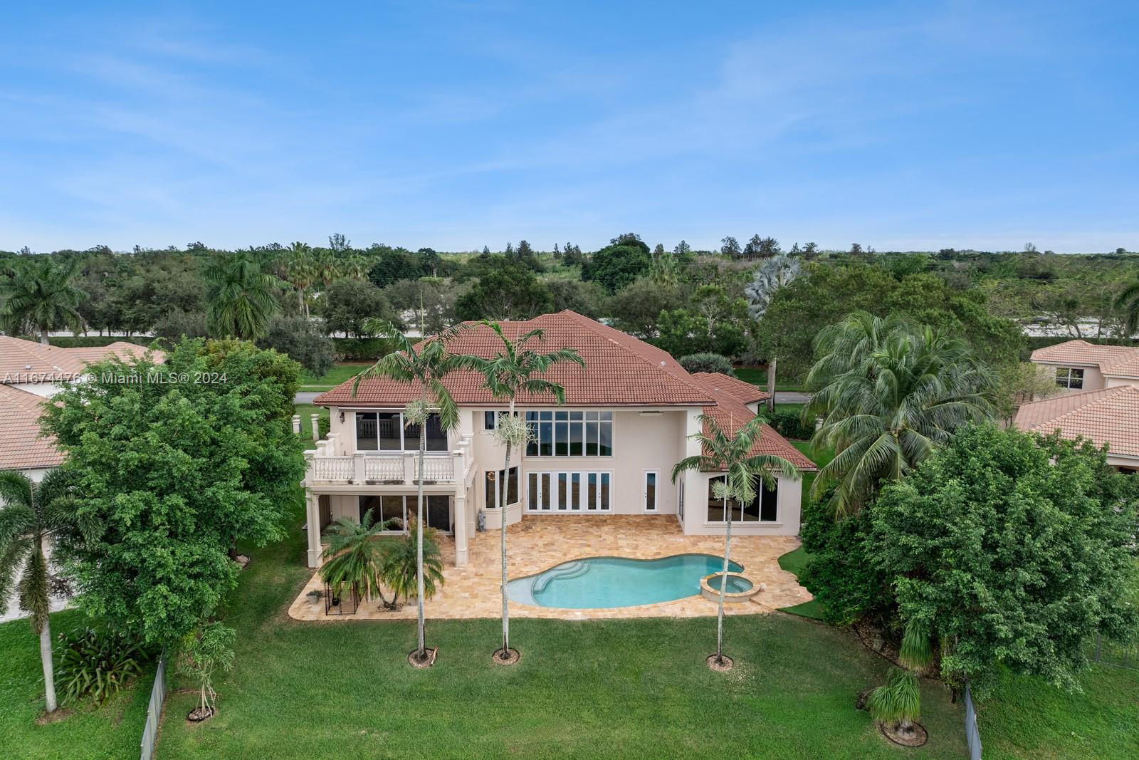 Stunning Custom Wellington model waterfront home in the prestigious, gated Stonebrook Estates community in Davie, Florida. This expansive residence offers 5 spacious bedrooms, 6 bathrooms, updated kitchen w/ butlers pantry & formal dining. The impressive double-height ceilings with panoramic lake views creates an open, inviting, elegant atmosphere. Featuring marble floors on the main level, custom wrought-iron railings, and rich wood floors upstairs, this well-maintained home also features a custom library/office plus a family media room with wet bar. The remodeled pool area with a hot tub & marble pavers offers a private, resort-like escape. The community offers tennis courts, pickleball, beach volleyball, clubhouse, playground, and 24-hour manned security. Truly pristine luxury living!