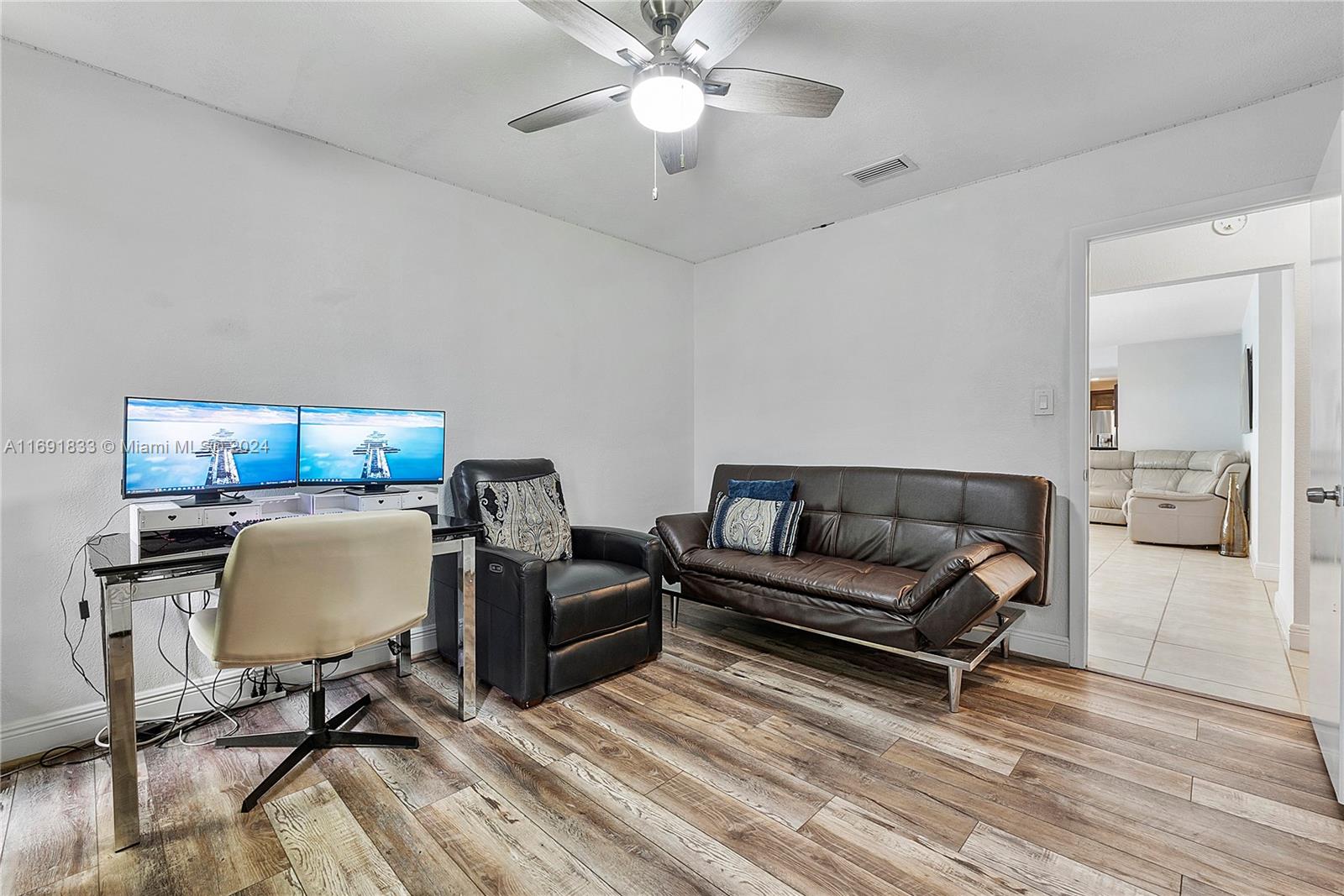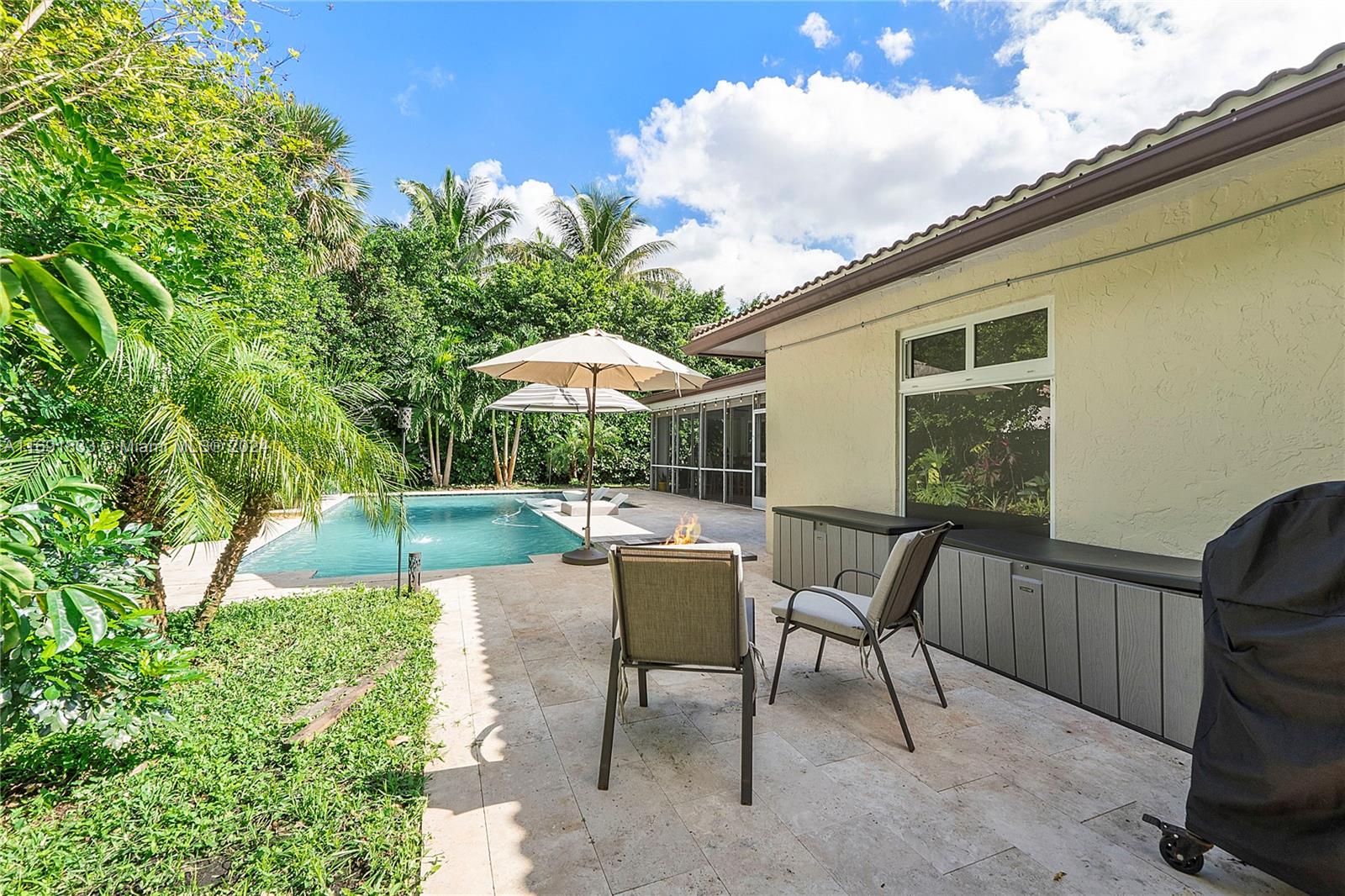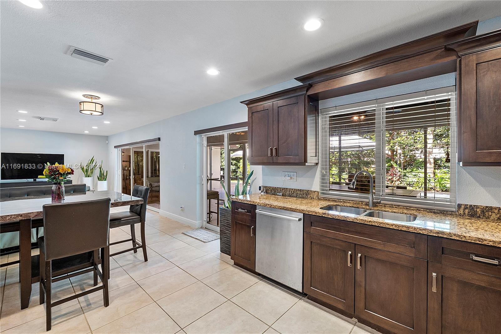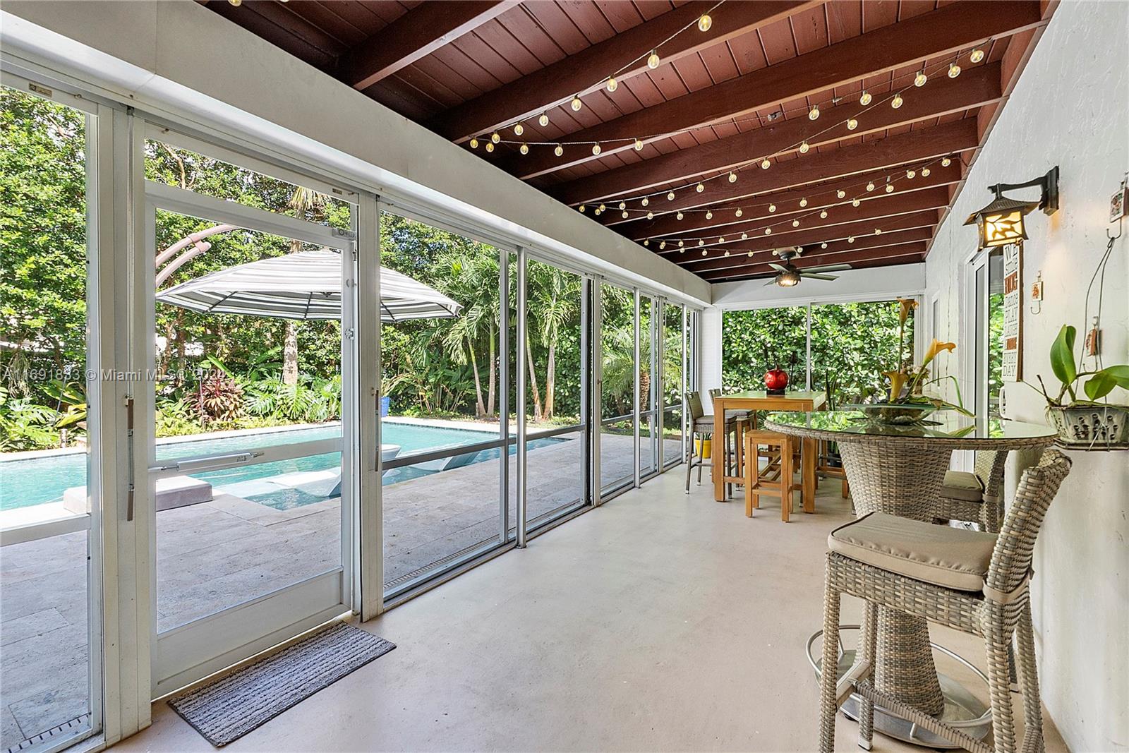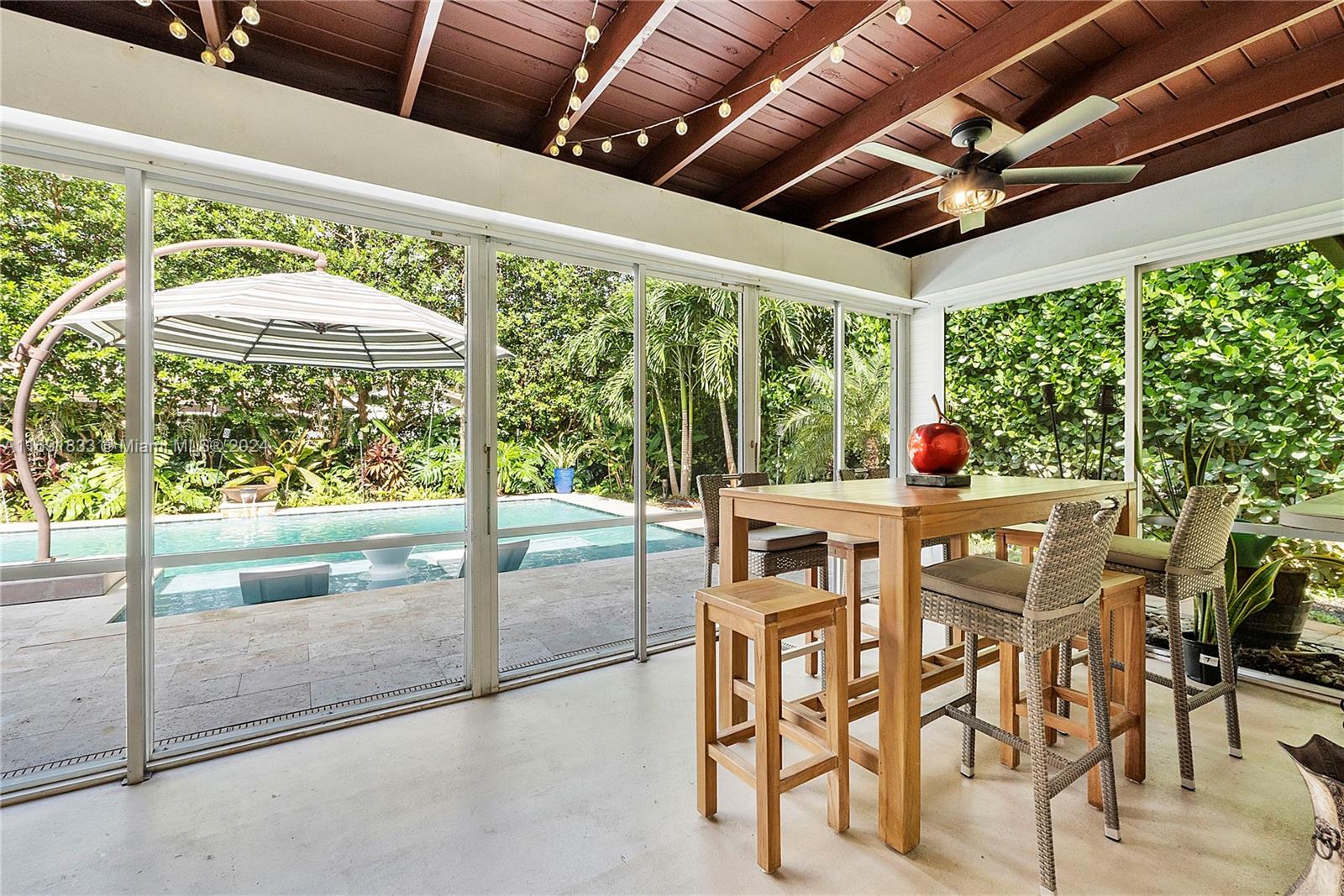 Beautiful 3 Bed 2 Bath Home + Den/In-Law Area W/ Pool & 2 Car Garage Located In The Heart Of Coral Springs. NO HOA! Impact Windows, Doors & Garage. This Home Features A Newer Roof (2013), Newer AC (2017), Newer Tankless Water Heater (2021), Updated Electrical Panel & Vaulted Ceilings. Large Open Kitchen W/ Wood Cabinets, Granite Countertops, SS Appliances, Recessed Lighting, & Pantry. Tile In Common Areas and Laminate Wood In Bedrooms. Primary Suite W/ Large Walk-In Closet & Remote Ceiling Fan. En-Suite Bathroom Cabana Bath, Large Shower, And Wood Vanity. 2 Other Bedrooms Have Walk-In Closets & Ceiling Fans. 4th Bedroom Is Separate Den/Dining and Living Area With Barn Door. Tropical Oasis Fenced Yard W/ Pool, Travertine Pavers, Sun Shelf, Smart Pool System, Screened Patio & Fruit Trees.