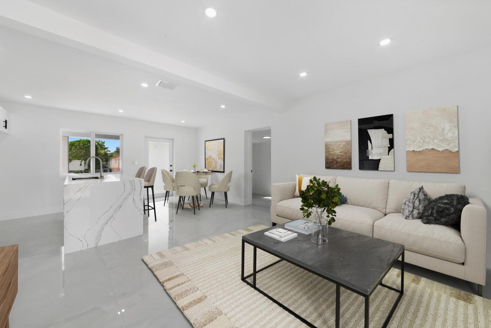 This fully updated home features an open floor plan with neutral flooring, high-hat lighting, and newly painted walls that create a bright and welcoming atmosphere. The dream kitchen is designed to impress, showcasing modern white cabinets, neutral countertops, a stylish backsplash, and a snack bar ideal for casual dining or entertaining. The bathrooms offer luxurious walk-in showers and sleek, contemporary finishes. Outside, the large, oversized yard provides endless opportunities for outdoor living, gardening, or creating your personal oasis. Located in a sought-after non-HOA community, this home blends modern design with the freedom to make it your own. Don't let this opportunity pass you by!