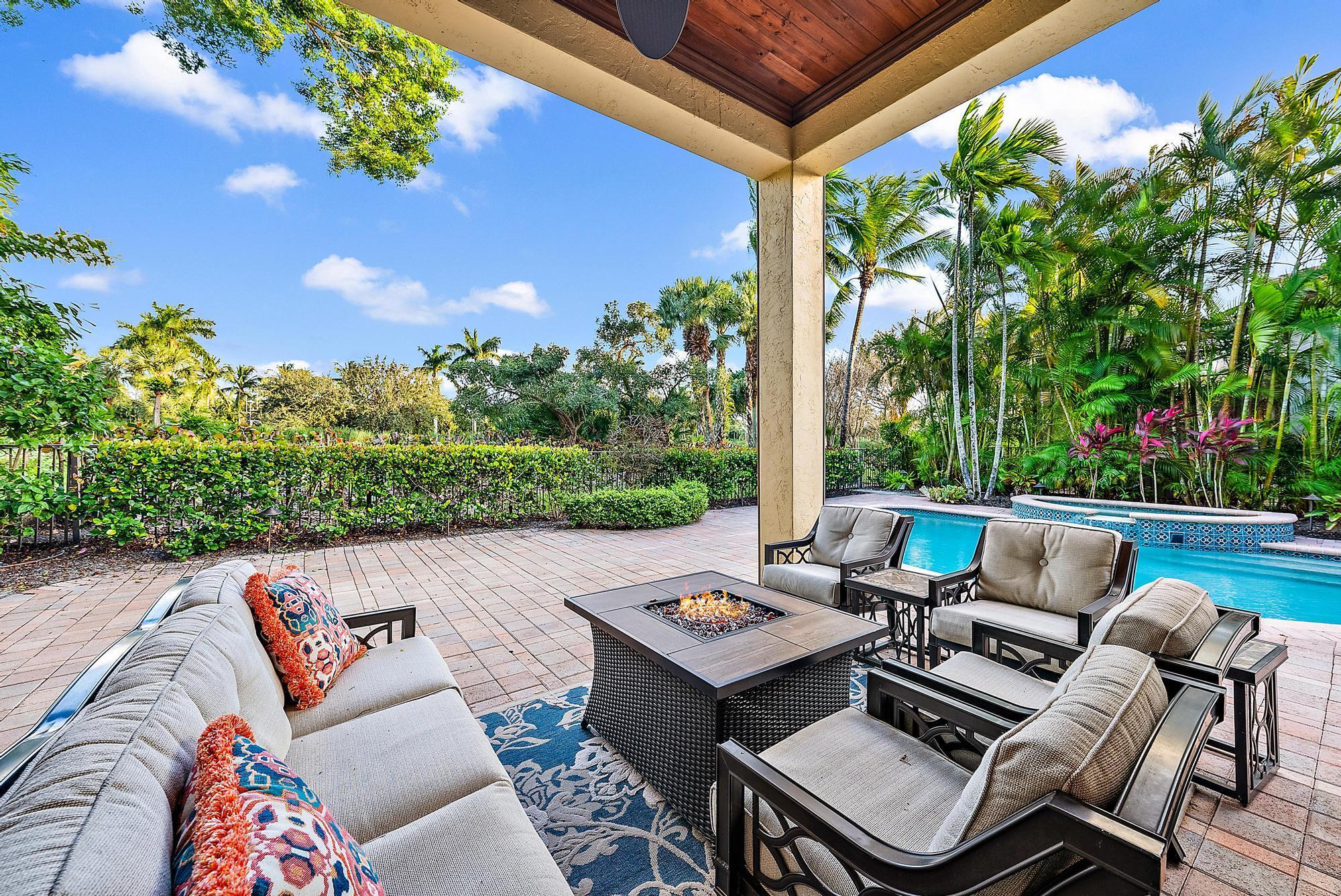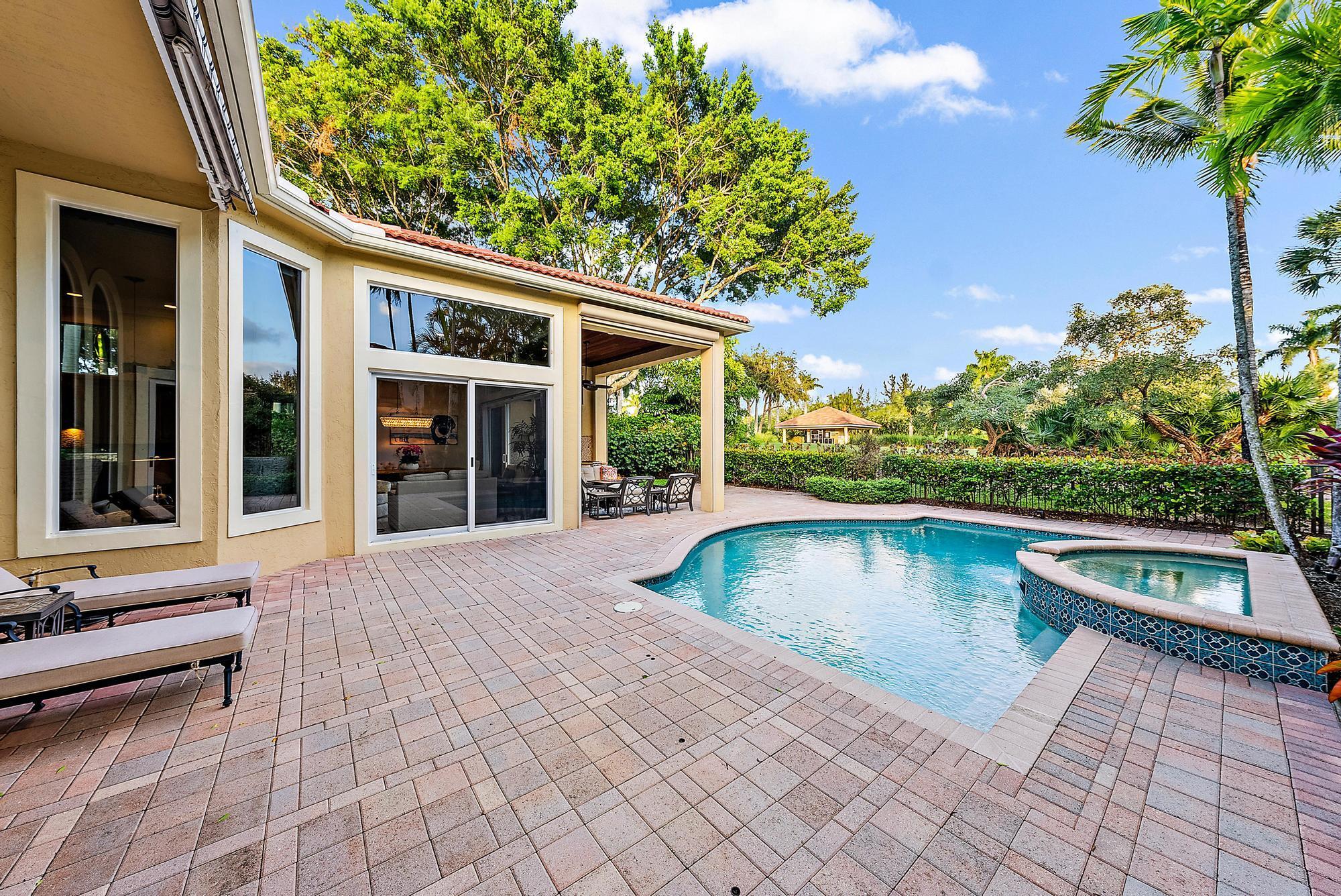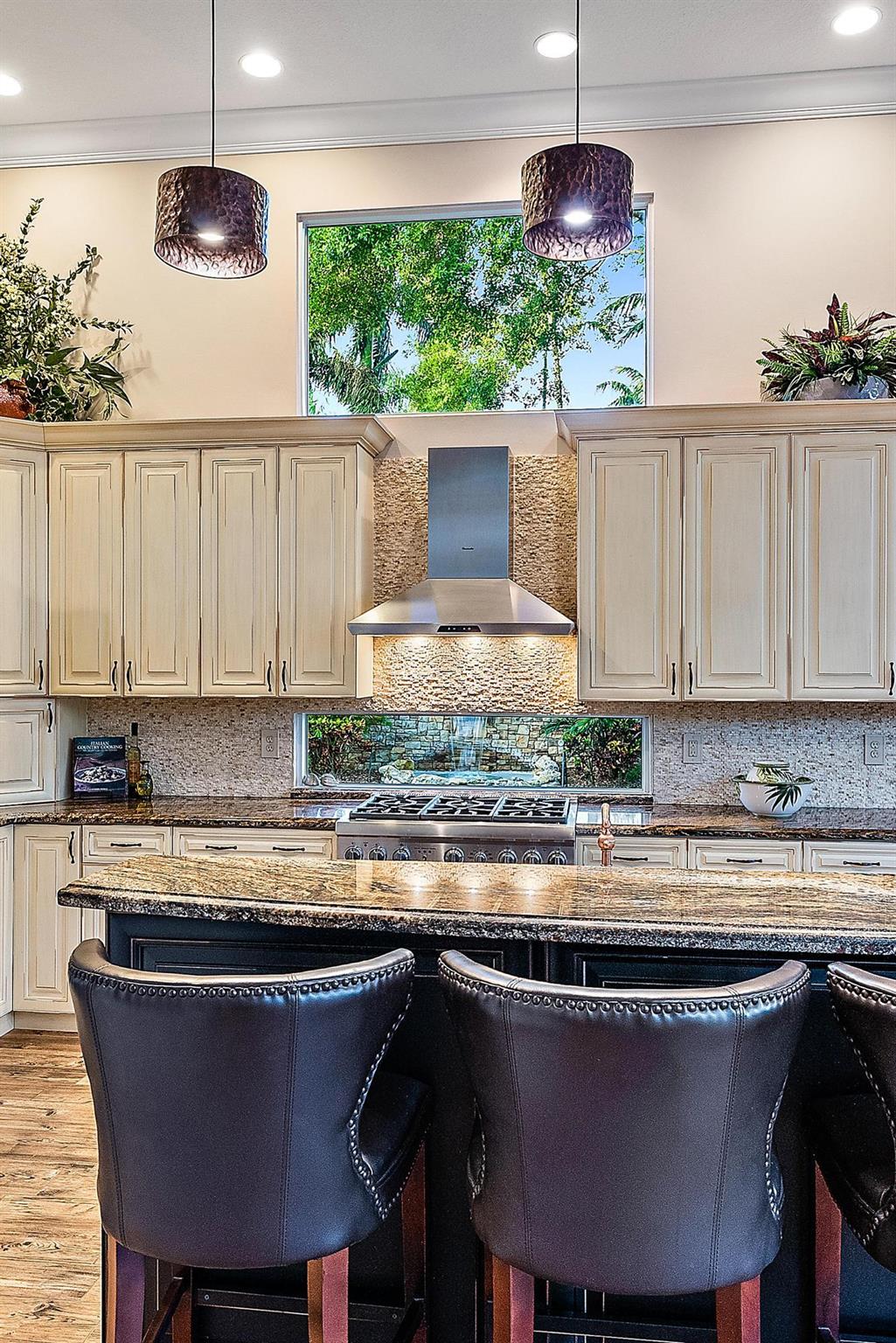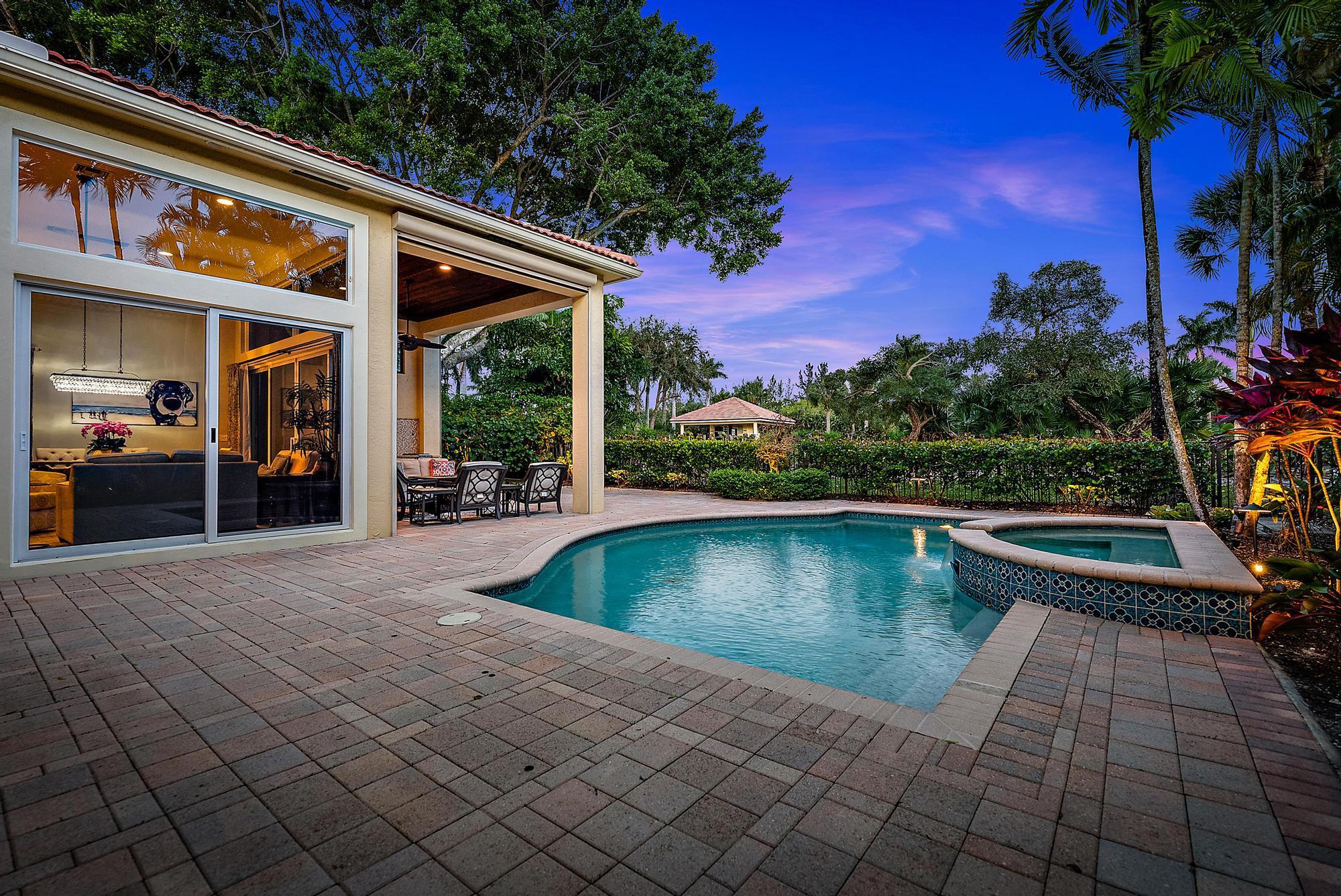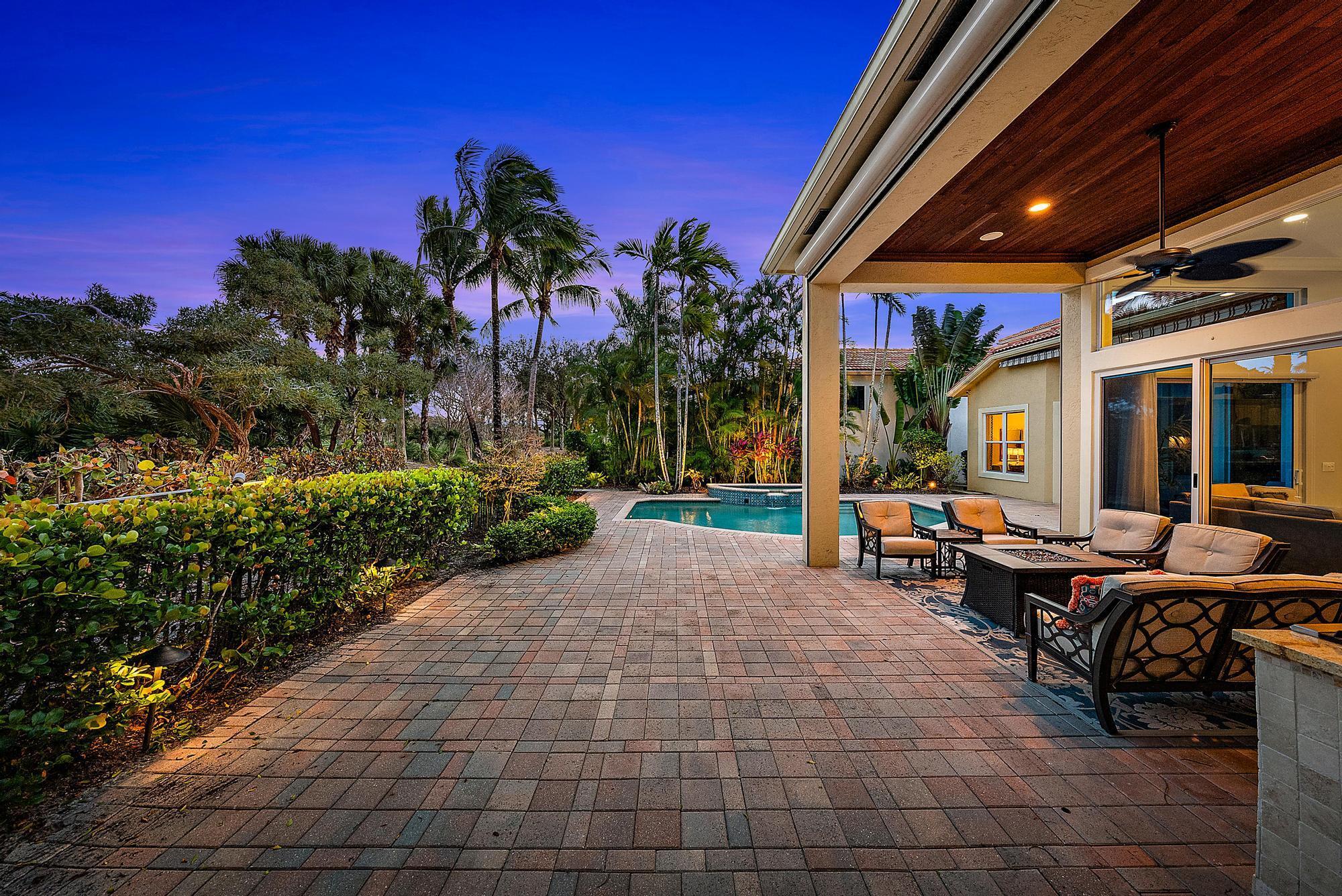 Featuring one of the largest lots in Tradition Cove, this one-of-a-kind, FULLY RENOVATED home offers incredible upgrades, luxurious finishes and fixtures. Everything has been done for you. The NEW ROOF was installed in 2023, along with all new IMPACT GLASS throughout, installed in 2023 as well. The magnificent .34-ACRE LOT offers an enormous fenced in side yard and a tranquil stone waterfall that provides a unique focal point from inside the home. The interior has been fully reimagined and beautifully renovated in a warm transitional aesthetic. Featuring Italian porcelain wood-look tile flooring throughout, there is no carpet in this home. Available FULLY FURNISHED with designer curated furnishings.