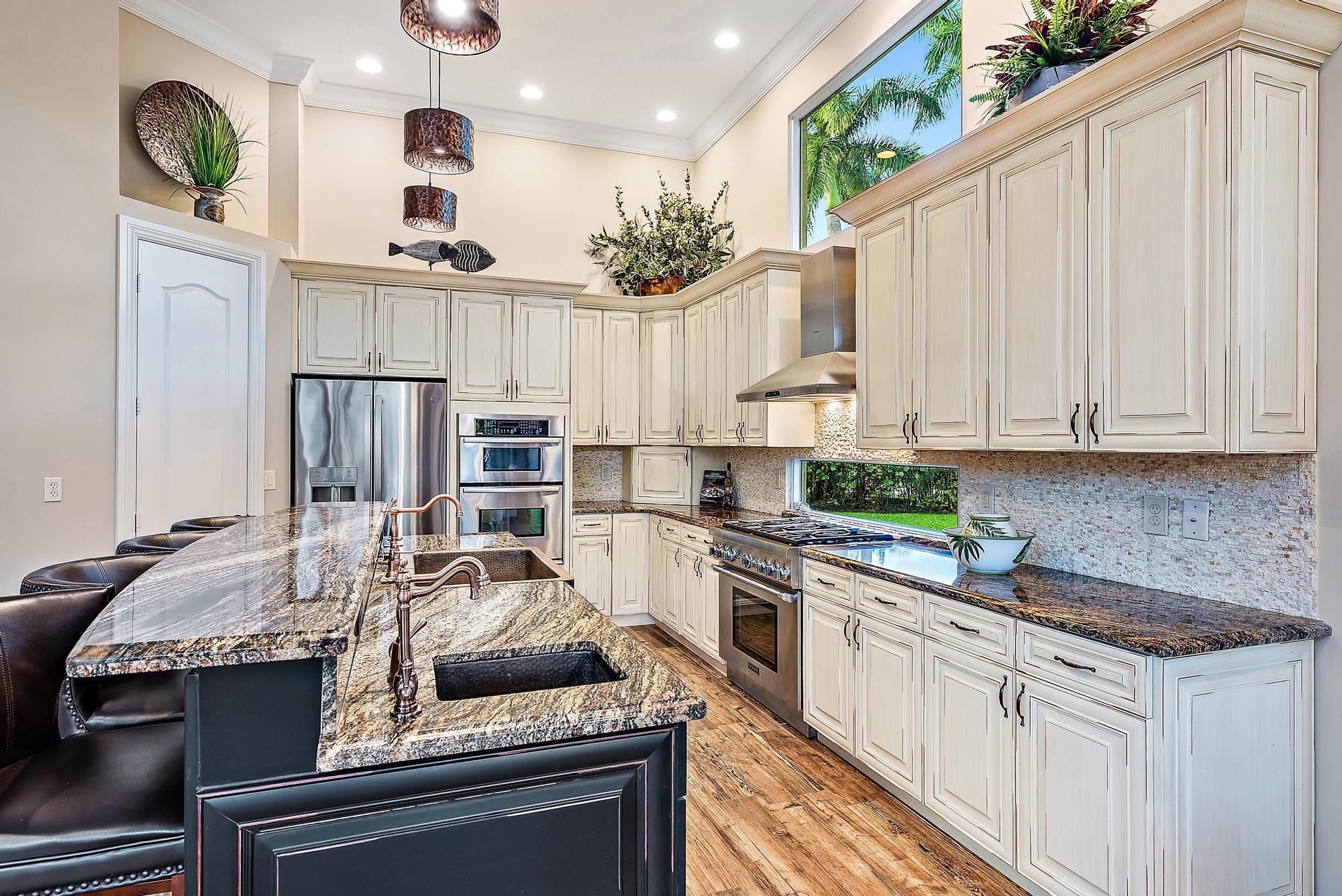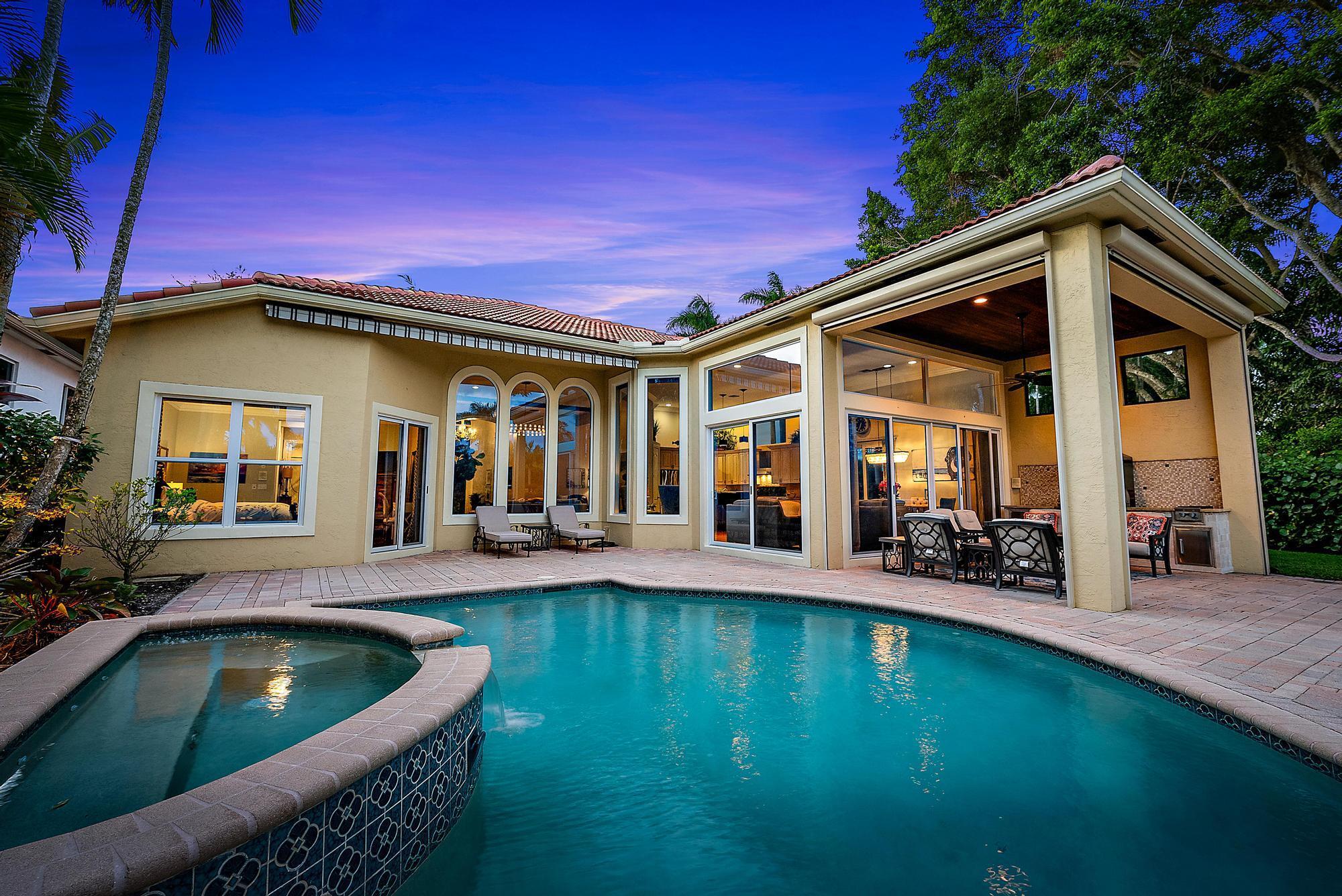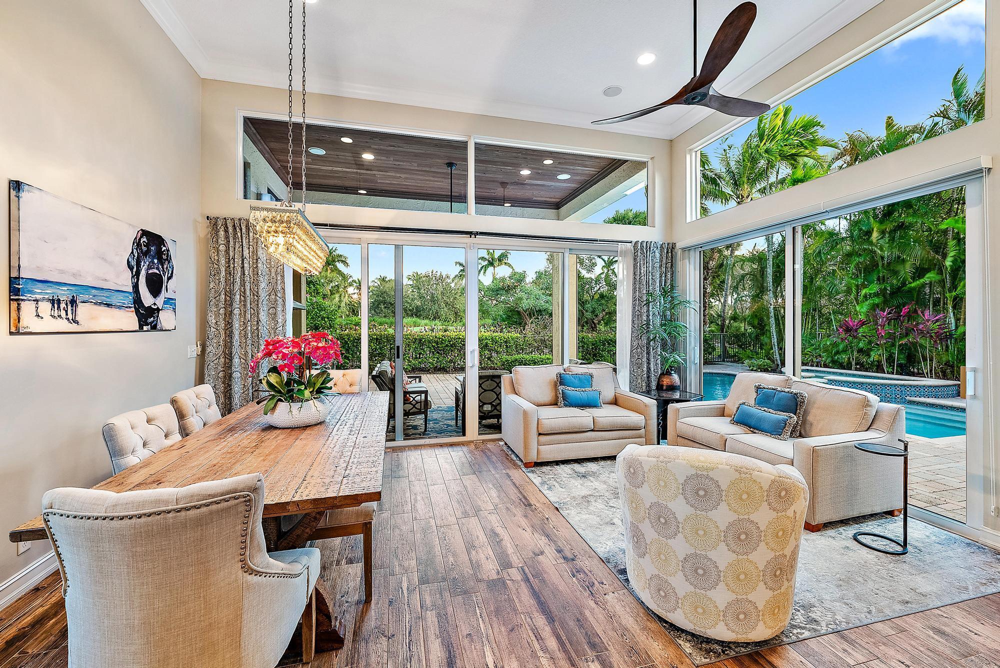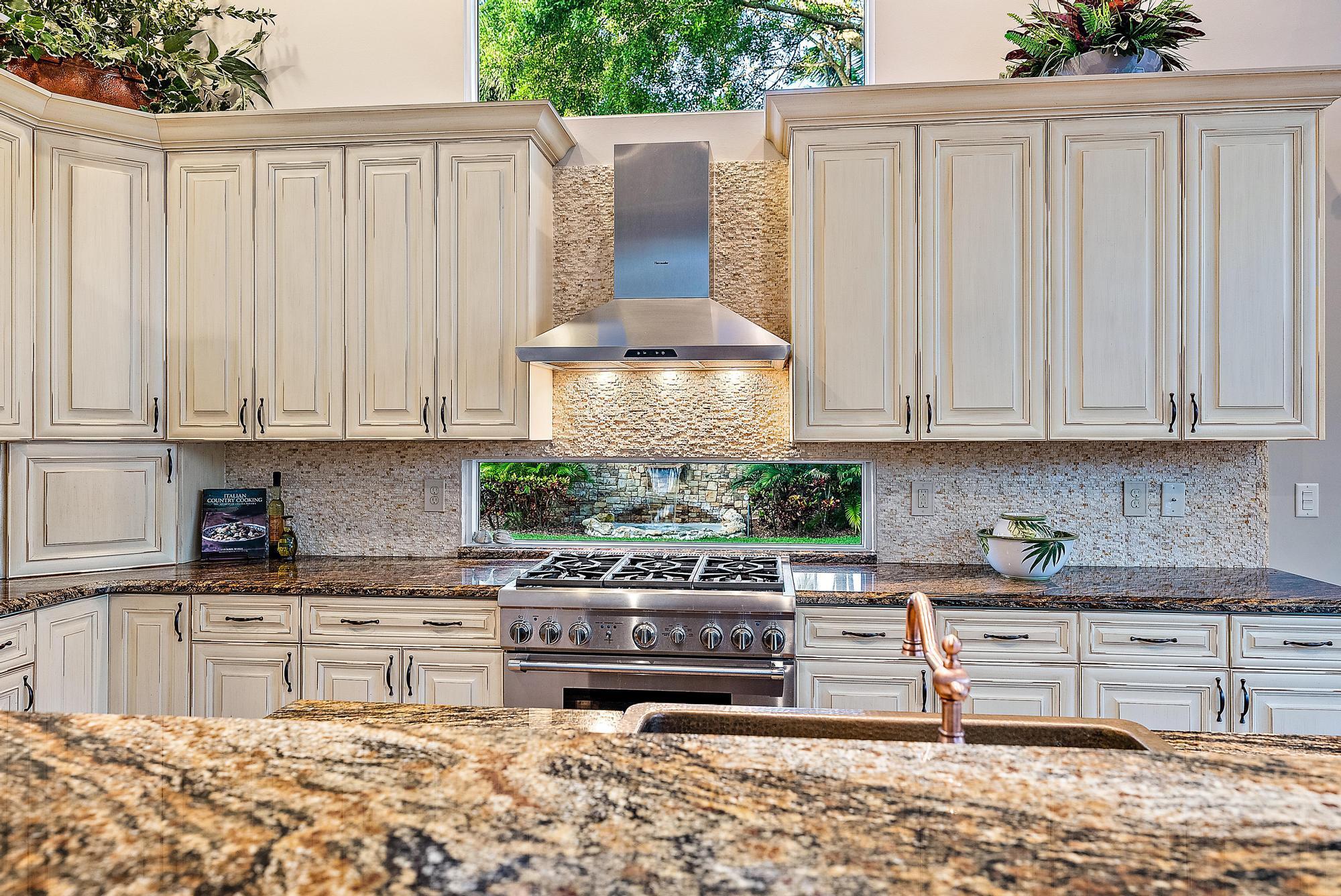 Featuring one of the largest lots in Tradition Cove, this one-of-a-kind, FULLY RENOVATED home offers incredible upgrades, luxurious finishes and fixtures. Everything has been done for you. The NEW ROOF was installed in 2023, along with all new IMPACT GLASS throughout, installed in 2023 as well. The magnificent .34-ACRE LOT offers an enormous fenced in side yard and a tranquil stone waterfall that provides a unique focal point from inside the home. The interior has been fully reimagined and beautifully renovated in a warm transitional aesthetic. Featuring Italian porcelain wood-look tile flooring throughout, there is no carpet in this home. Available FULLY FURNISHED with designer curated furnishings.