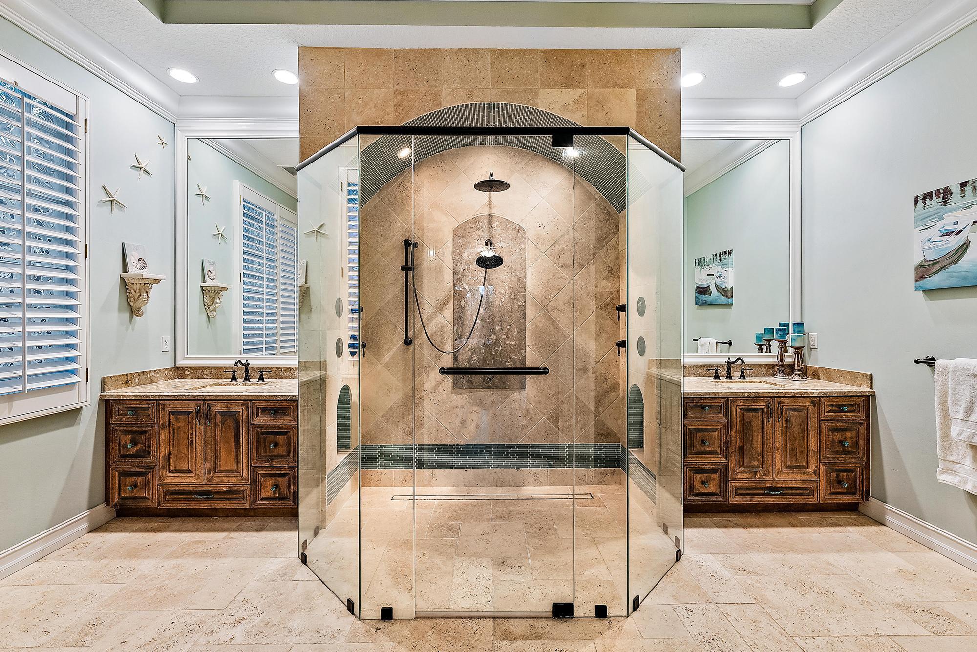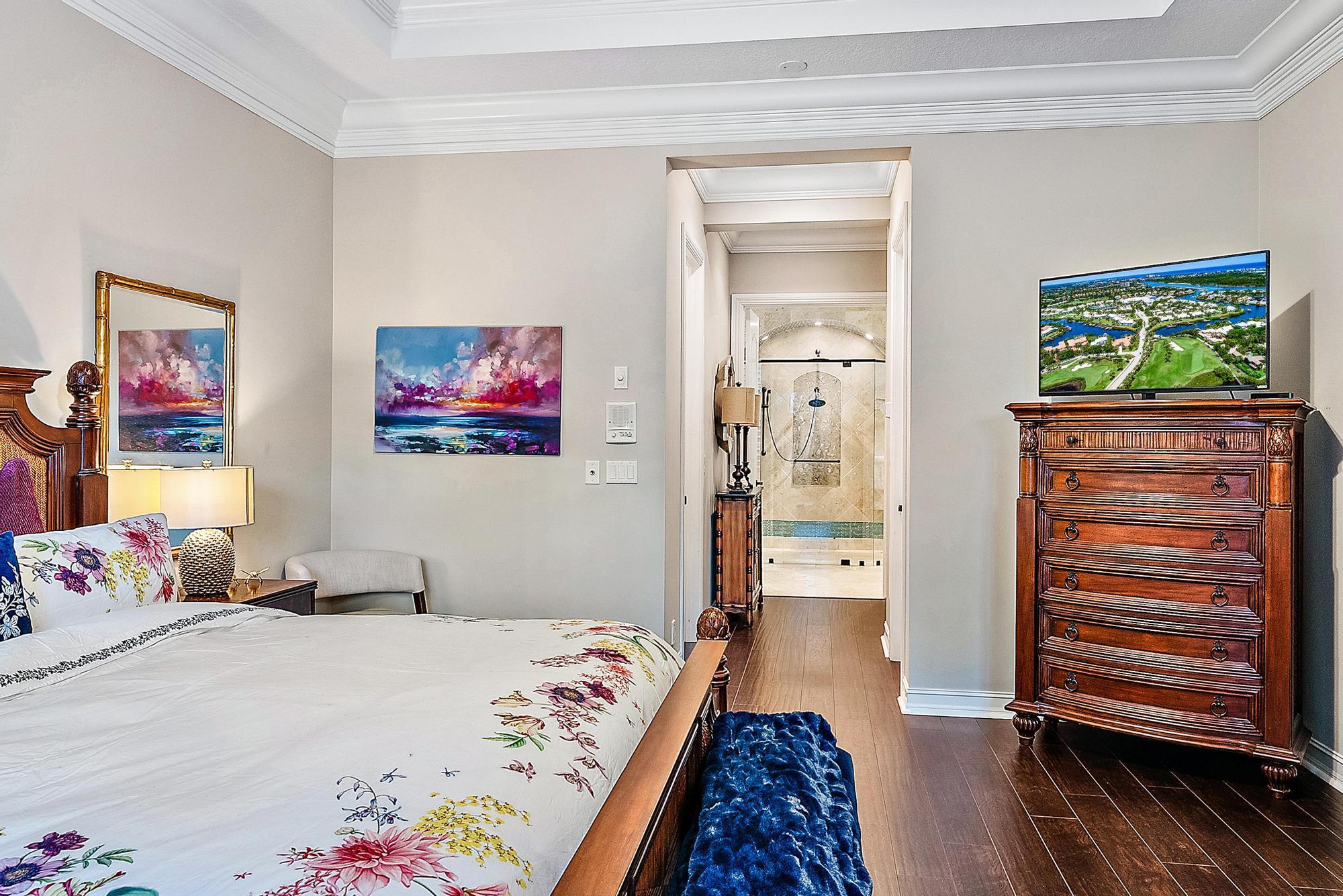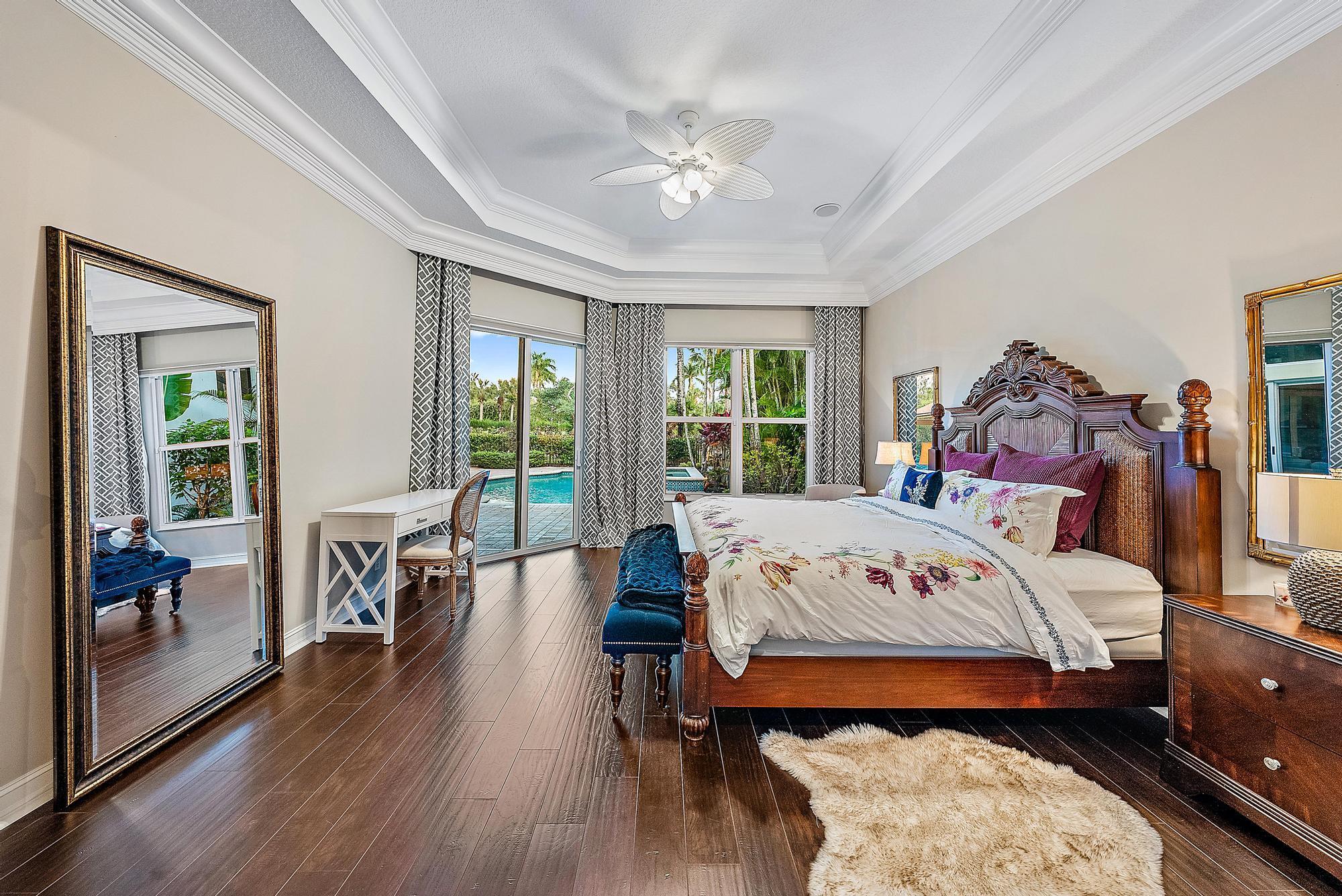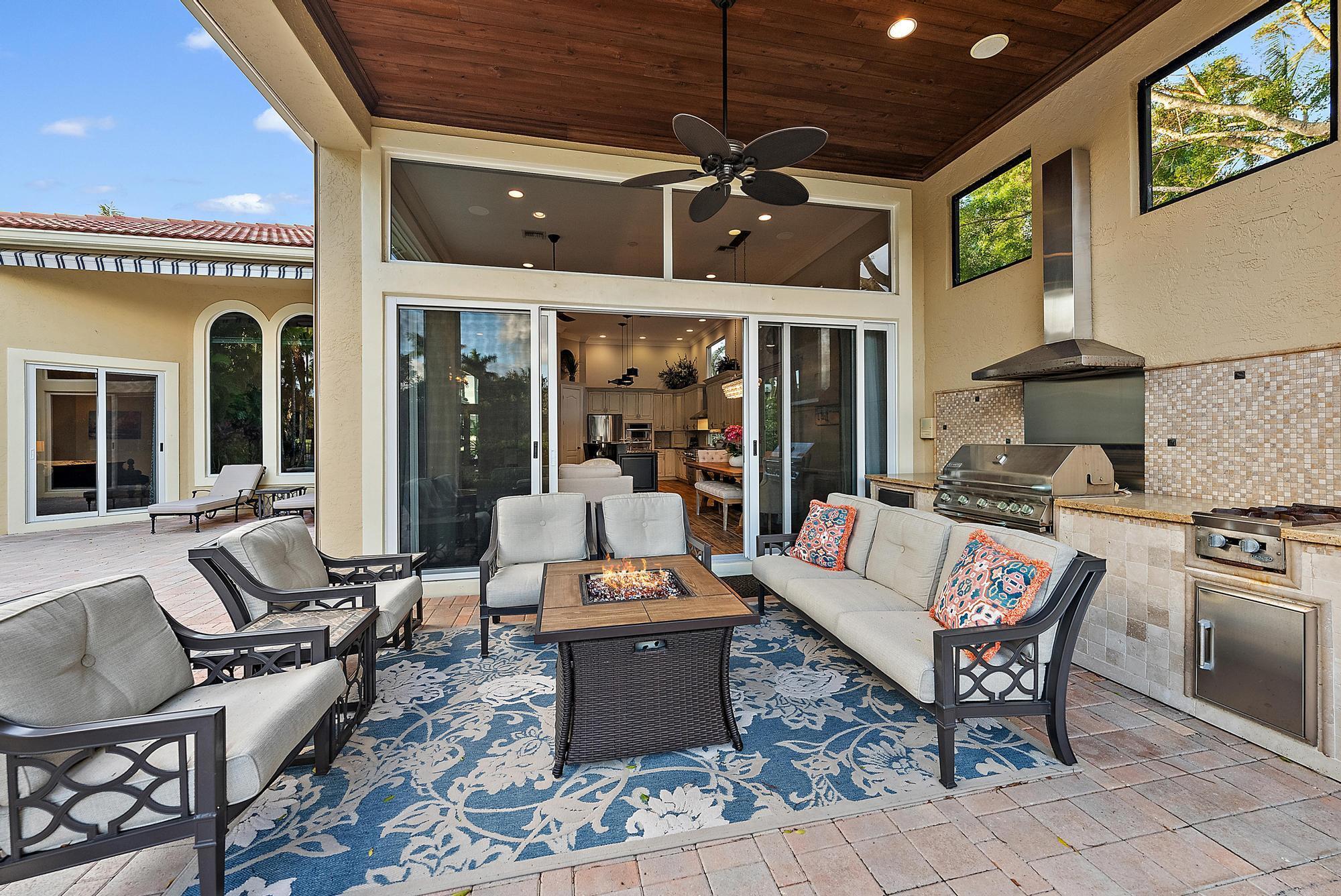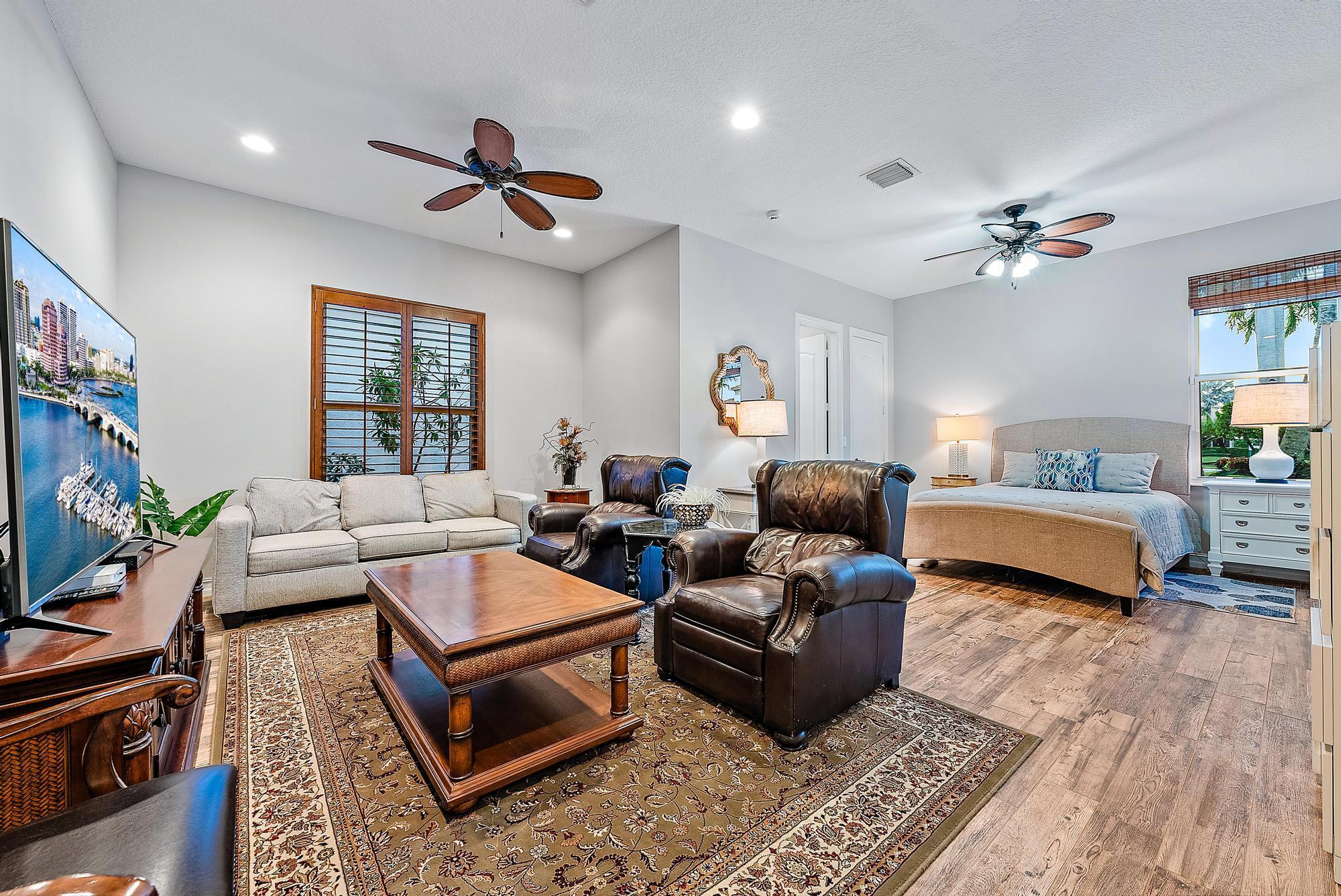 Featuring one of the largest lots in Tradition Cove, this one-of-a-kind, FULLY RENOVATED home offers incredible upgrades, luxurious finishes and fixtures. Everything has been done for you. The NEW ROOF was installed in 2023, along with all new IMPACT GLASS throughout, installed in 2023 as well. The magnificent .34-ACRE LOT offers an enormous fenced in side yard and a tranquil stone waterfall that provides a unique focal point from inside the home. The interior has been fully reimagined and beautifully renovated in a warm transitional aesthetic. Featuring Italian porcelain wood-look tile flooring throughout, there is no carpet in this home. Available FULLY FURNISHED with designer curated furnishings.