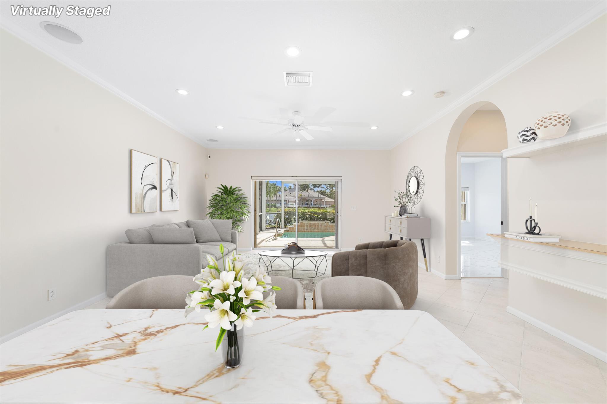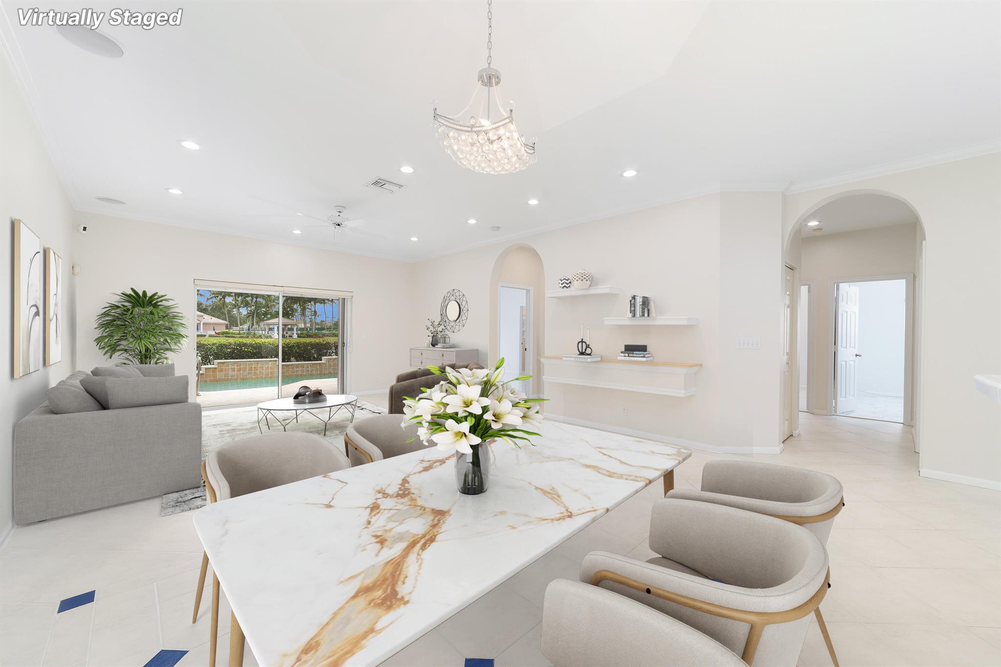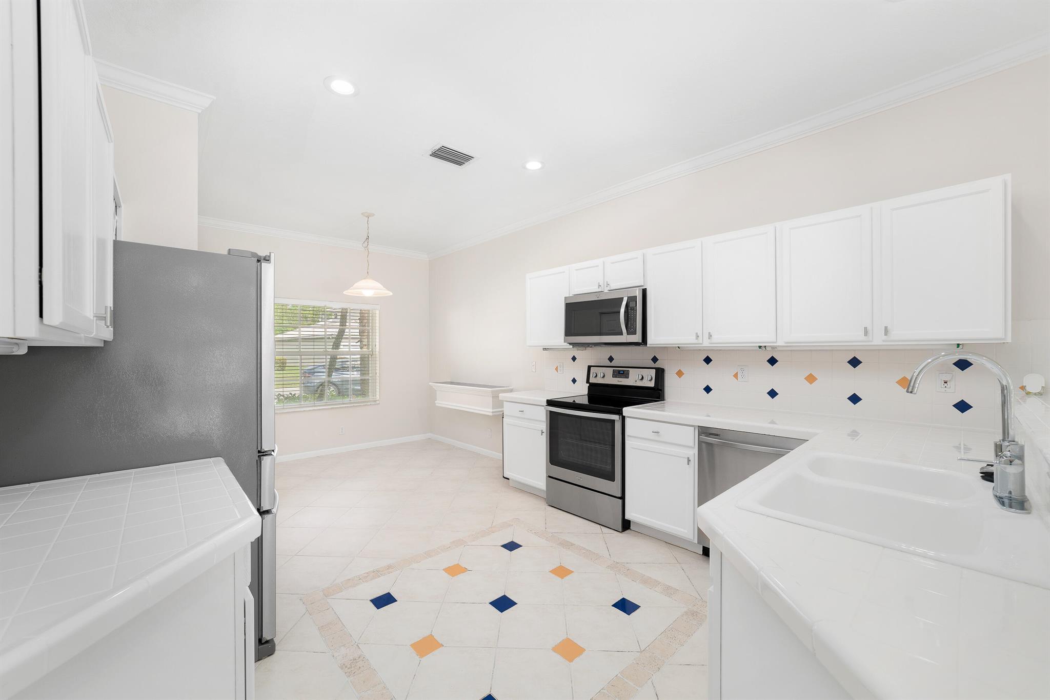 Step into the comfort of this spacious 3 bedroom, 2 bathroom, 2-car garage POOL home with breathtaking LAKE view! Notable features include elegant crown molding, tray ceilings, recessed lights, tile diagonally in the living area, impact garage door and accordion shutters. The kitchen is equipped with stainless steel appliances, tiled countertops, backsplash, pantry and breakfast area. There are two walk-in closets in the primary bedroom. The en-suite bathroom offers dual sinks, tub and a separate shower. The guest bathroom has been updated. Laundry room features a full size washer and dryer. Step out and enjoy a gorgeous oasis on the newly birdcage screened-in patio by the refreshing pool and lake. The AC and water heater were replaced in 2023. HOA includes cable and internet. Andros