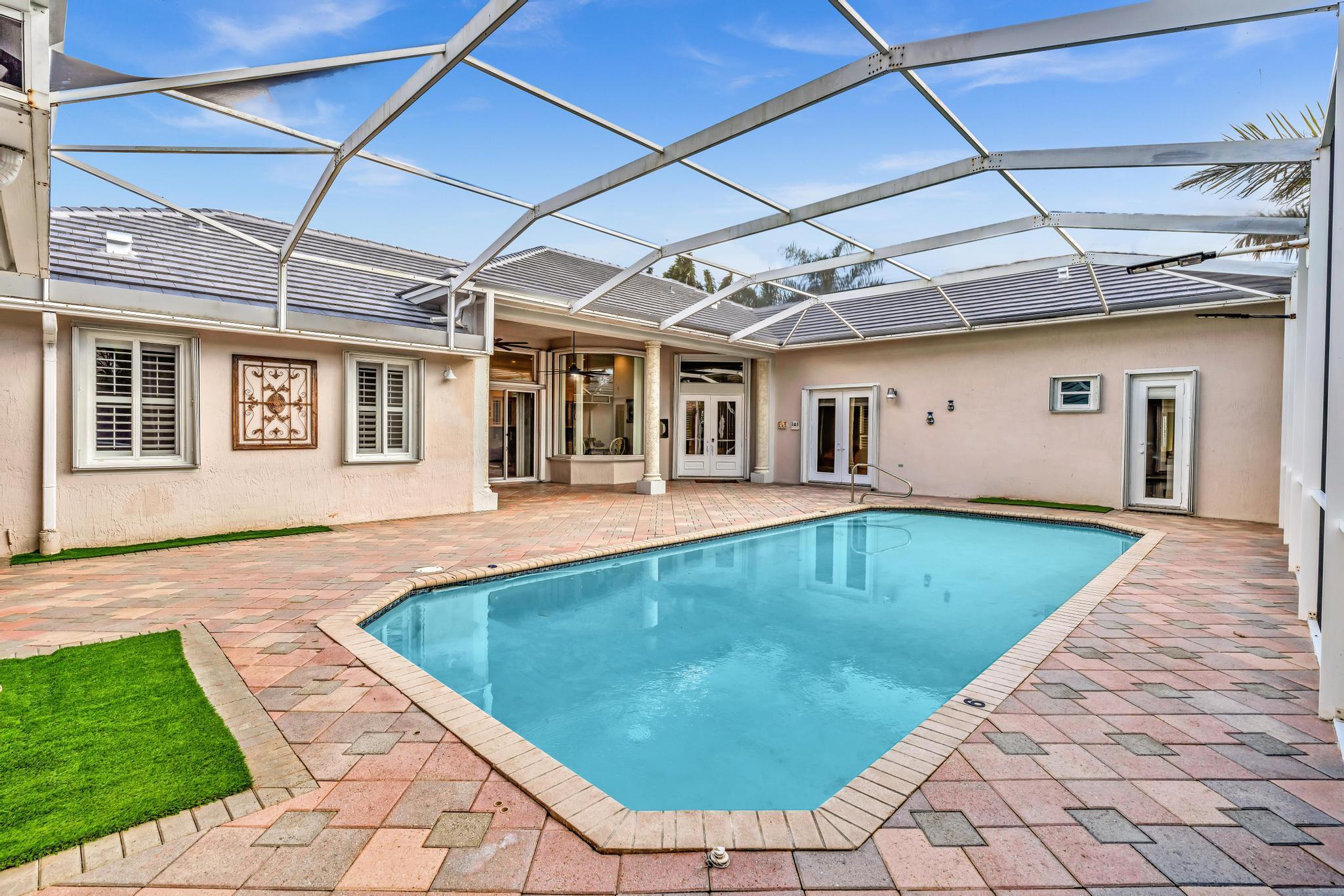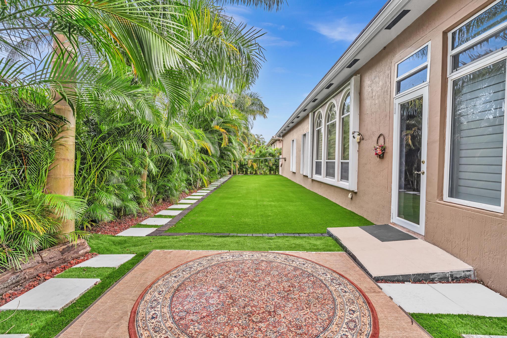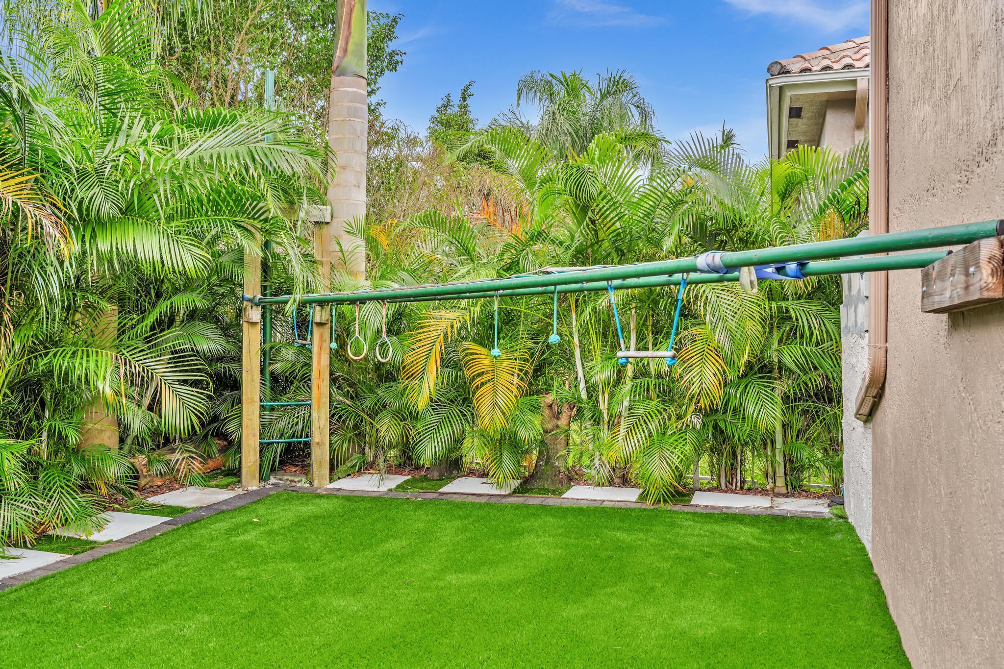 Magnificent Courtyard Style 4 Bedrooms, 4 1/2 Bathrooms. It features high ceilings, an oversized pool in a screened private patio, a backyard with artificial grass and a monkey bar installed. The home has a brand new roof, marble floors, upgraded kitchen with stainless steel appliances, a butlers area with a wine cooler, alarm system, impact windows, plantation shutters, large plantation fans, central vac, a laundry room with washer and dryer machines for small and large loads, 3 car garage plus a Tesla Wall Charger Gen 3, 48 Amps OEM. The spacious master bedroom has 2 walking closets and an oversized bath with dual sinks, dual vanities, shower, jacuzzi, a private toilet room and a door that connects directly to the pool area. Each bedroom has a private bathroom. See Addition Remarks