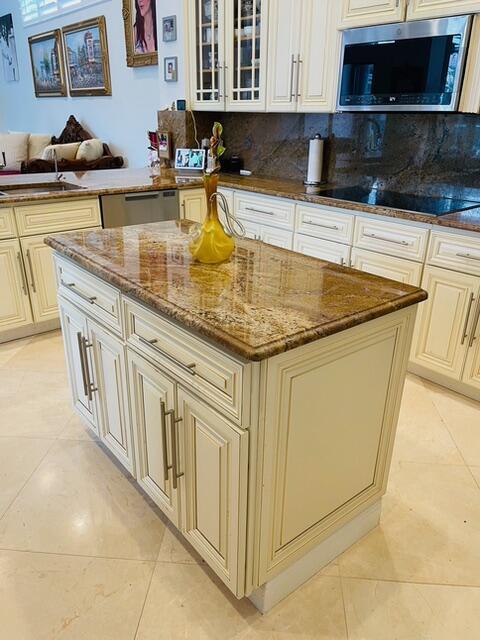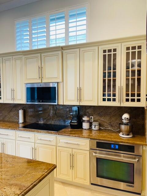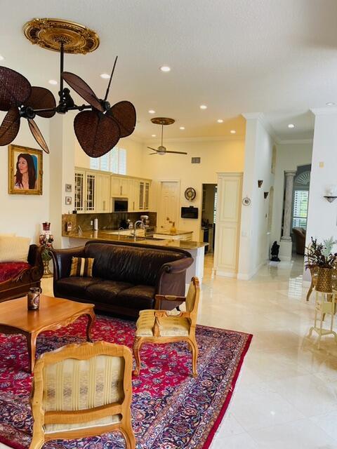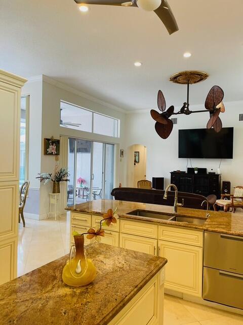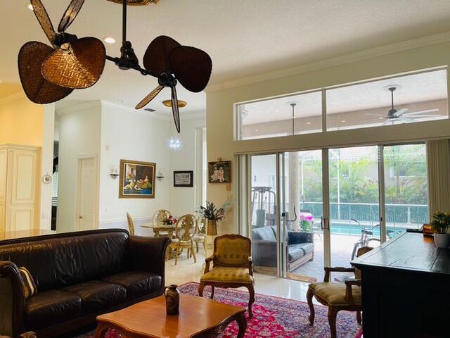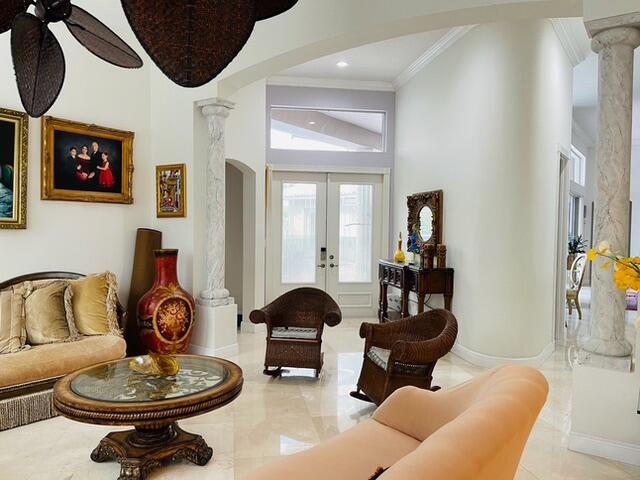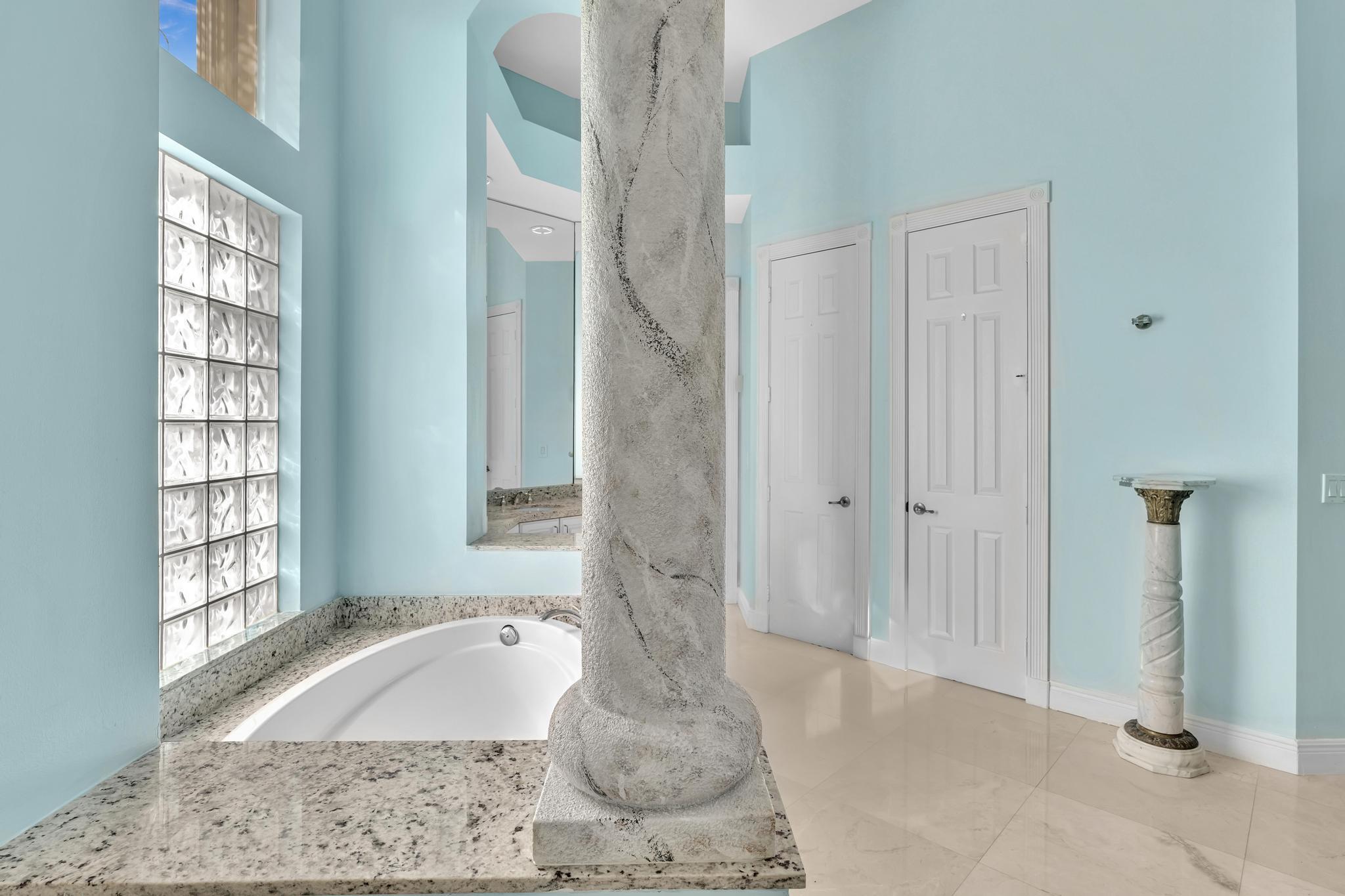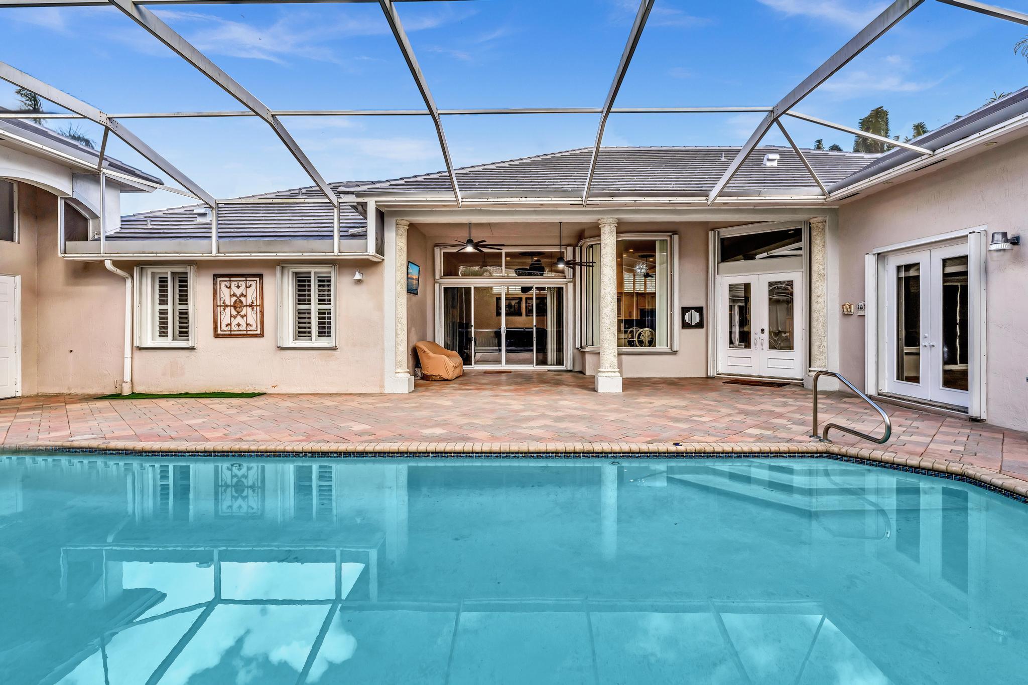 Magnificent Courtyard Style 4 Bedrooms, 4 1/2 Bathrooms. It features high ceilings, an oversized pool in a screened private patio, a backyard with artificial grass and a monkey bar installed. The home has a brand new roof, marble floors, upgraded kitchen with stainless steel appliances, a butlers area with a wine cooler, alarm system, impact windows, plantation shutters, large plantation fans, central vac, a laundry room with washer and dryer machines for small and large loads, 3 car garage plus a Tesla Wall Charger Gen 3, 48 Amps OEM. The spacious master bedroom has 2 walking closets and an oversized bath with dual sinks, dual vanities, shower, jacuzzi, a private toilet room and a door that connects directly to the pool area. Each bedroom has a private bathroom. See Addition Remarks