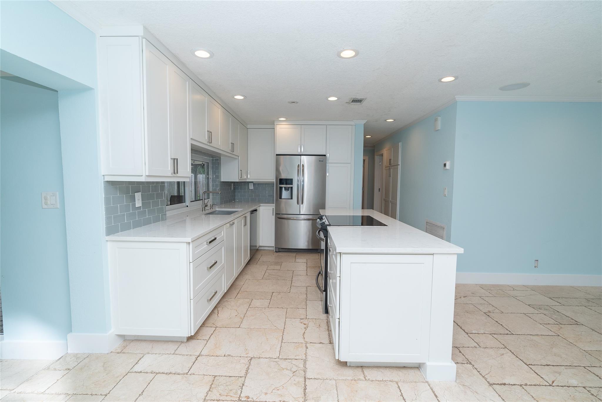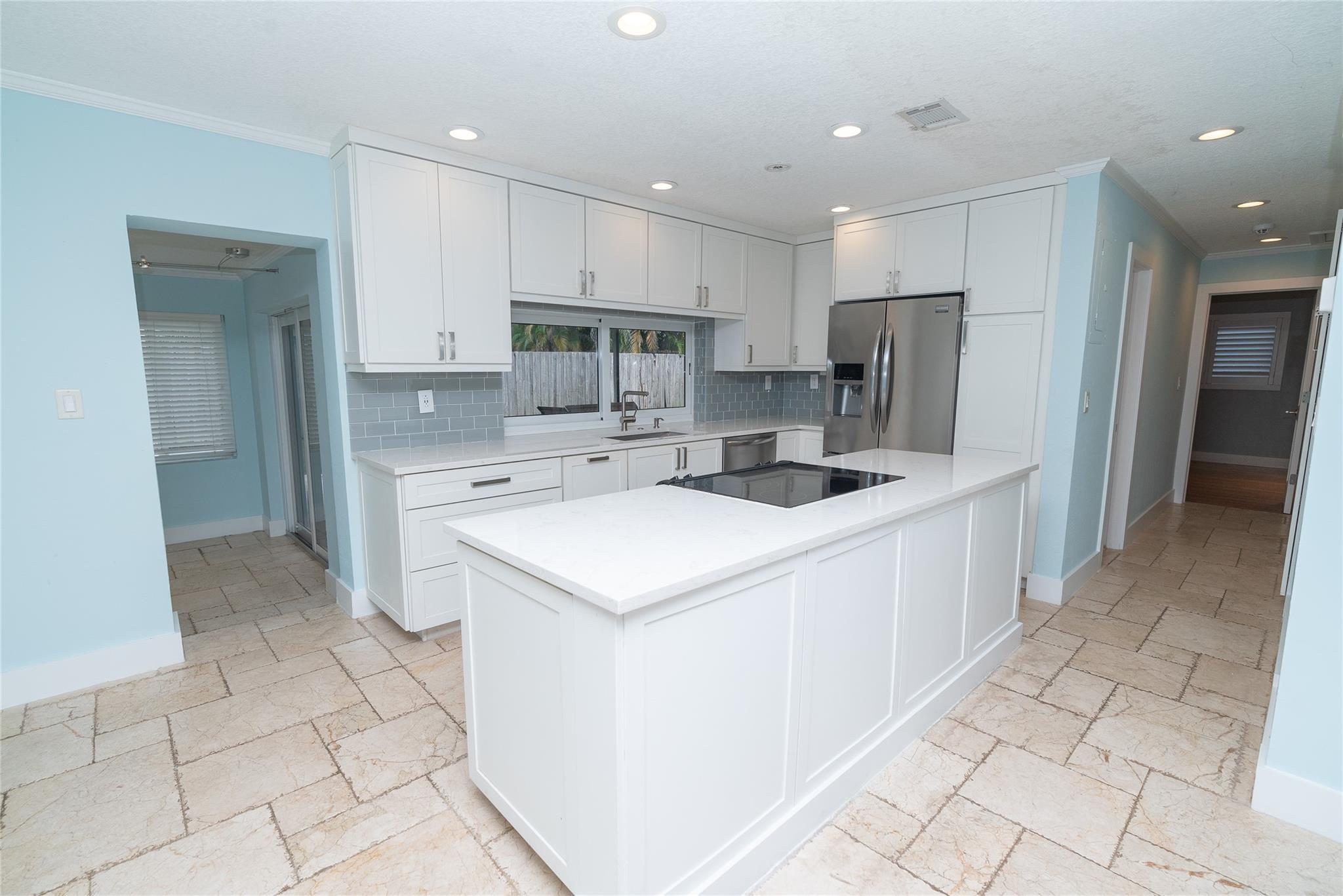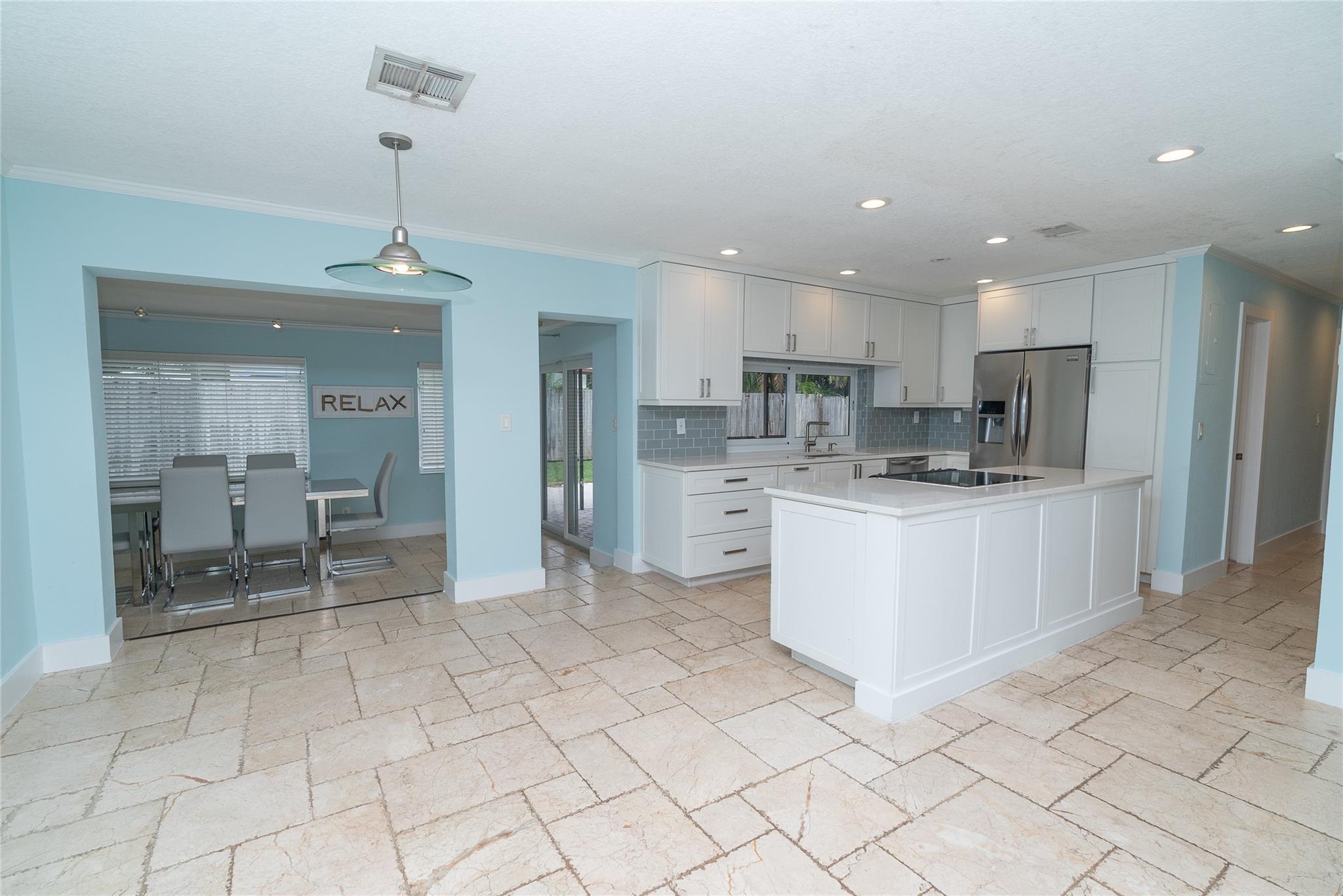 Welcome home to this spacious and beautifully updated 3-bed, 2-bath, ideally located east of US1 in a quiet, family-friendly Pompano Beach neighborhood. From the moment you are inside, you’ll be welcomed by an open-concept floor plan featuring a generous living room, an updated kitchen with soft-close cabinetry and island, as well as a versatile Florida room/dining room and breakfast area. The home features modernized bathrooms and custom-built bedroom storage with integrated lighting and a designated space for your flatscreen TV. A spacious laundry room extra cabinetry and a convenient sink, while the 1-car garage provides additional storage. Just outside is your private backyard oasis, complete with a large covered patio, BBQ area, outdoor shower, and plenty of space for a custom pool.