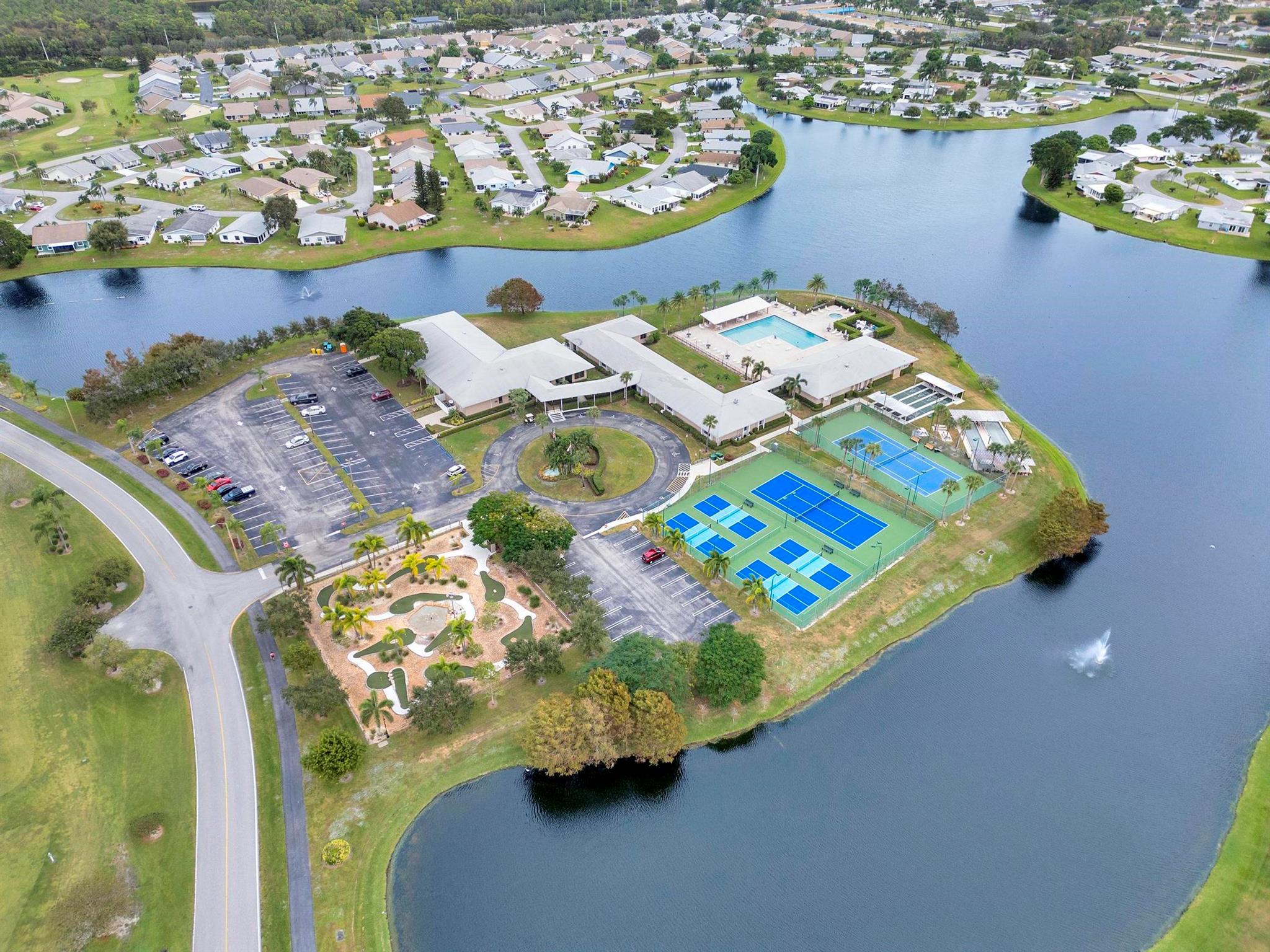 Welcome to this beautifully maintained 2-bedroom, 2-bathroom waterfront home located in a highly sought-after 55+ community. Enjoy serene views and peaceful living while taking advantage of the wide array of amenities this community has to offer. The home features spacious living areas, vaulted ceilings, and ample windows that allow for plenty of natural light. The master suite includes an en-suite bath for added privacy and convenience.In addition to the quaint home and scenic views, the community boasts a variety of amenities including, but not limited to, tennis, pickleball, water aerobics, shuffleboard, golf, yoga, bingo and a card room. Monthly fee includes internet, cable and landscaping. Home exteriors to be painted in 2025. Chandeliers excluded.