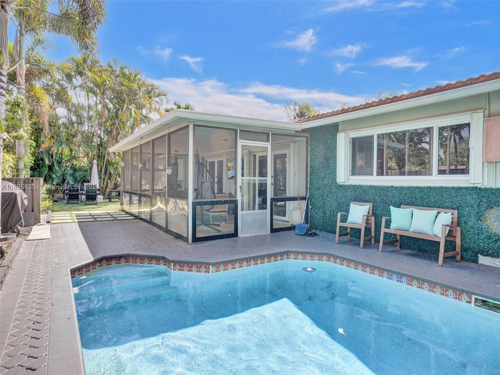 Welcome to your Fort Lauderdale Sanctuary! This single-family home is a haven of comfort and style. Beautifully updated with a spacious pool, features a split bedroom floor plan with porcelain tile throughout. Gorgeous, renovated kitchen with an expansive countertop island, plenty of storage and stainless-steel appliances leading to the spacious living and dining area. Enjoy elegantly updated bathrooms, a screened-in patio overlooking the pool, a separate laundry room, and a 2-car garage. AC and Tankless water heater are 2 years old. With no HOA, it's an Airbnb-ready property that is registered and income producing!! Great location just minutes to beach, shops, restaurants, schools and more! Don't miss out on this Gem!!