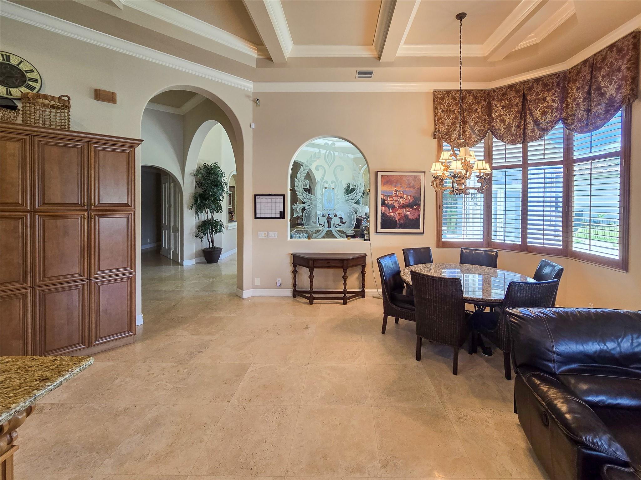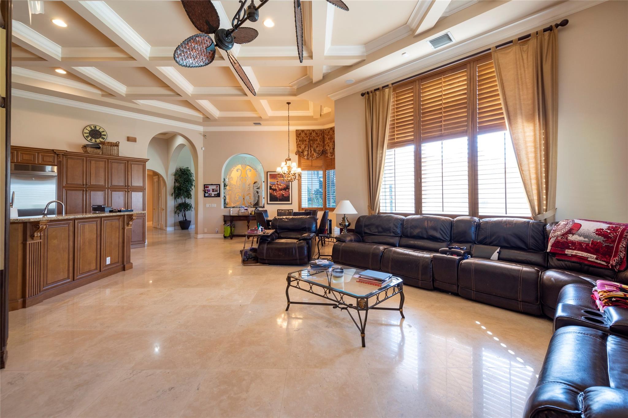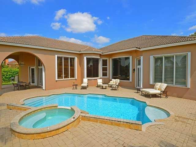 Exceptional Value on this Exquisite Builder’s Model Home. As you arrive, you’re greeted by a striking double porte-cochère. This home features crown molding, marble floors, and a spacious open layout perfect for living & entertaining. The gourmet kitchen with high-end appliances, a 36' gas range, and a large center island with a breakfast area overlooking the pool and lake. A home theater (which can be a 5th bedroom), a wet bar, custom plantation shutters, and a dedicated office space. The oversized dining room and tray ceilings, a resort-style pool with spa, your private basketball court, and lake views. Full accordion shutters on all windows and doors, a 1,000-gallon propane tank for both the gas stove and pool heater. Located in an exclusive gated community of only 42 homes.