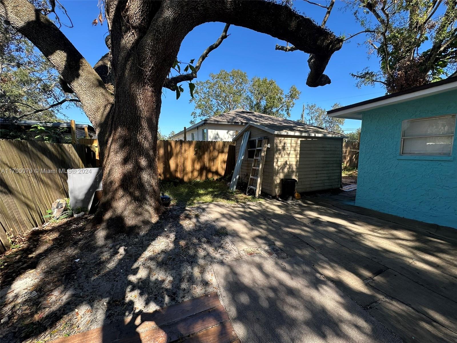 This is a lovely property on a big corner lot. It is ideal as a starter home or a rental property. Close to everything, it is located a few minutes from all major highways, Ybor City, the beaches, the Hardrock Casino, and Downtown Tampa. The house has a master suite with a private bathroom and an intermediary room that can be used as a walking closet in addition to the built-in closet. All bedrooms are spacious. Two small rooms located on both sides of the entrance can be used as an office, storage, playroom, or TV room, as needed. The washer and dryer hookups are inside the shed on the patio. Price reduced. It will sell fast.