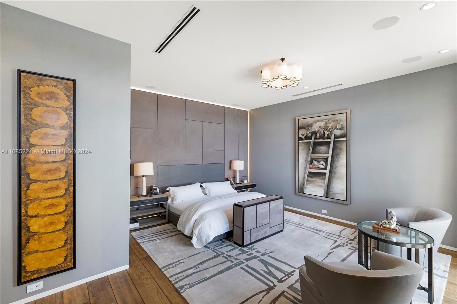 Discover this spectacular contemporary masterpiece on the exclusive guard-gated Hibiscus Island, just minutes from South Beach and Downtown Miami. Offered fully furnished, this gated waterfront home boasts professional decor and meticulous finishes throughout. Step inside to find dramatic double-volume ceilings and expansive floor-to-ceiling glass, offering breathtaking panoramic water views. The open, light-filled spaces are designed for modern living, featuring advanced surround sound and custom lighting systems. With an 80-foot dockage for your boat, you can easily access the beautiful waters of Miami. Enjoy a stunning wine cellar, an elevator for convenience, and a rooftop terrace perfect for entertaining.