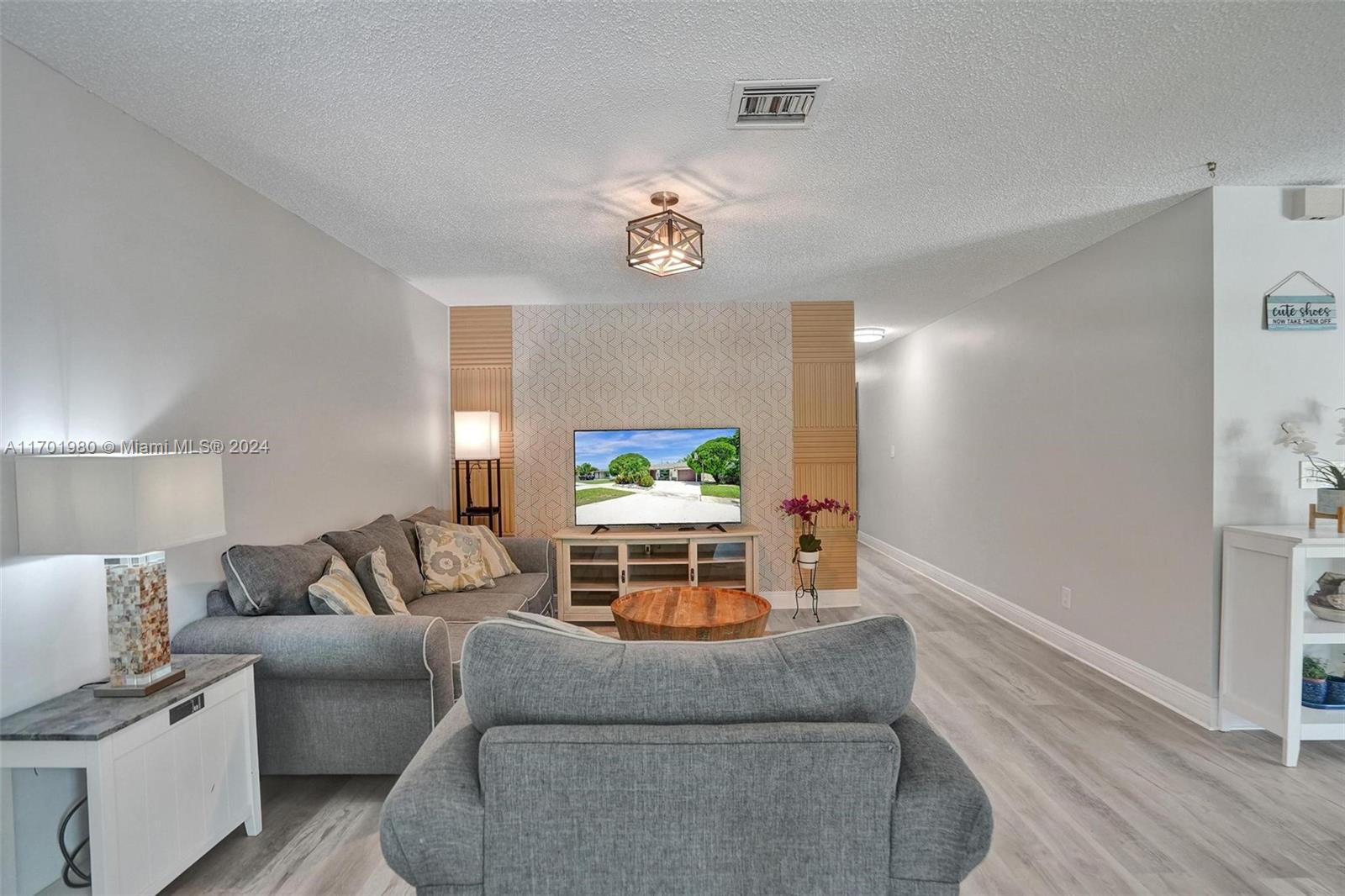 Tucked in a quiet street, this beautiful 1 story home featuring a large living area *1,608 Sq Ft per appraisal *Circular driveway *3 bedrooms + BONUS Office/Den *2 bathrooms *Fully renovated inside and out, it boasts *New Impact Windows & Doors * New Kitchen *New luxury vinyl flooring *New porcelain tile *New bathrooms with glass shower enclosures *Recently painted *New tankless water heater *New ceiling fans & lighting. Enjoy the outdoors on the *Covered and Screened patio, with an oversized, fully fenced, and very *Private backyard. Relax in the *Full-Size gazebo *Outdoor shower & hot tub, *Synthetic turf play area, *Putting green, *Fire pit & storage shed. *No HOA or restrictions *Not in a flood zone *Minutes from parks, shopping, and highways. Make this dream home yours!