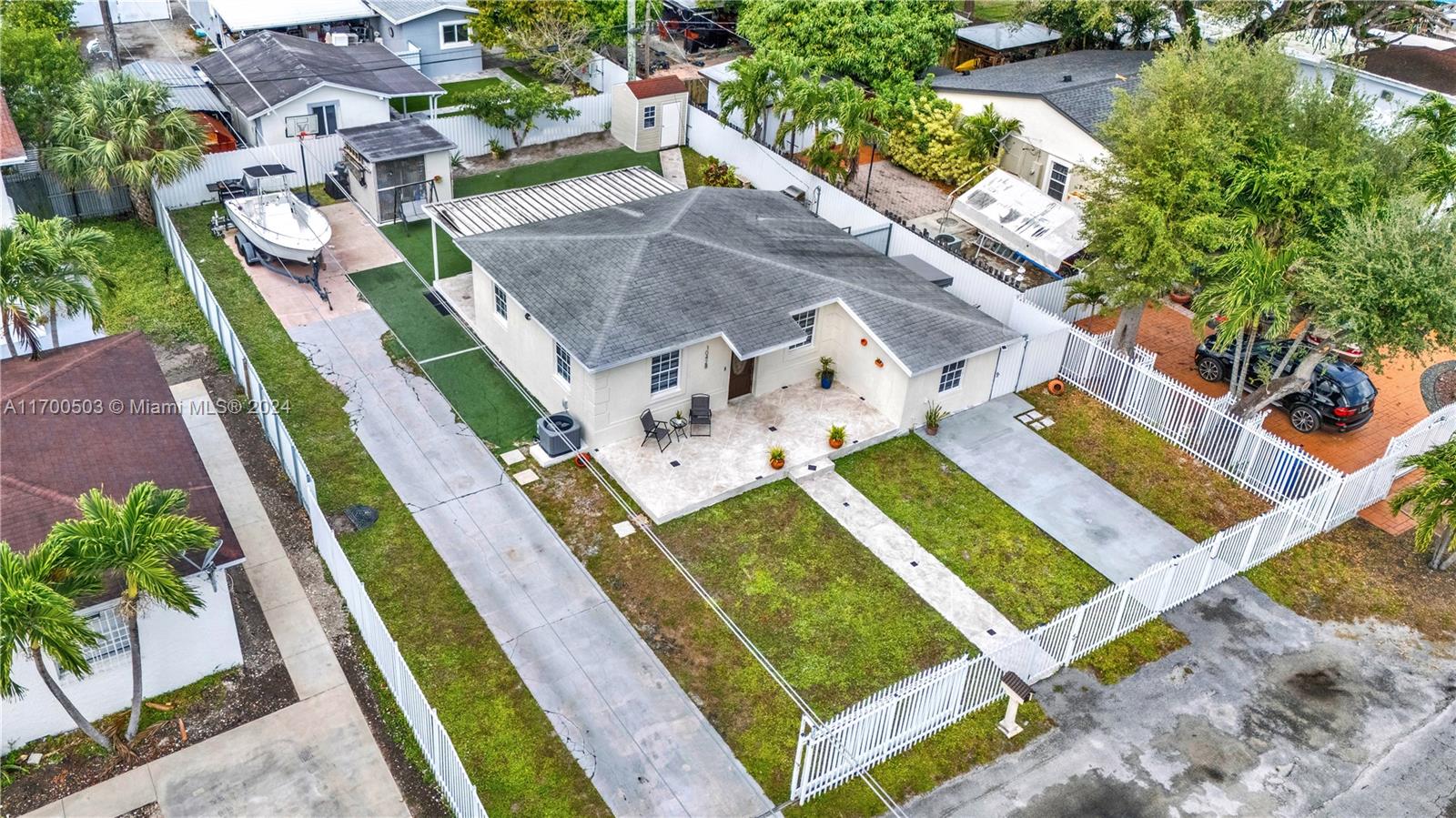 Beautiful single story house on a large lot with space to park boat and/or RV. The property has 3 bedrooms, 2 baths and a covered terrace. Property is fully fenced, no association, nor CDD. Located in a prime area within walking distance to Miami Dade College North, lots of nearby parks, shopping, restaurants and quick access to the Highway, 3 miles to Hialeah Hospital. The shed will be left on the property for the new owners.