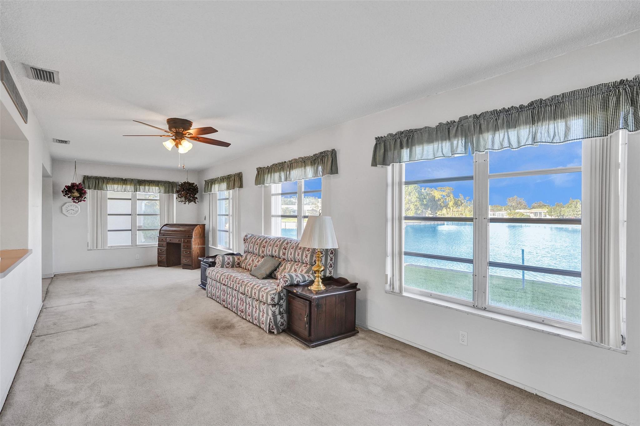 Come and enjoy breathtaking views from your very own back yard! You will have lots of space in this large 2 bedroom 2 bath home located on the widest part of the lake. Formal living and dining room. Eat in kitchen, family room plus a screened in patio. The seller has improved this home with New roof (2 yrs old) Brand new hot water heater. Newer A/C! New electrical panel. Accordion Shutters and more. 55+ community. HOA includes lawn care, sprinklers, clubhouse and community pool. Hurry and see this one before it's gone!