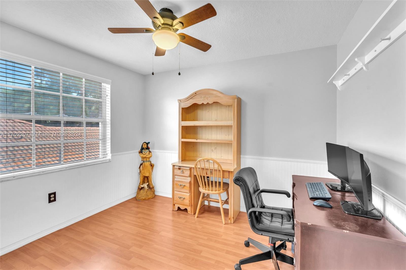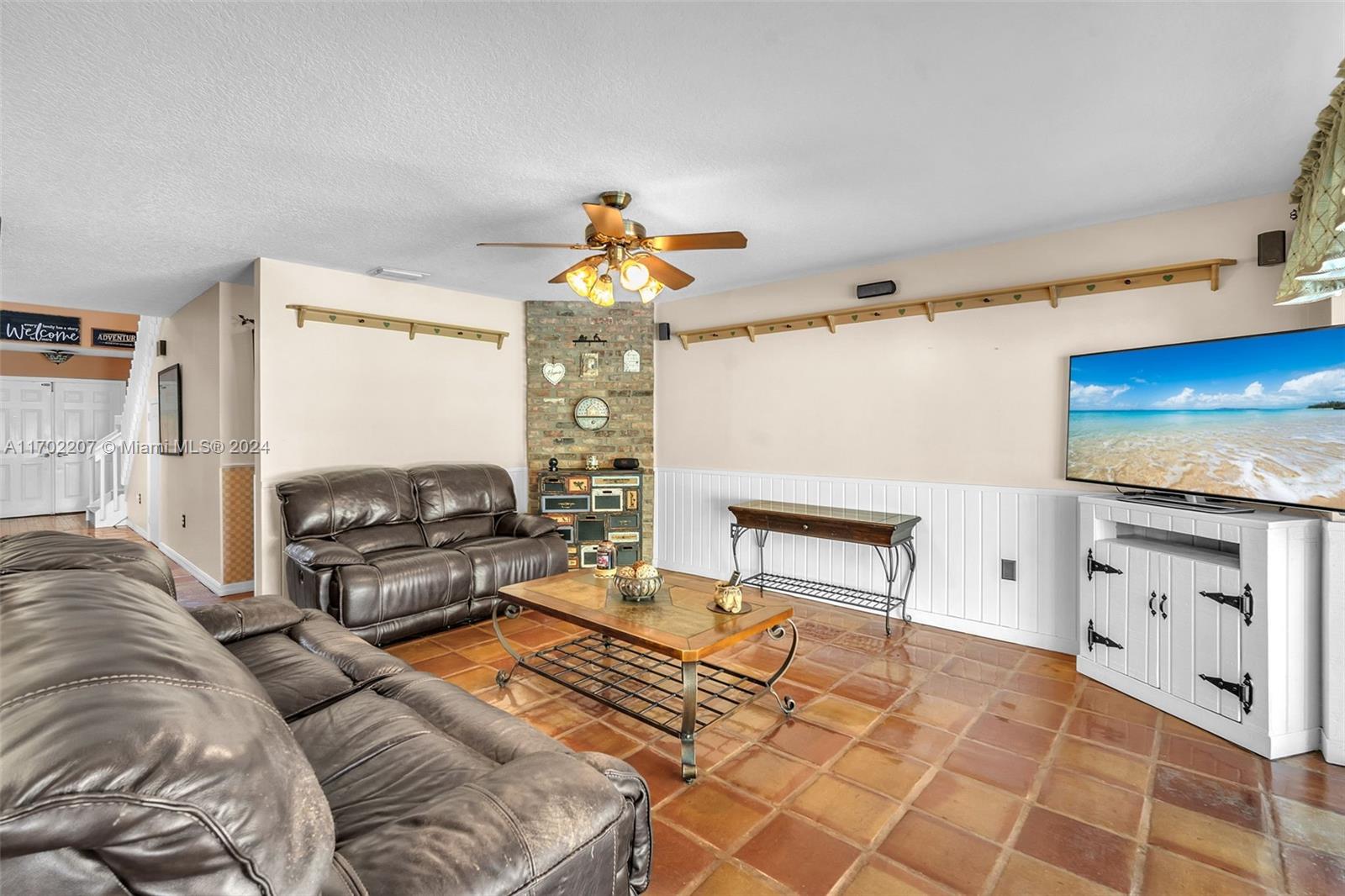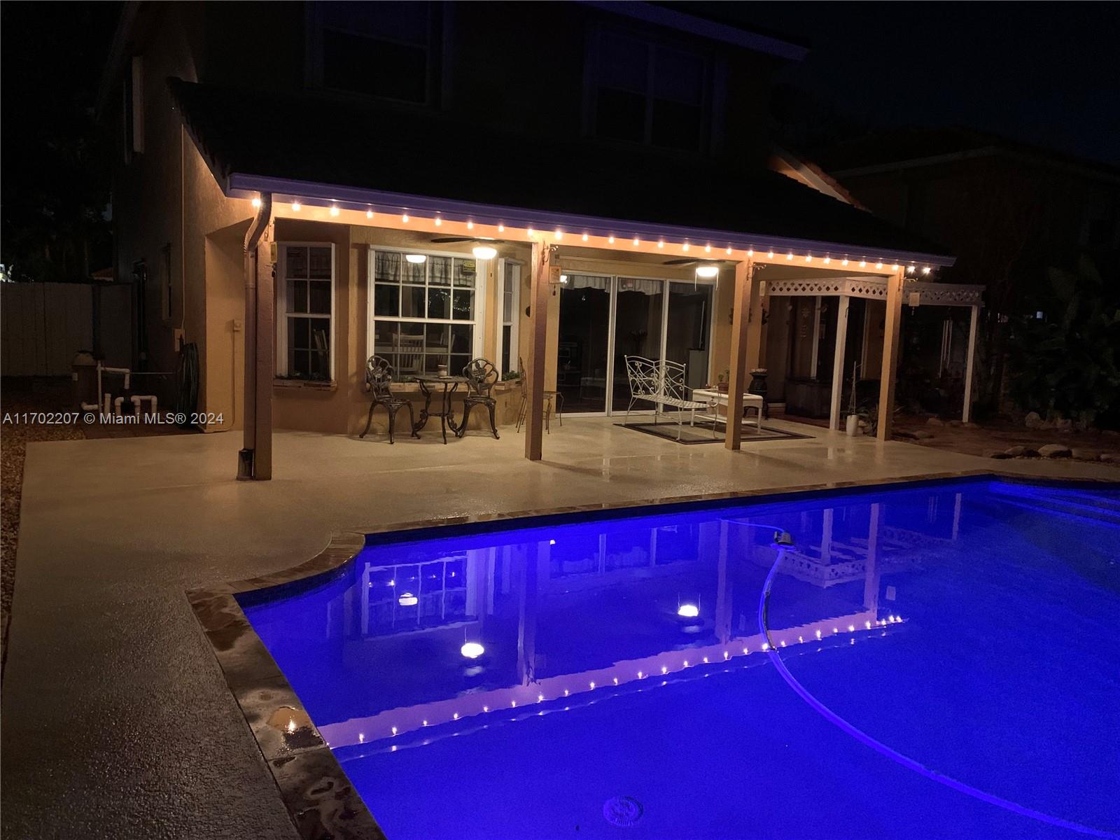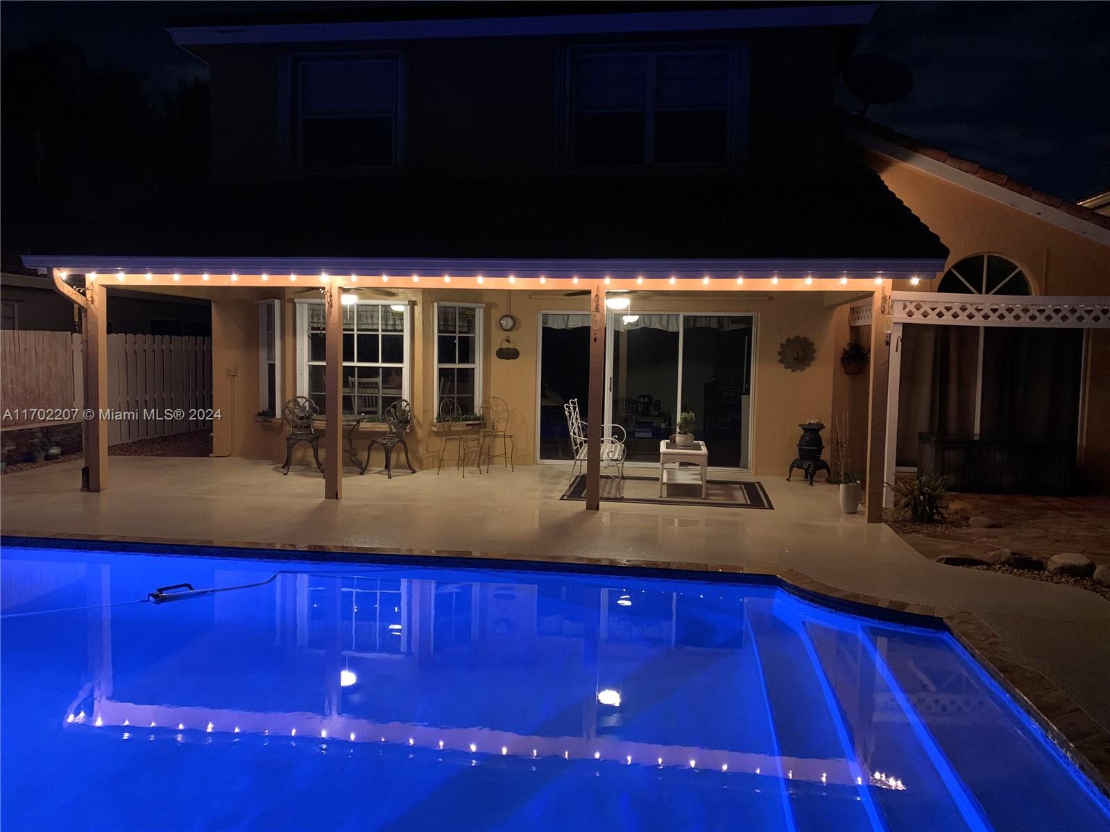 WOW!! 4BR/2.5BA + den, 2-car garage, private fenced backyard w/extended lanai, beautiful waterfall & oversized sparkling POOL! Boasting high ceilings, ample natural sunlight, & tile through main living areas. Charming feel w/Chicago brick walls, wainscoting, knockdown ceilings & large kitchen w/Hickory wood cabinets and newer SS appliances. Large primary bedroom on 1st floor w/private access to back patio, 2 large walk-in closets,& beautifully updated ensuite w/dual sinks, separate walk-in shower & relaxing tub.Upstairs 3 spacious bedrooms w/laminate floor, den used as office,& updated bathroom.Huge backyard oasis perfect for entertaining! Pool resurfaced (2021)pool pump motor(2024),AC(2019).Complete hurricane protection. Close to 595, Sawgrass EPWY, Amerant Arena, Dining, shopping & more!